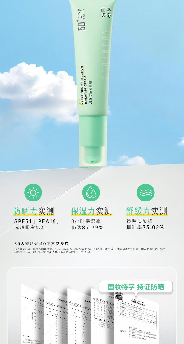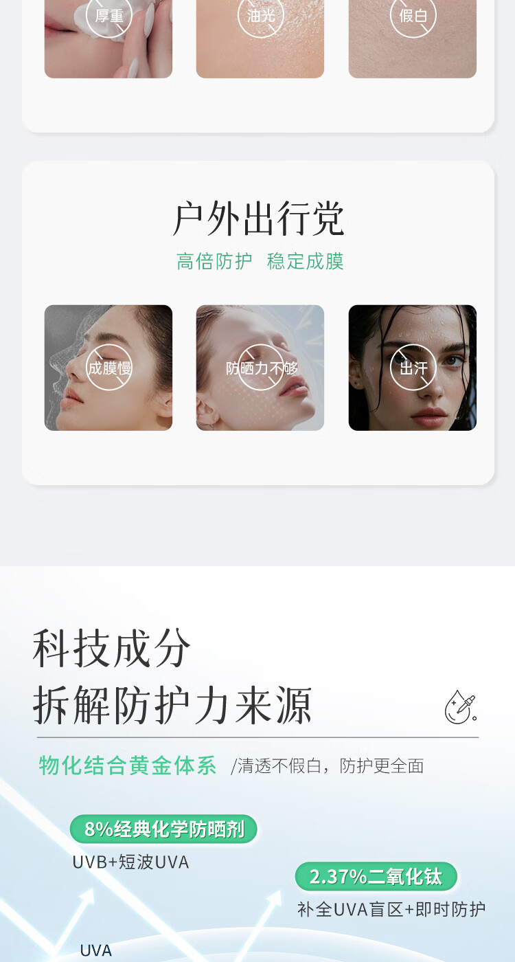 自然攻略清透防晒霜妆前隔离霜提亮肤色女神节SPF50+舒缓美白(物理遮挡) 2瓶装