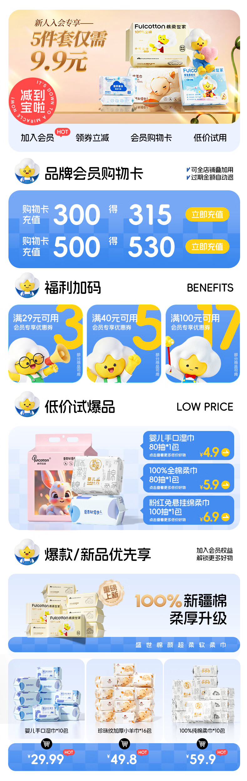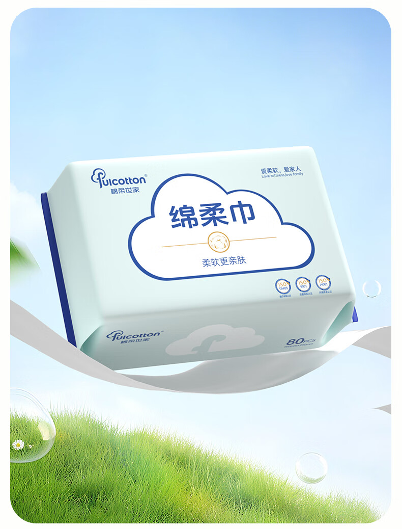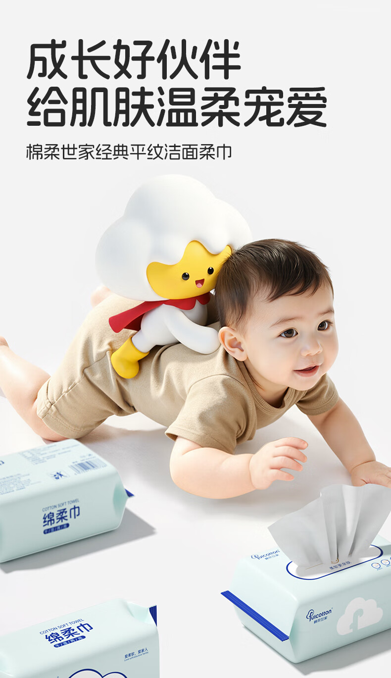 棉柔世家(FulCotton)婴儿绵柔巾 婴儿一次性洗脸巾绵柔巾干湿两用抽纸 20*15cm 36包*80抽