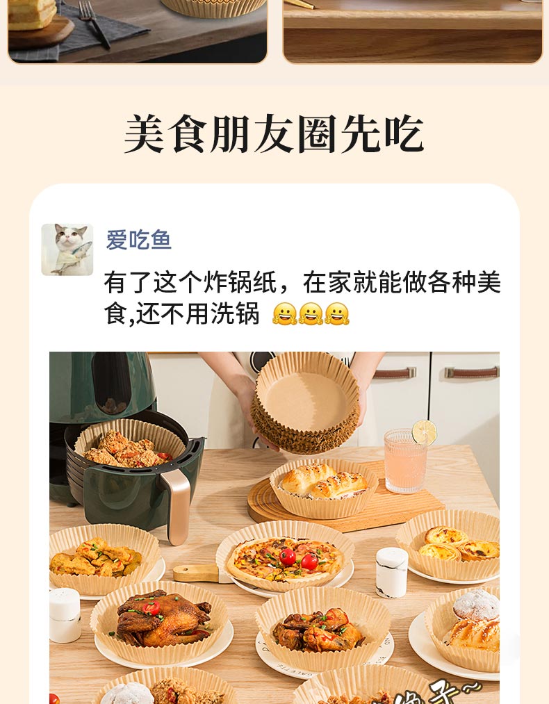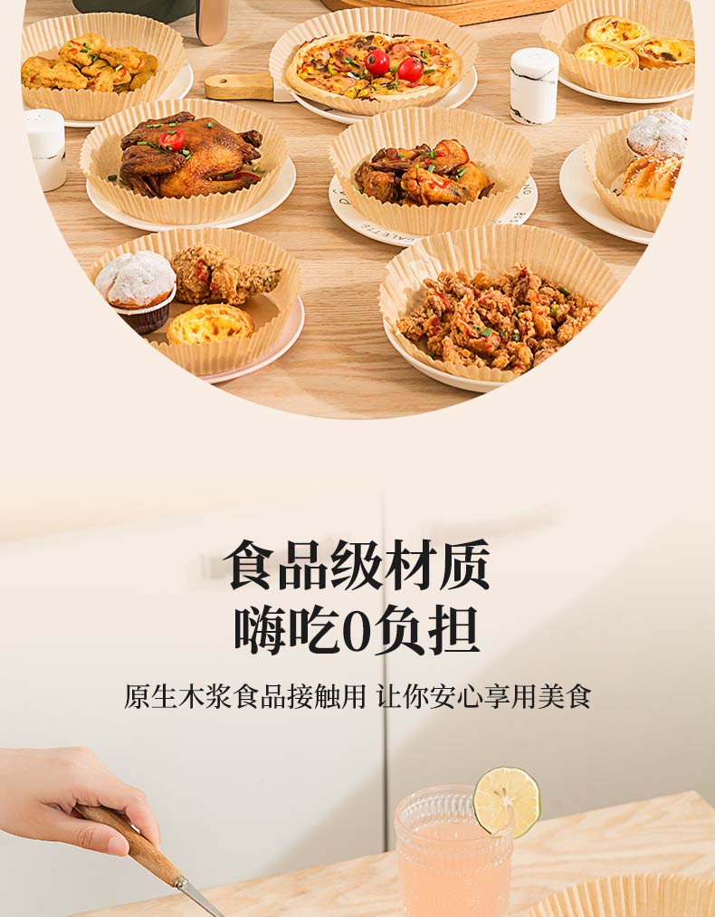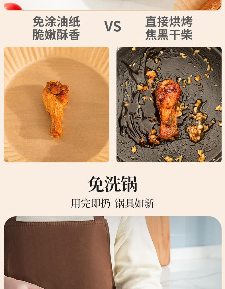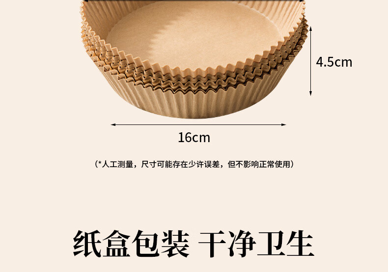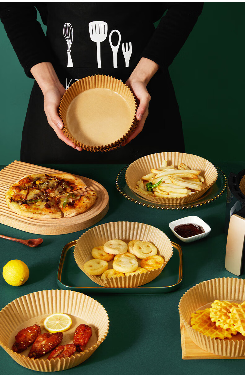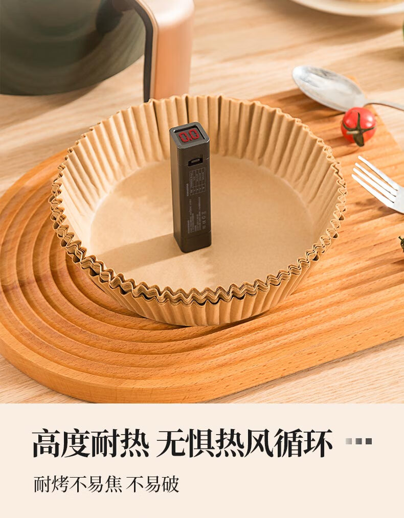 满意星园空气炸锅专用纸吸塑装 适用3L以上空气炸锅原木色硅油纸 100个圆形吸塑包装( 16*4.5CM)