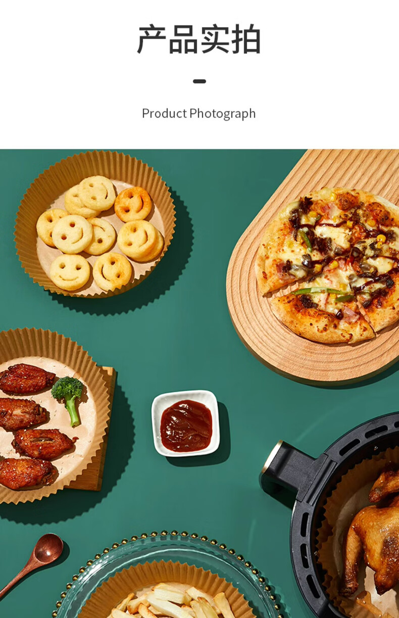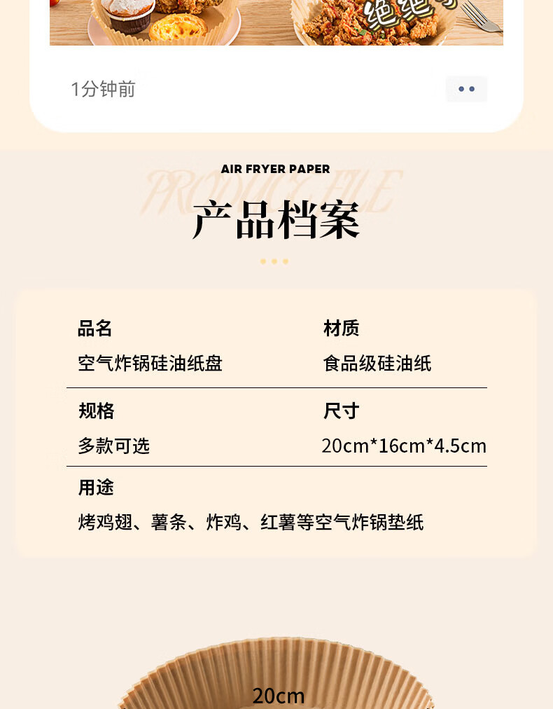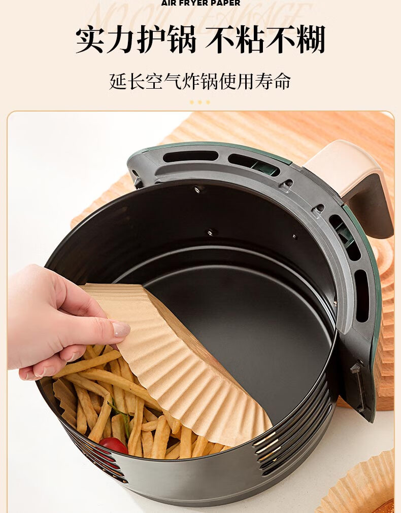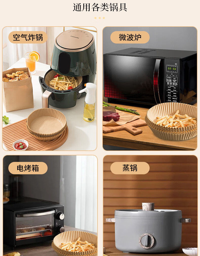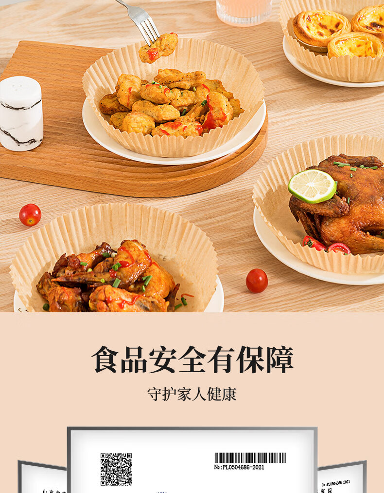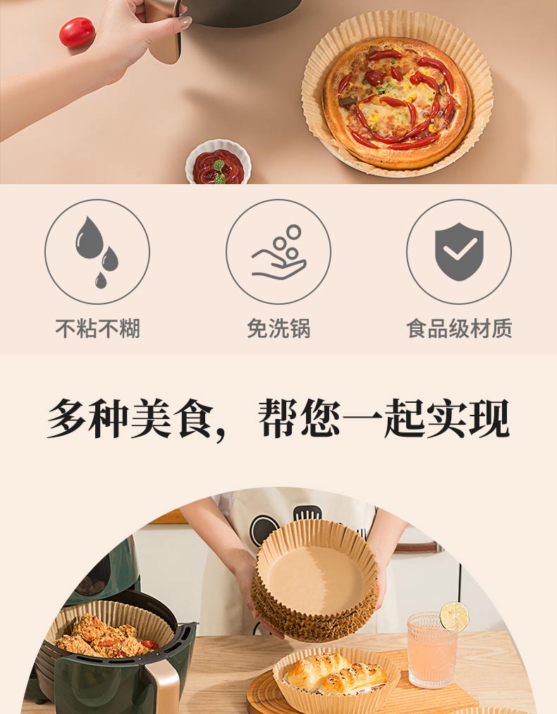 满意星园空气炸锅专用纸吸塑装 适用3L以上空气炸锅原木色硅油纸 100个圆形吸塑包装( 16*4.5CM)