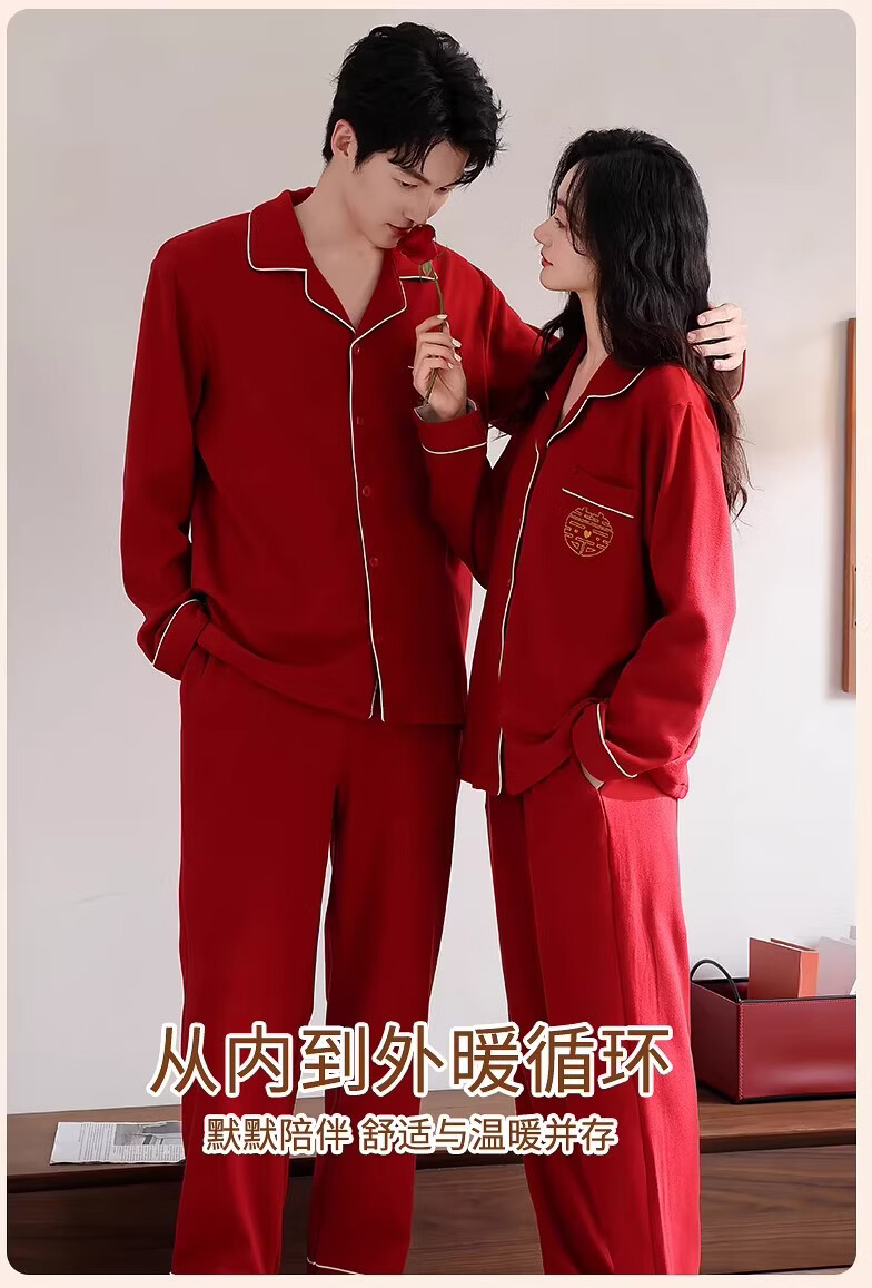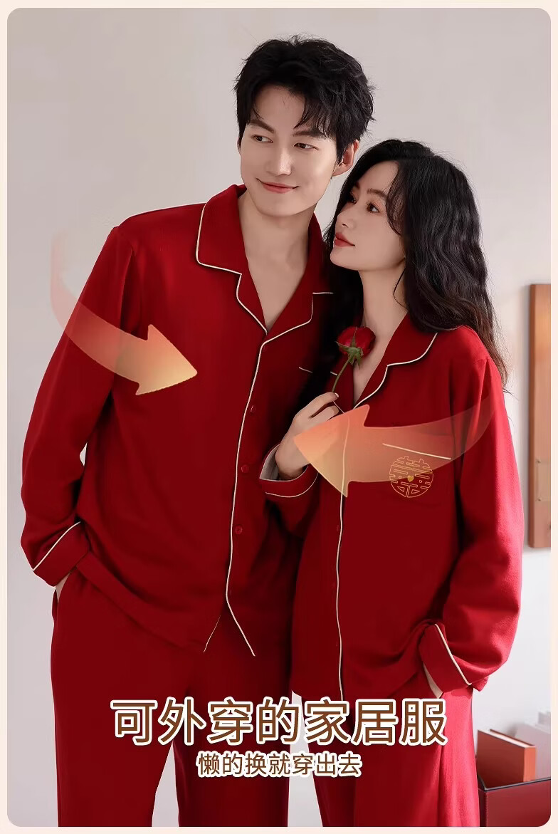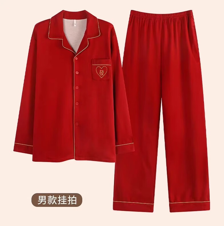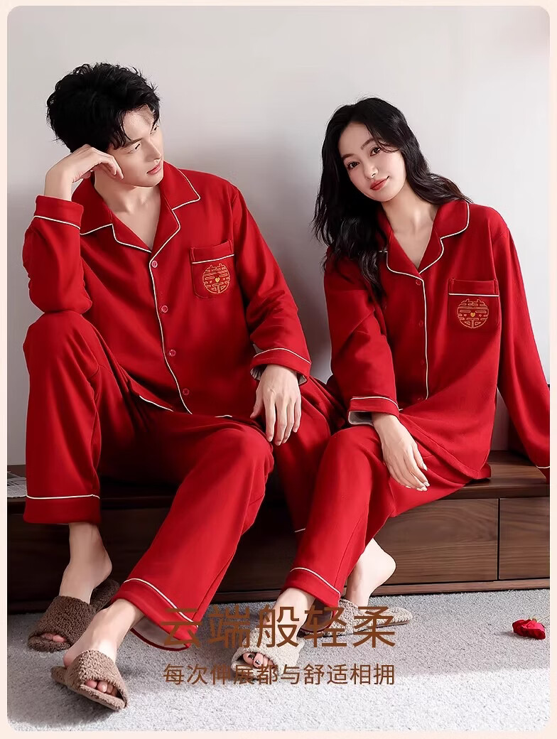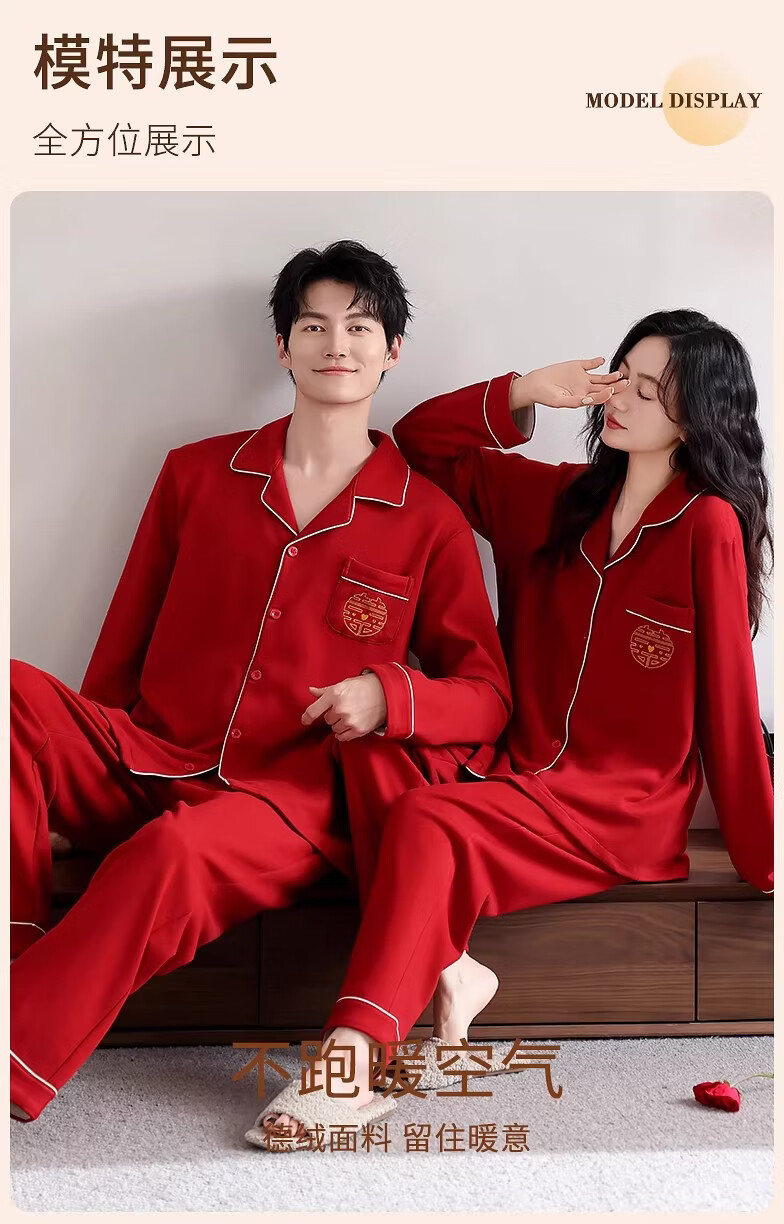 LangSha情侣睡衣红色男女冬季新款保暖加厚喜字结婚本命年家居服 8302 男款 3XL
