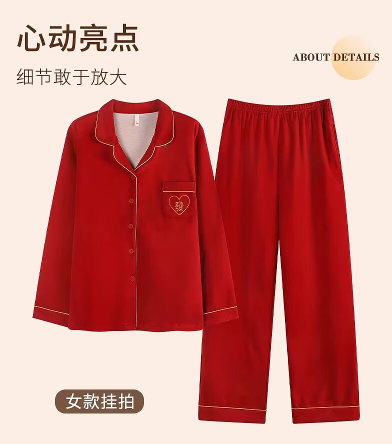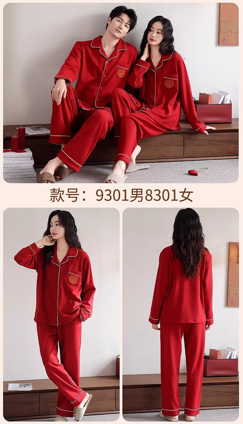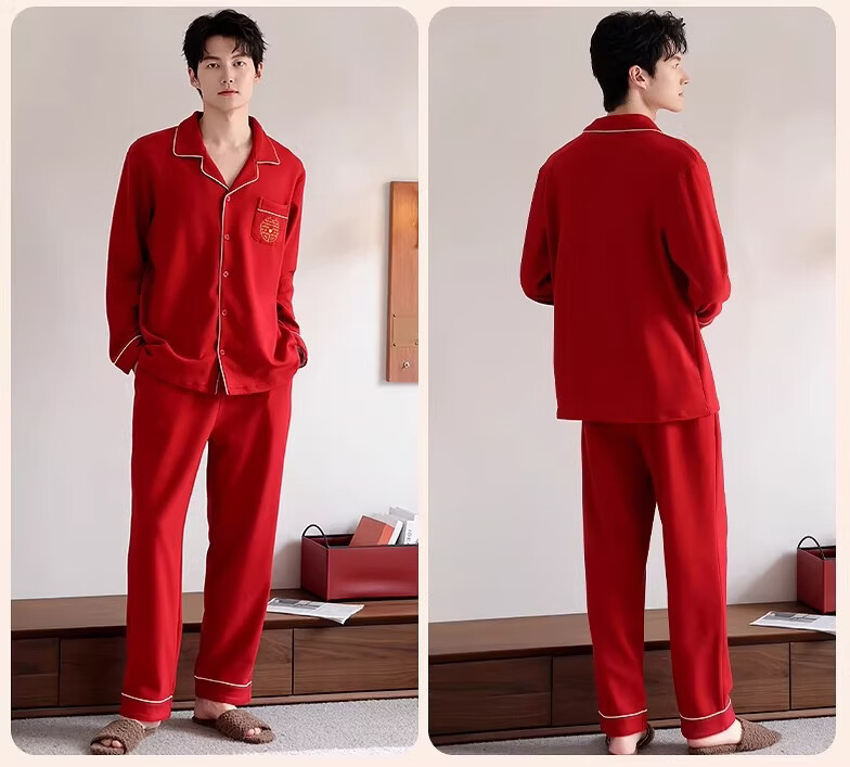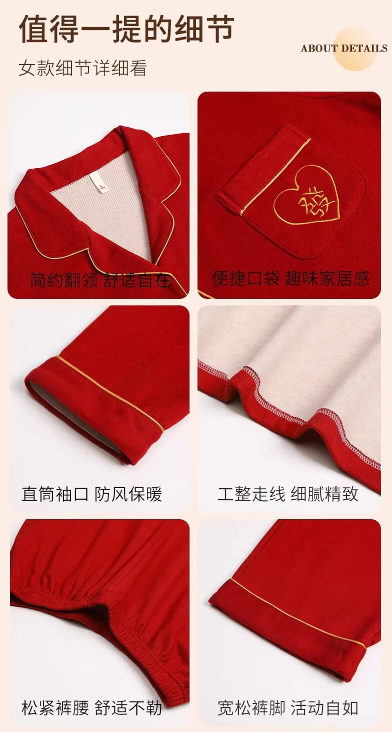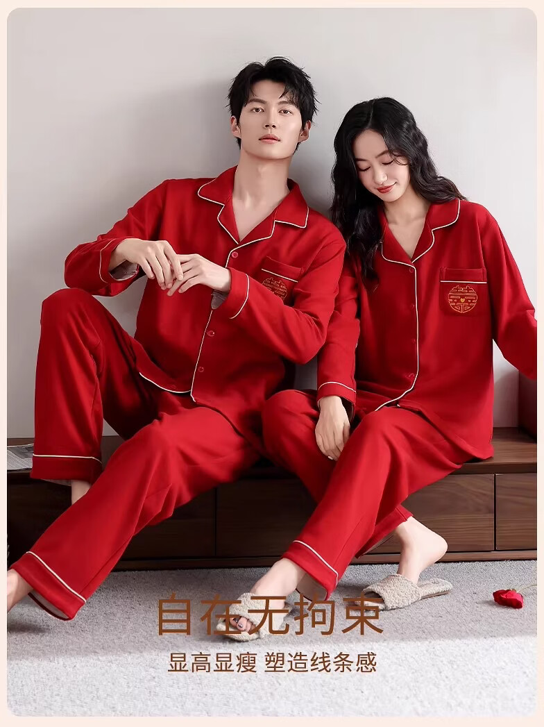 LangSha情侣睡衣红色男女冬季新款保暖加厚喜字结婚本命年家居服 8302 男款 3XL