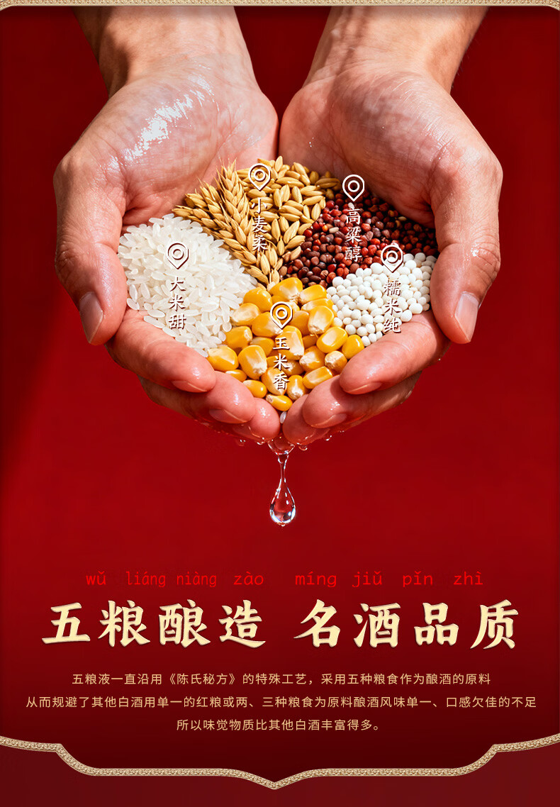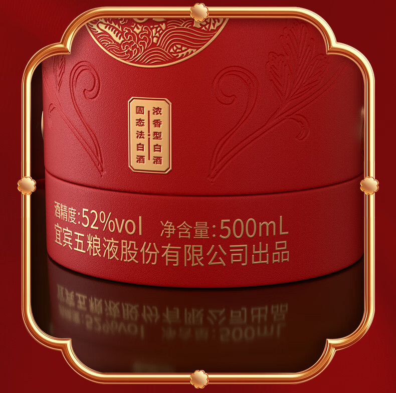 五粮浓香五粮液股份出品 官方授权 52度优级 浓香型白酒 喜福盛世 52度 500mL 2瓶 聚财金樽双支装