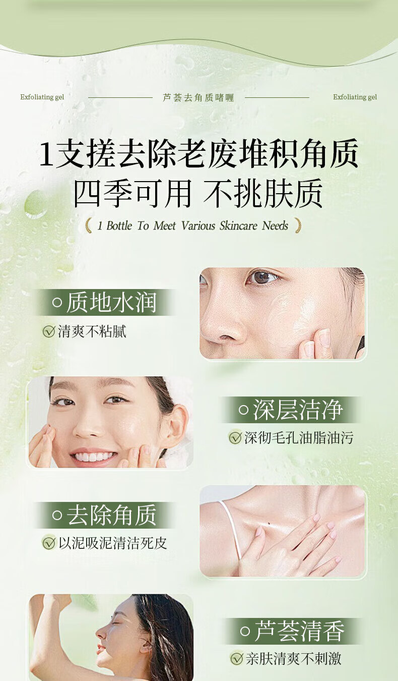 琪瑟【甄选百货】芦荟去角质啫喱面部去死皮全身体可用清洁脸部保湿 100g 1支芦荟去角质啫喱