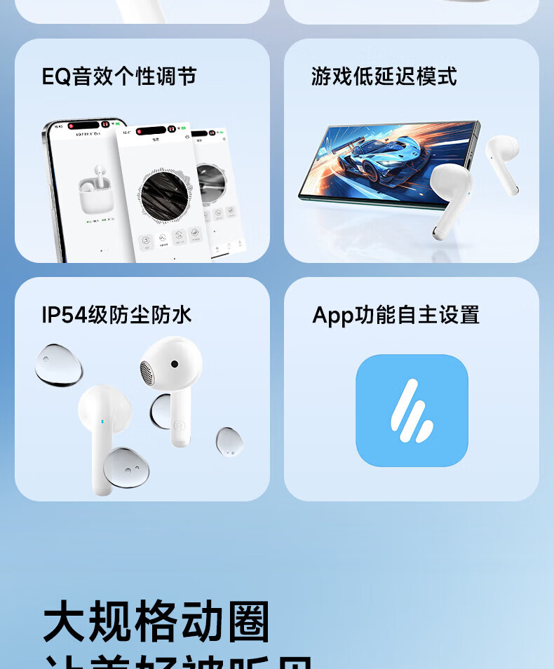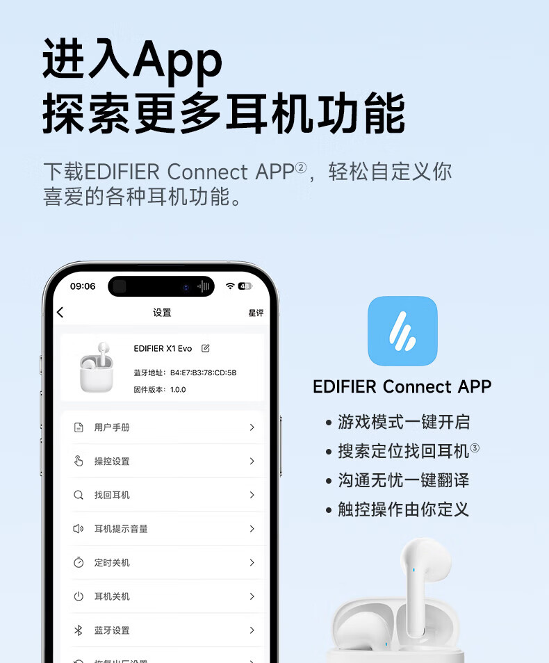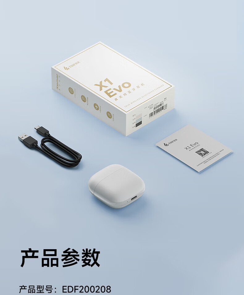 漫步者X1 EVO蓝牙耳机无线半入耳式2025新款降噪运动游戏长续航 雾白[+享1年质保] 套餐二标配+黑喵耳机套