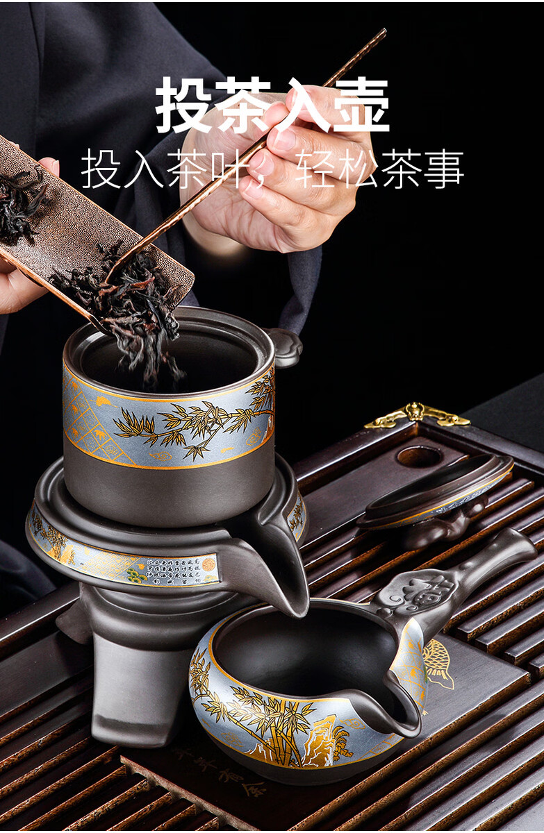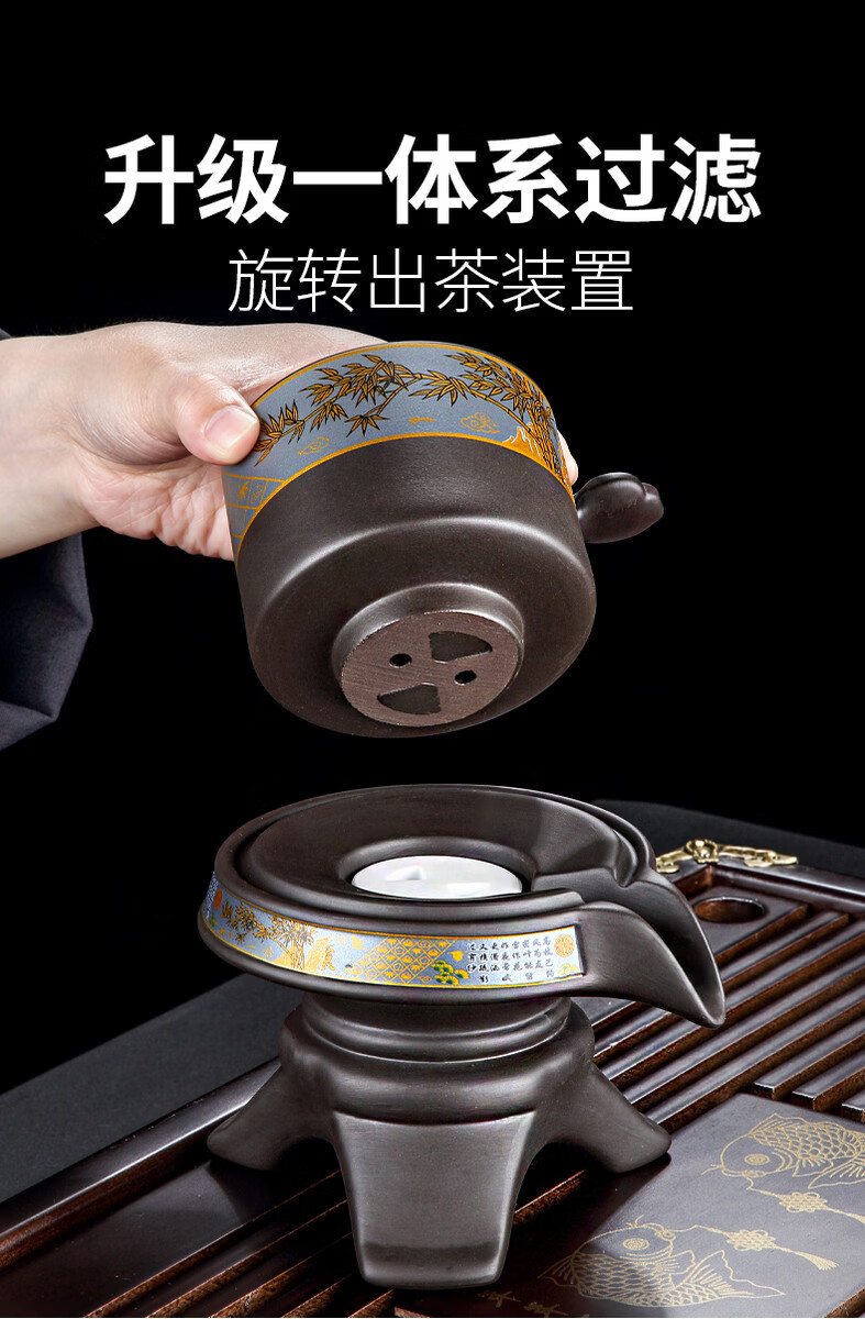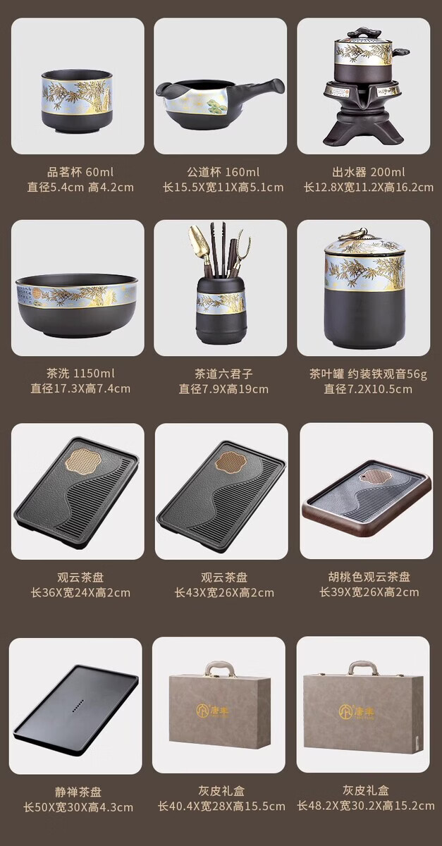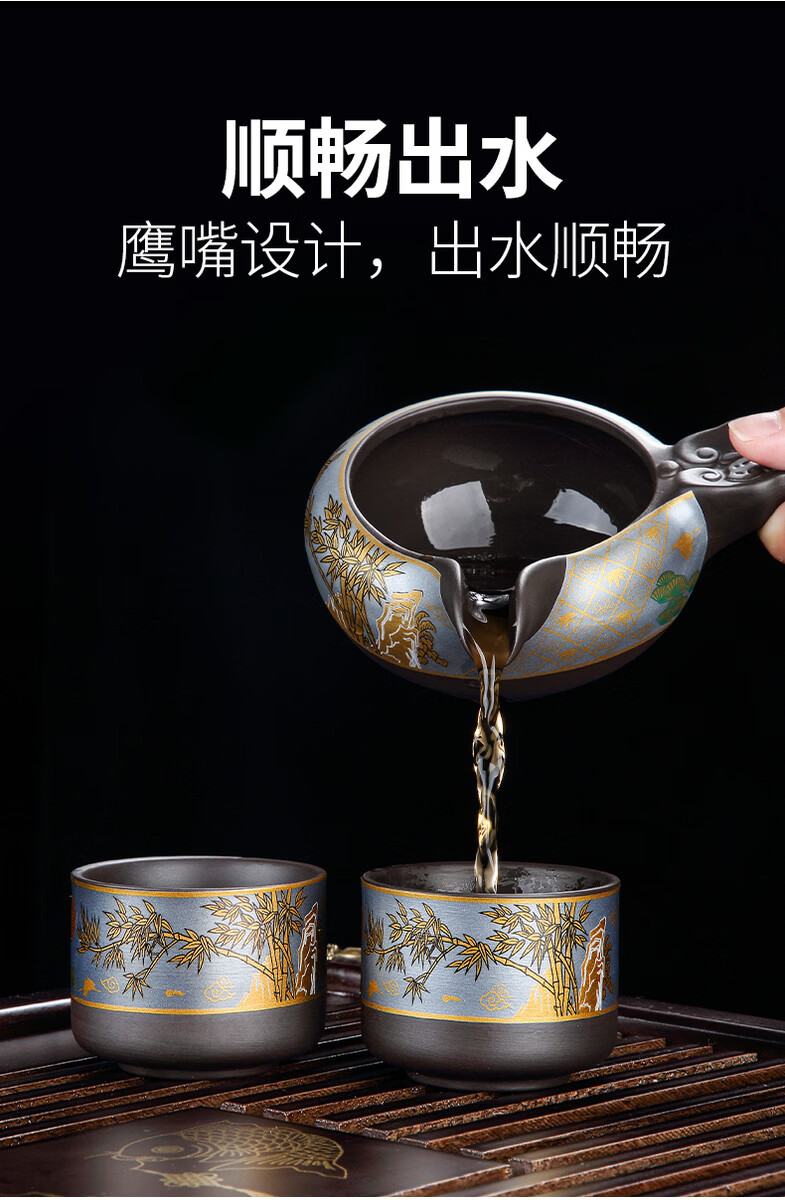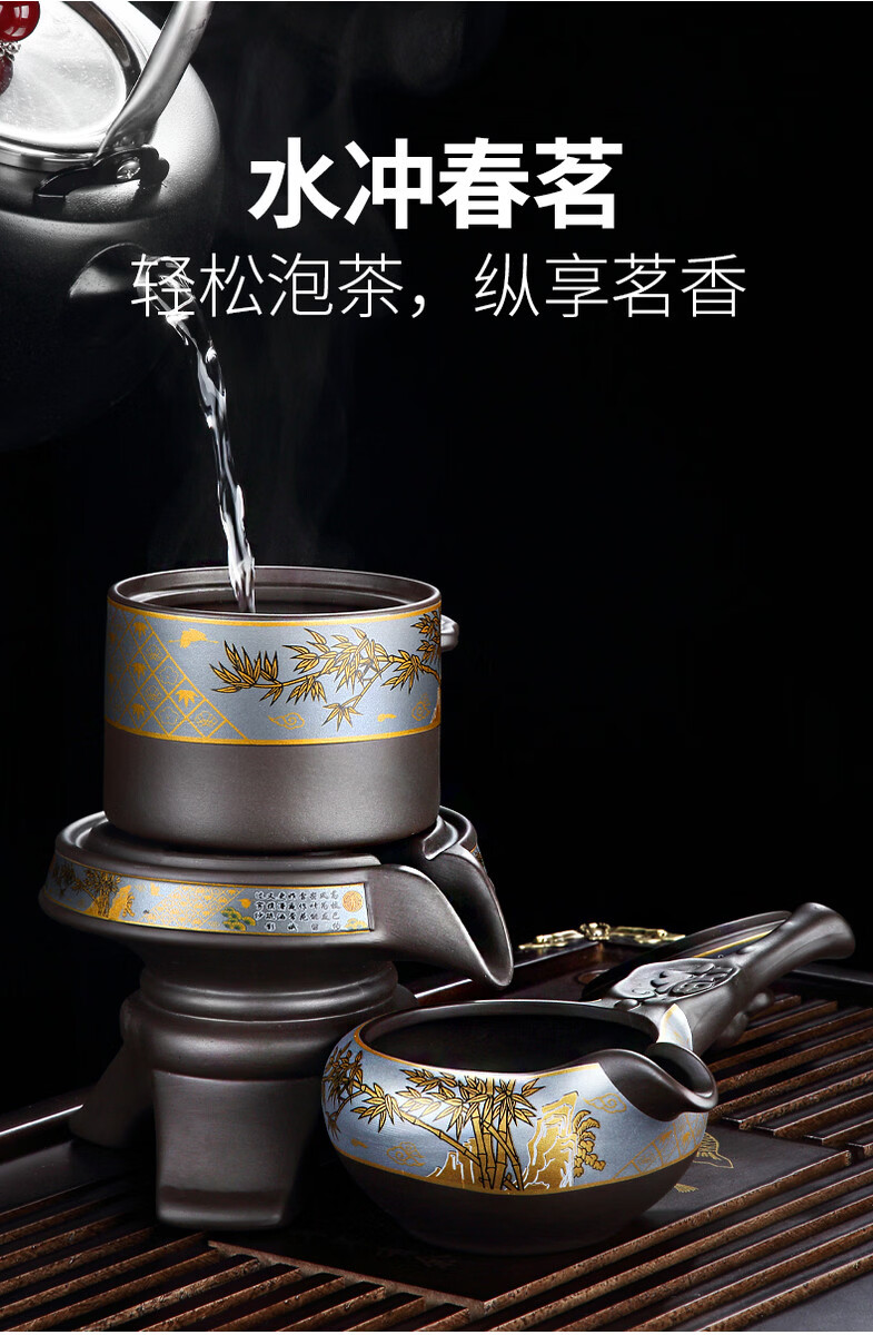 溥畔高端紫砂功夫茶具套装年轻人2026新款实用礼物送长辈爸爸乔迁新居 [礼盒装]观云茶盘43x26cm+如意黑舍得自动