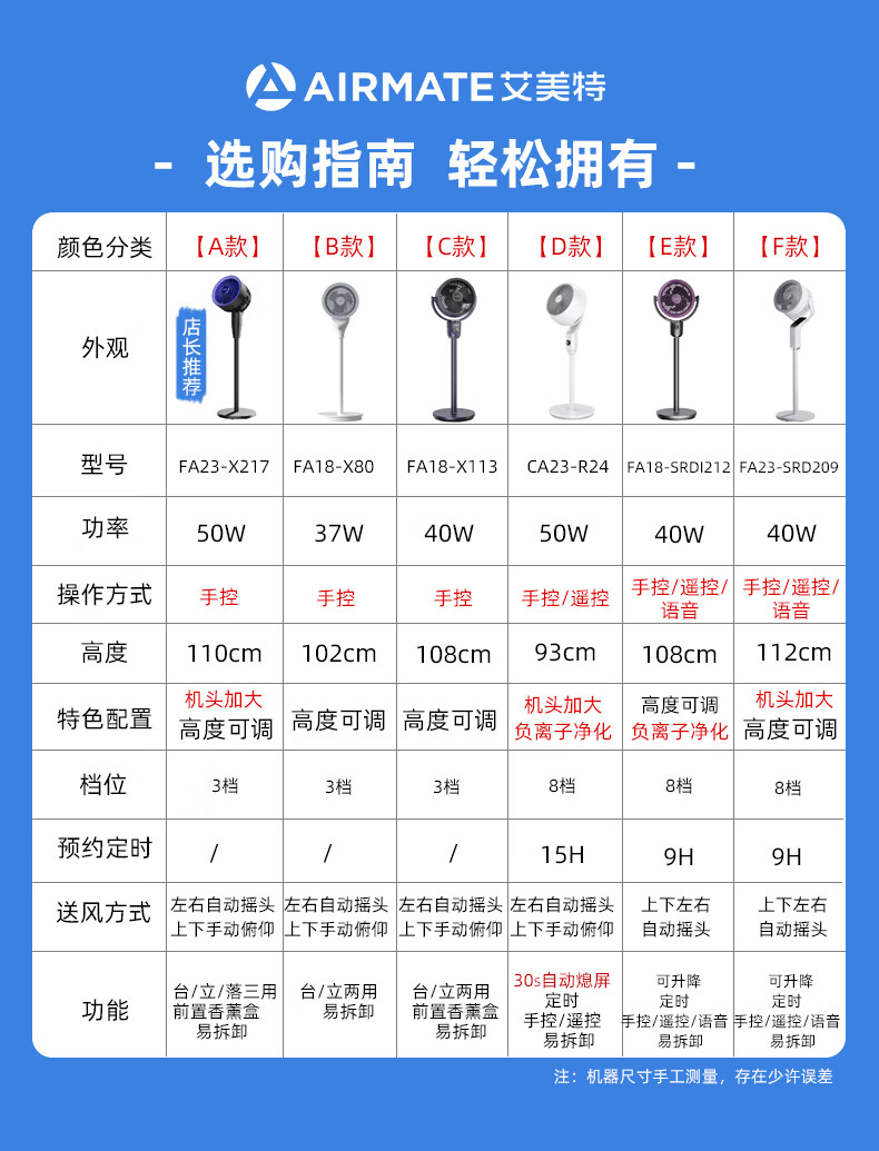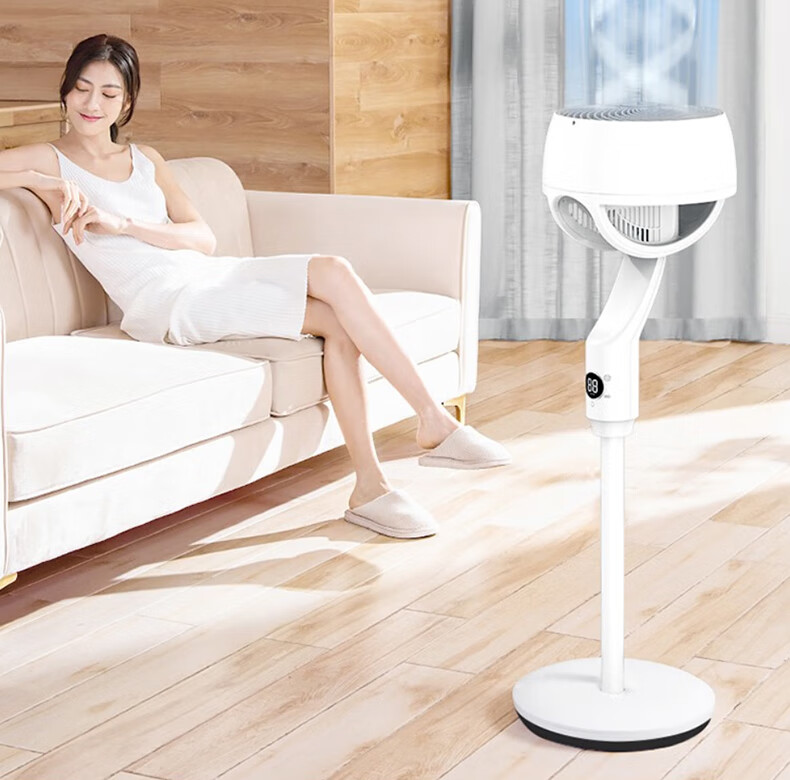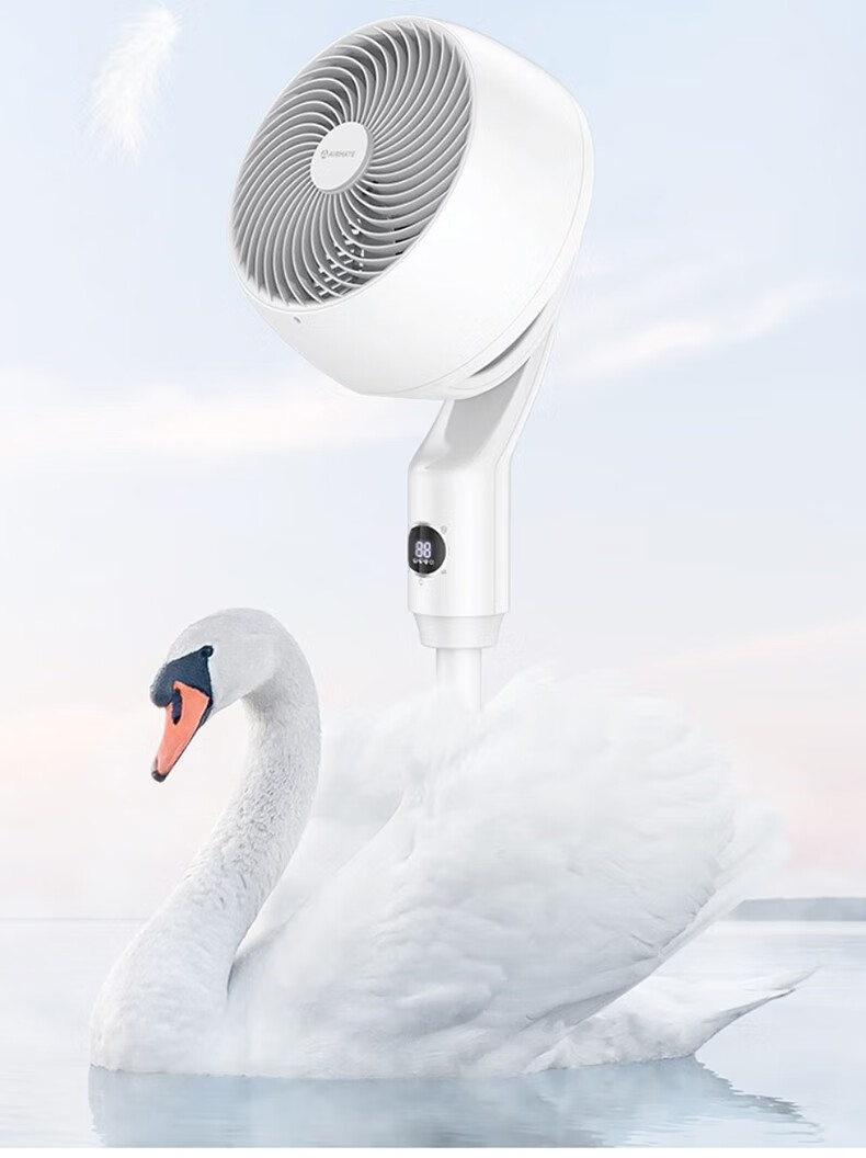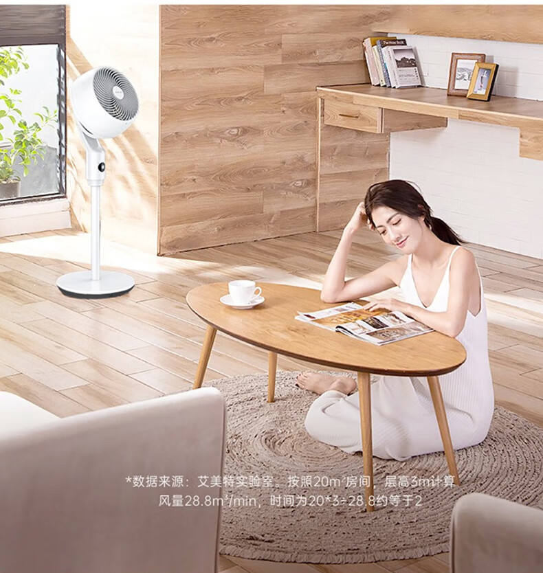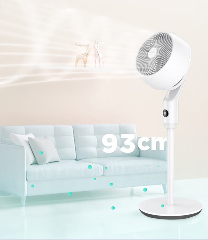 艾美特空气循环扇大风量摇头电风扇家用台式落地扇换气轻音柔风小风扇 【D款】立式遥控款机头加大带负离子CA23-R24