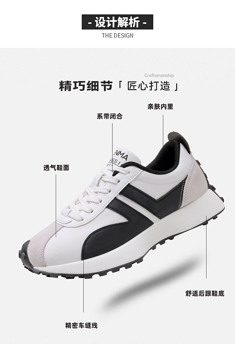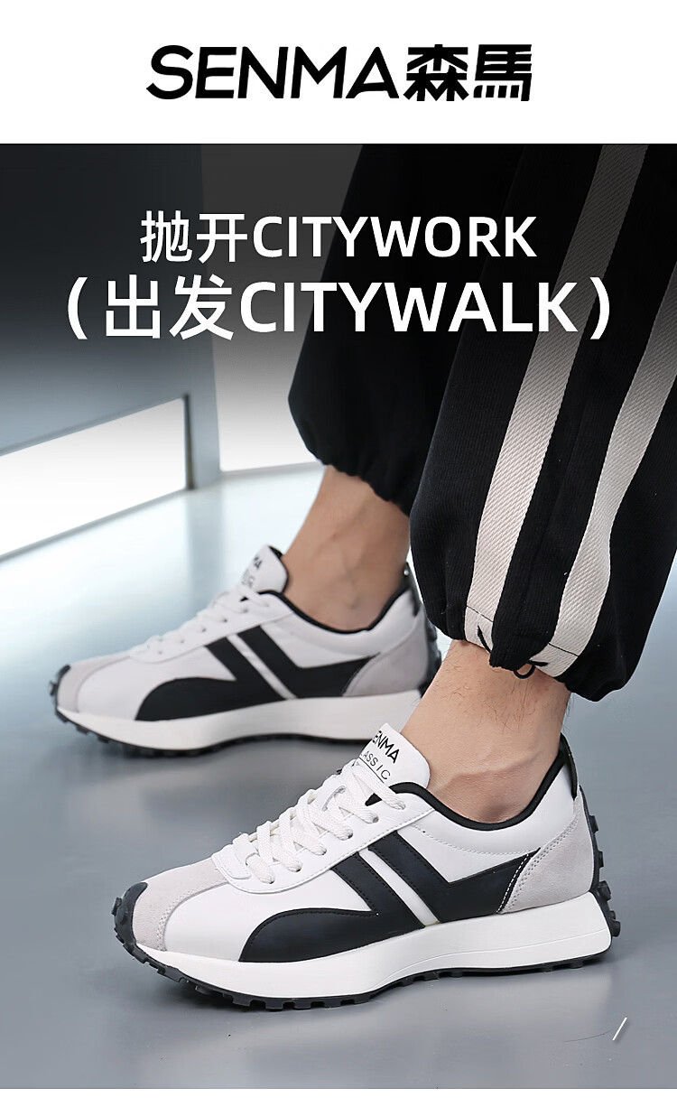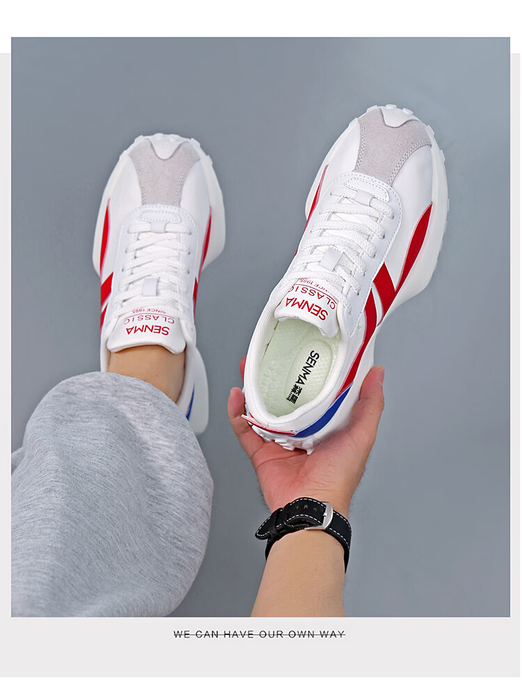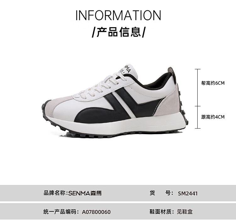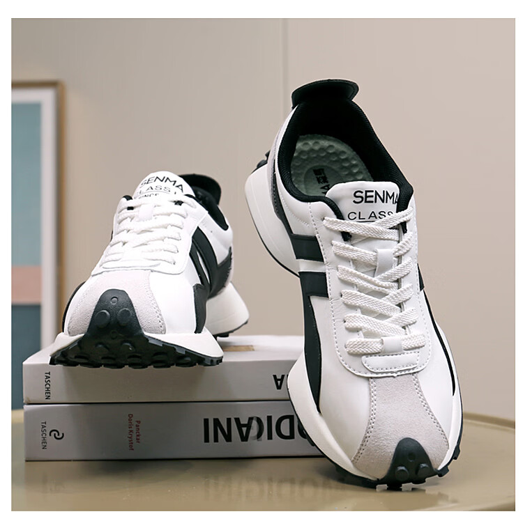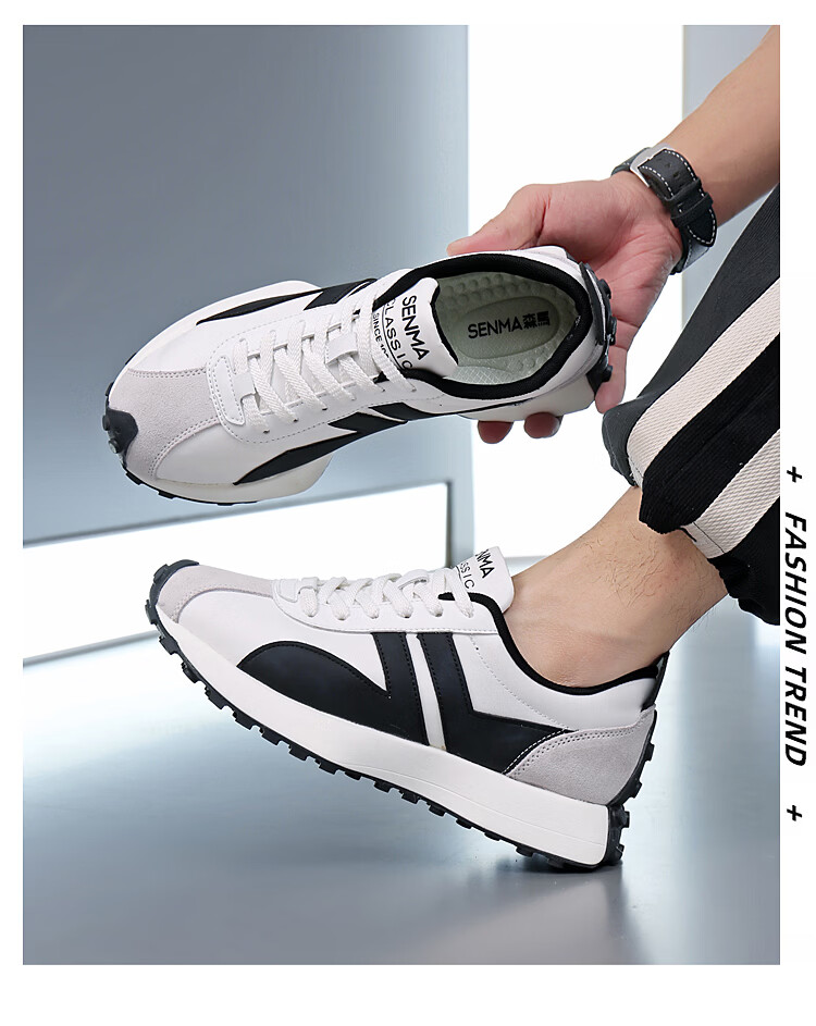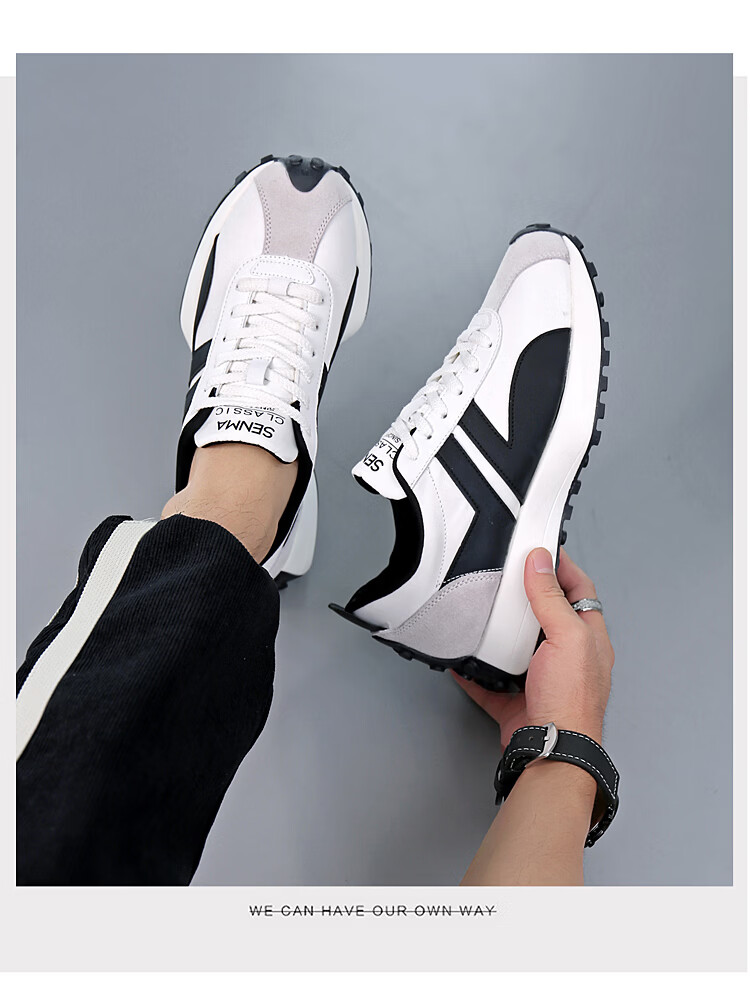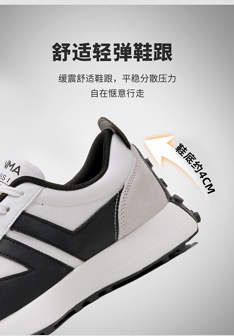 森馬(senma)男士厚底舒适跑步鞋低帮防滑轻便阿甘鞋时尚百搭休闲鞋 白黑 35