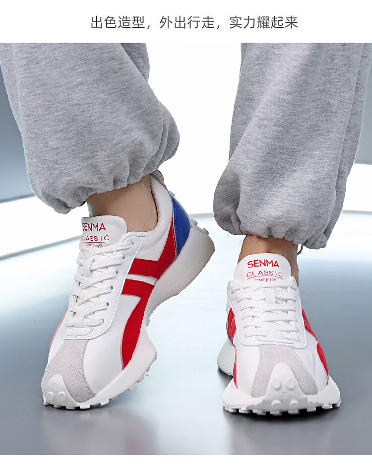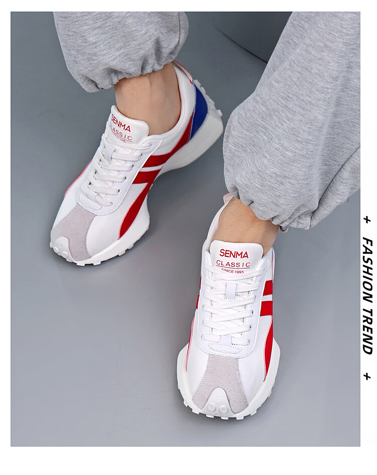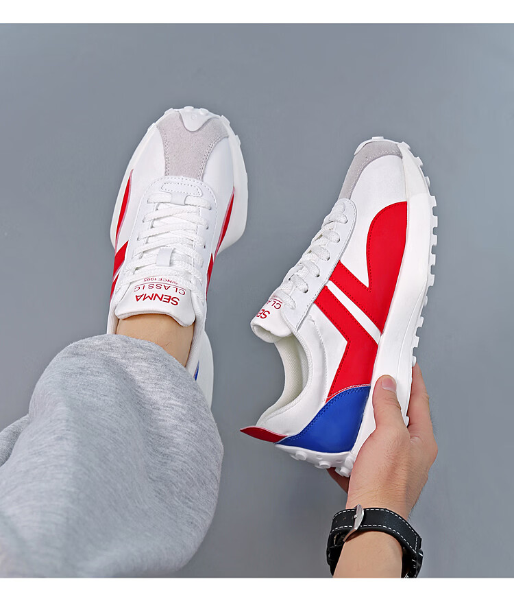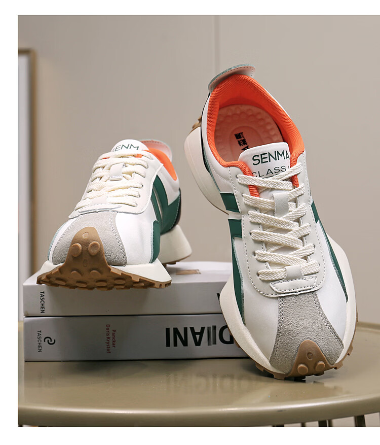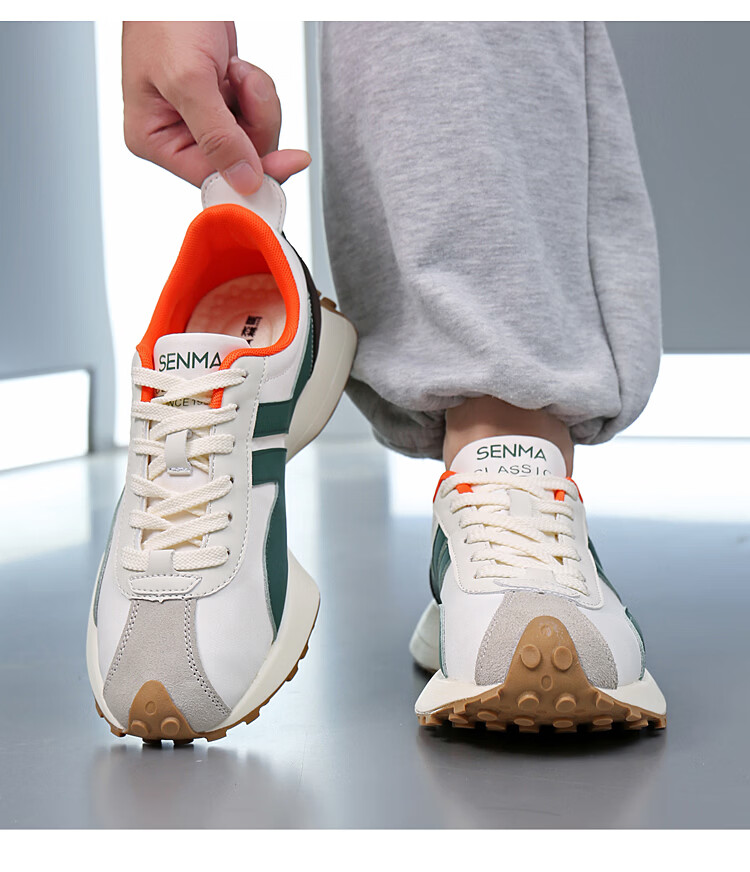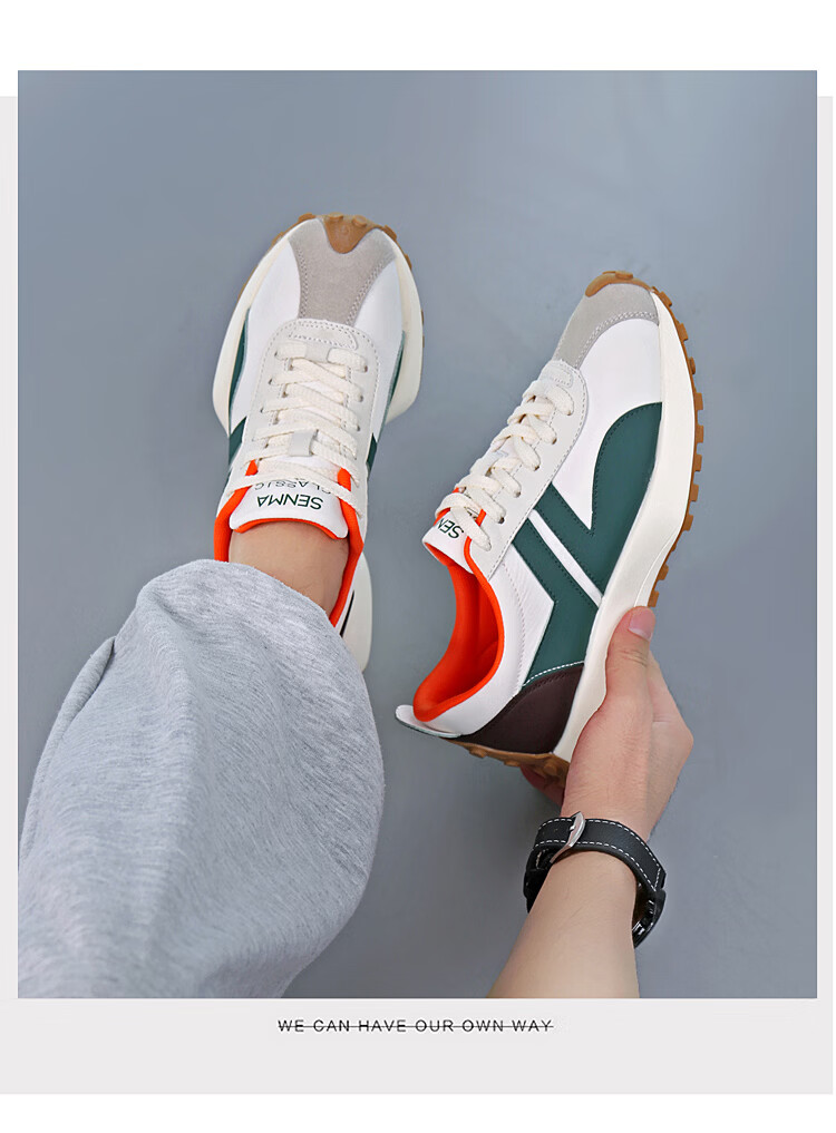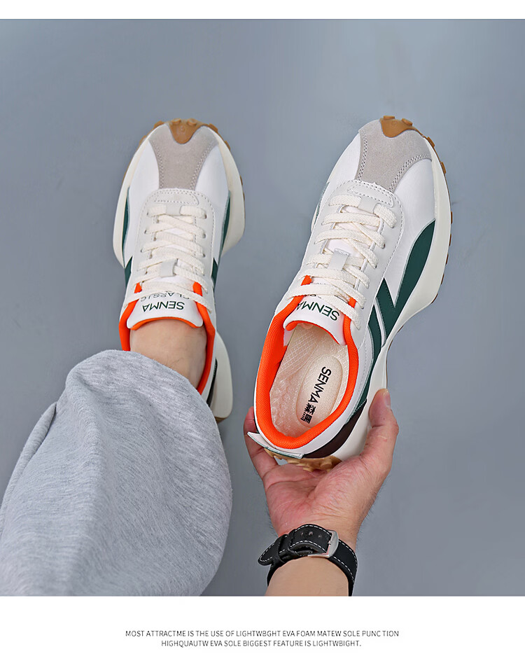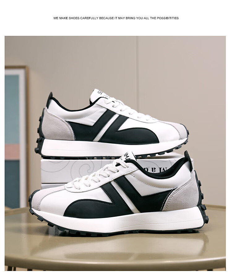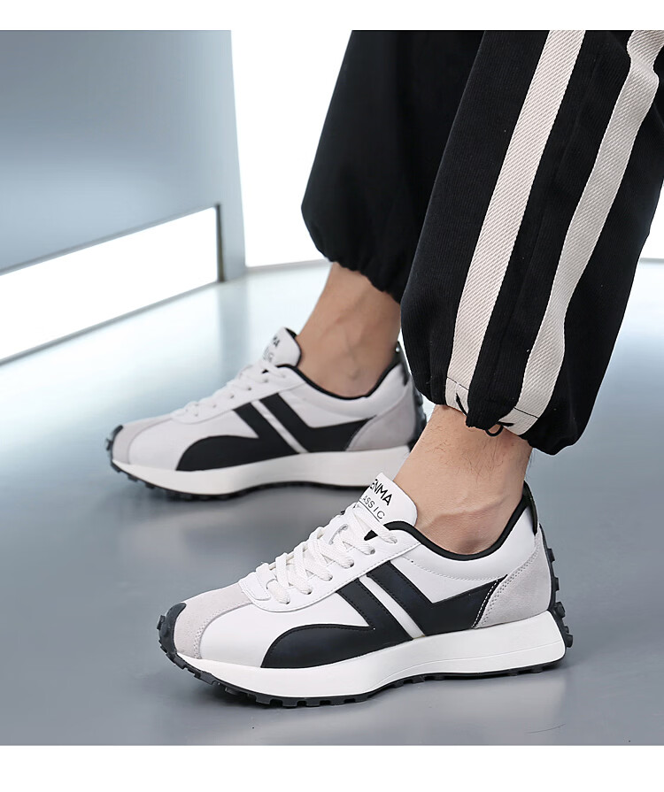 森馬(senma)男士厚底舒适跑步鞋低帮防滑轻便阿甘鞋时尚百搭休闲鞋 白黑 35