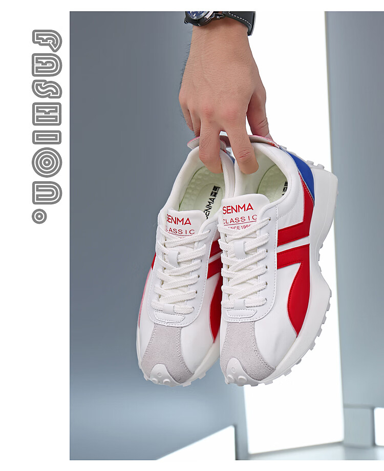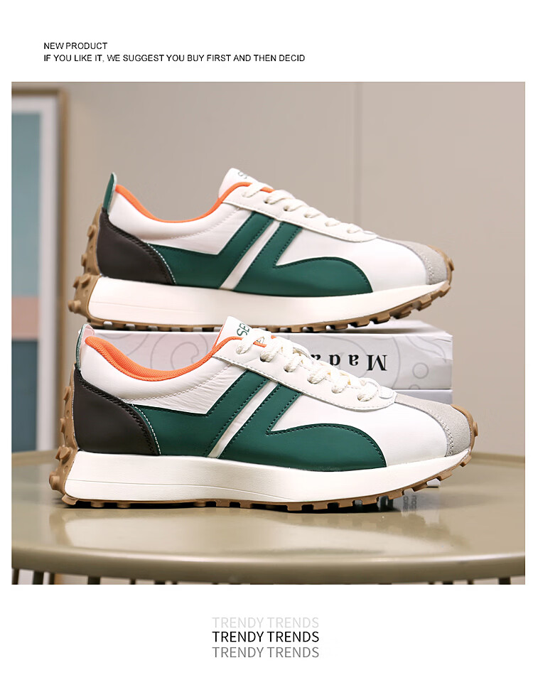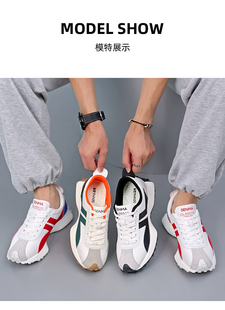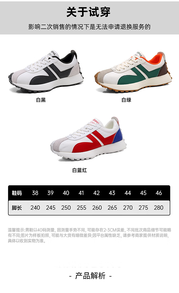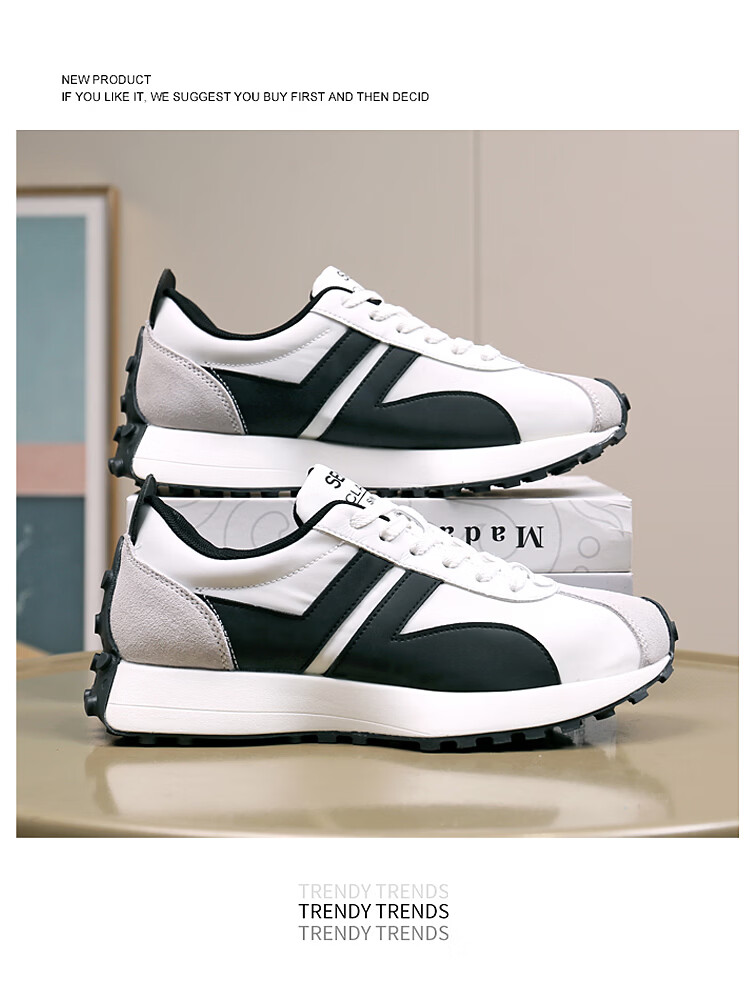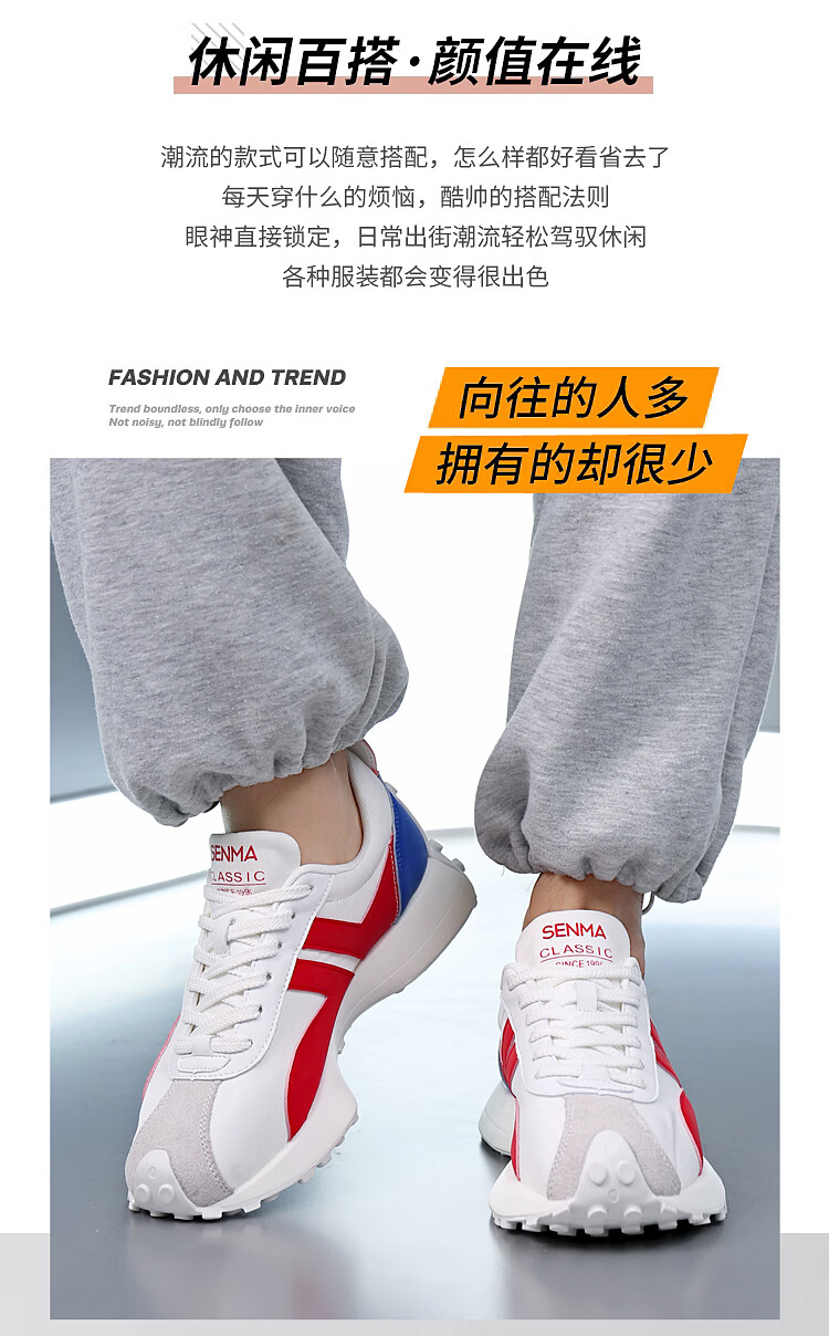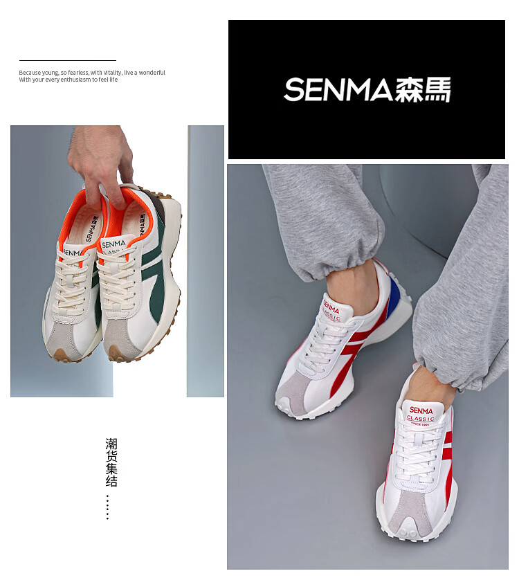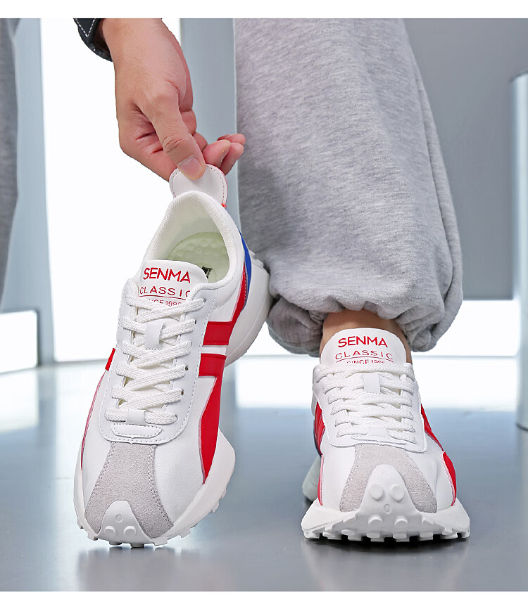 森馬(senma)男士厚底舒适跑步鞋低帮防滑轻便阿甘鞋时尚百搭休闲鞋 白黑 35