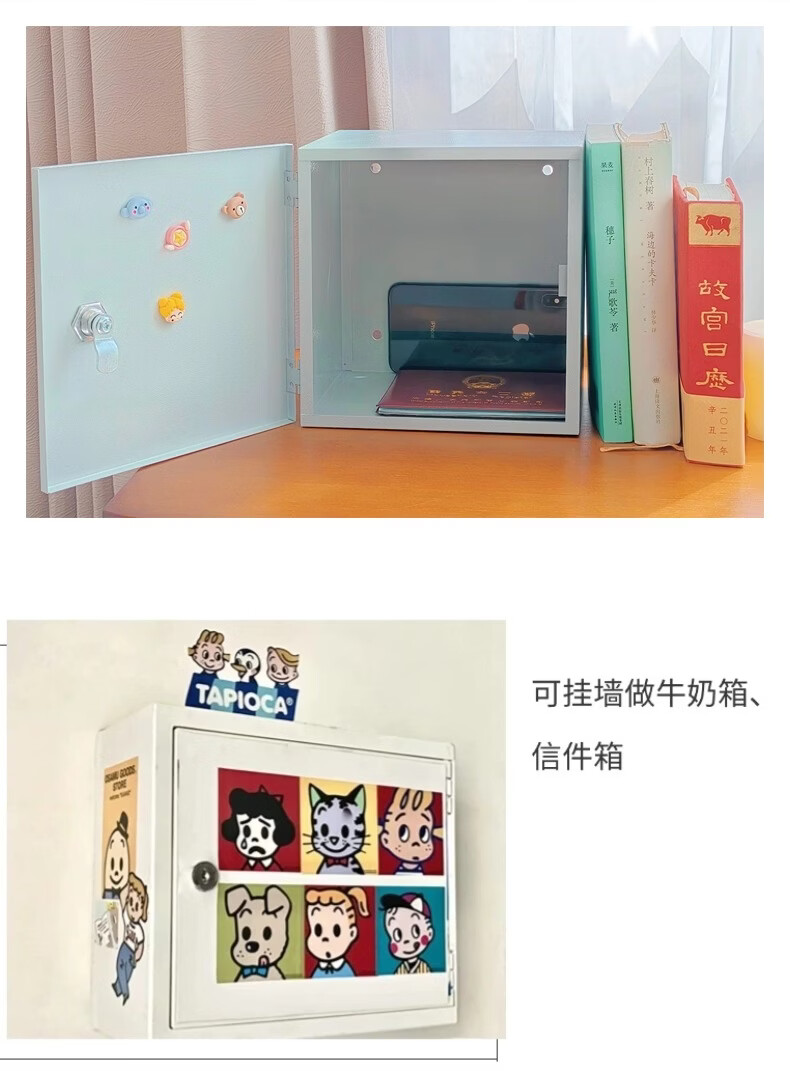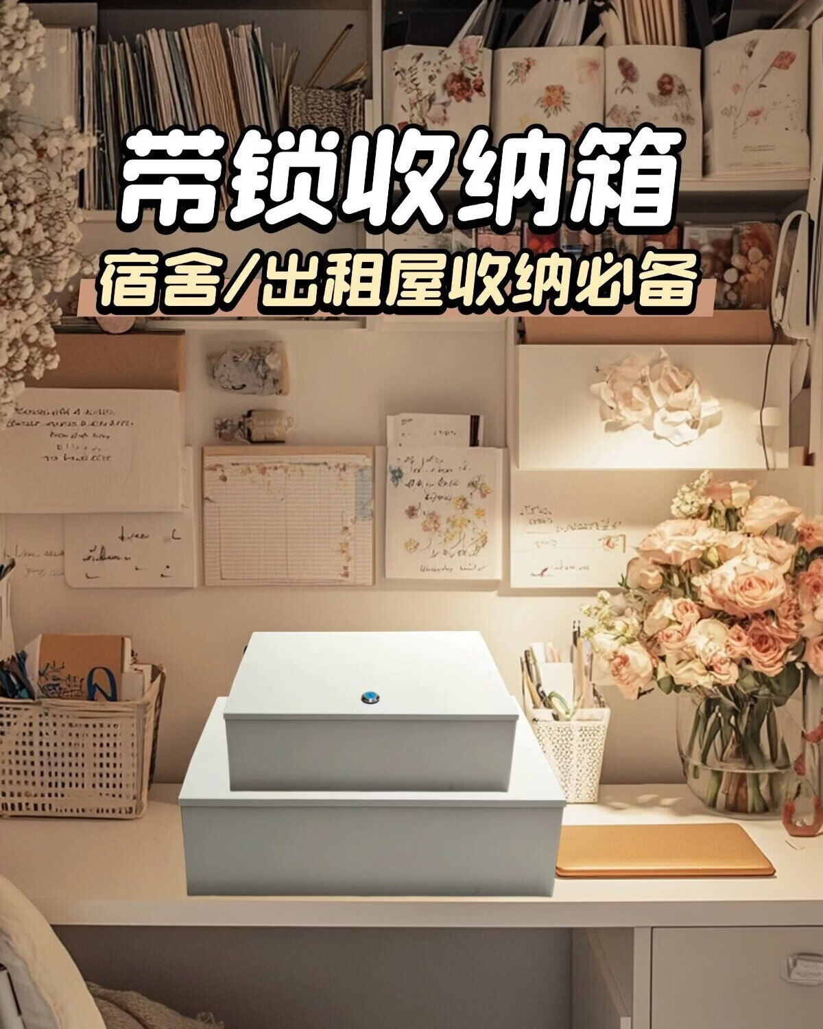 带锁金属铁盒收纳盒隐私桌面手机首饰小杂物迷你保险箱学生储物盒 300+400+200
