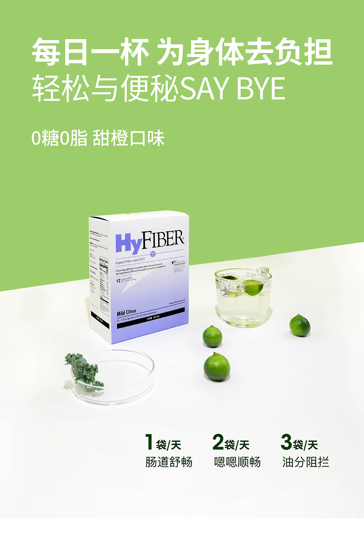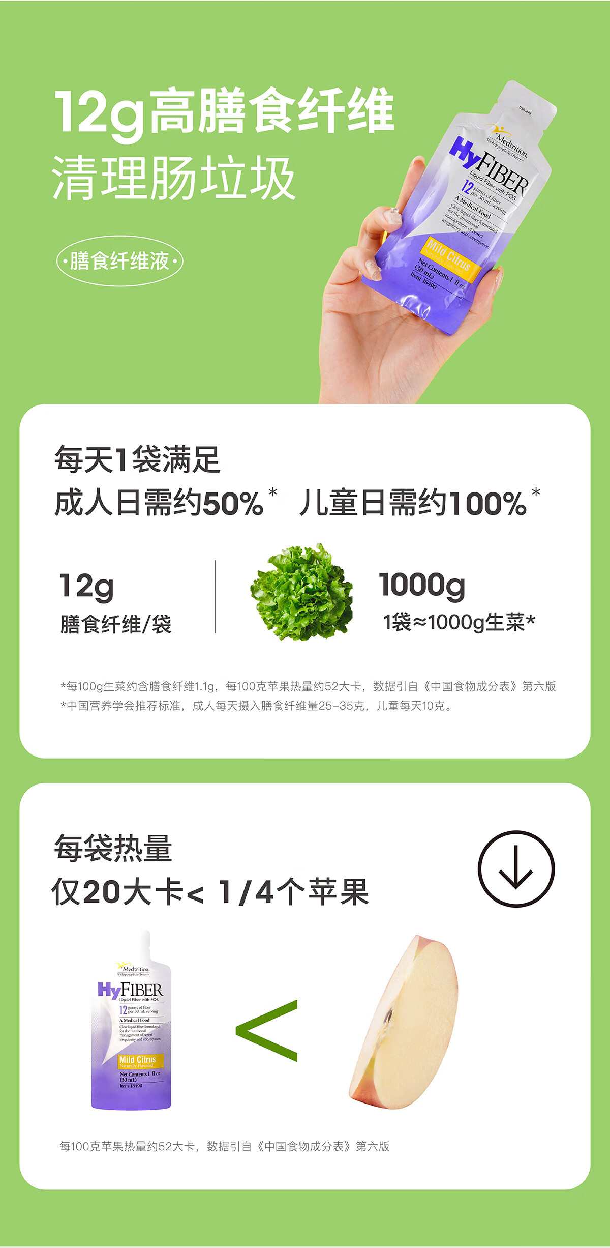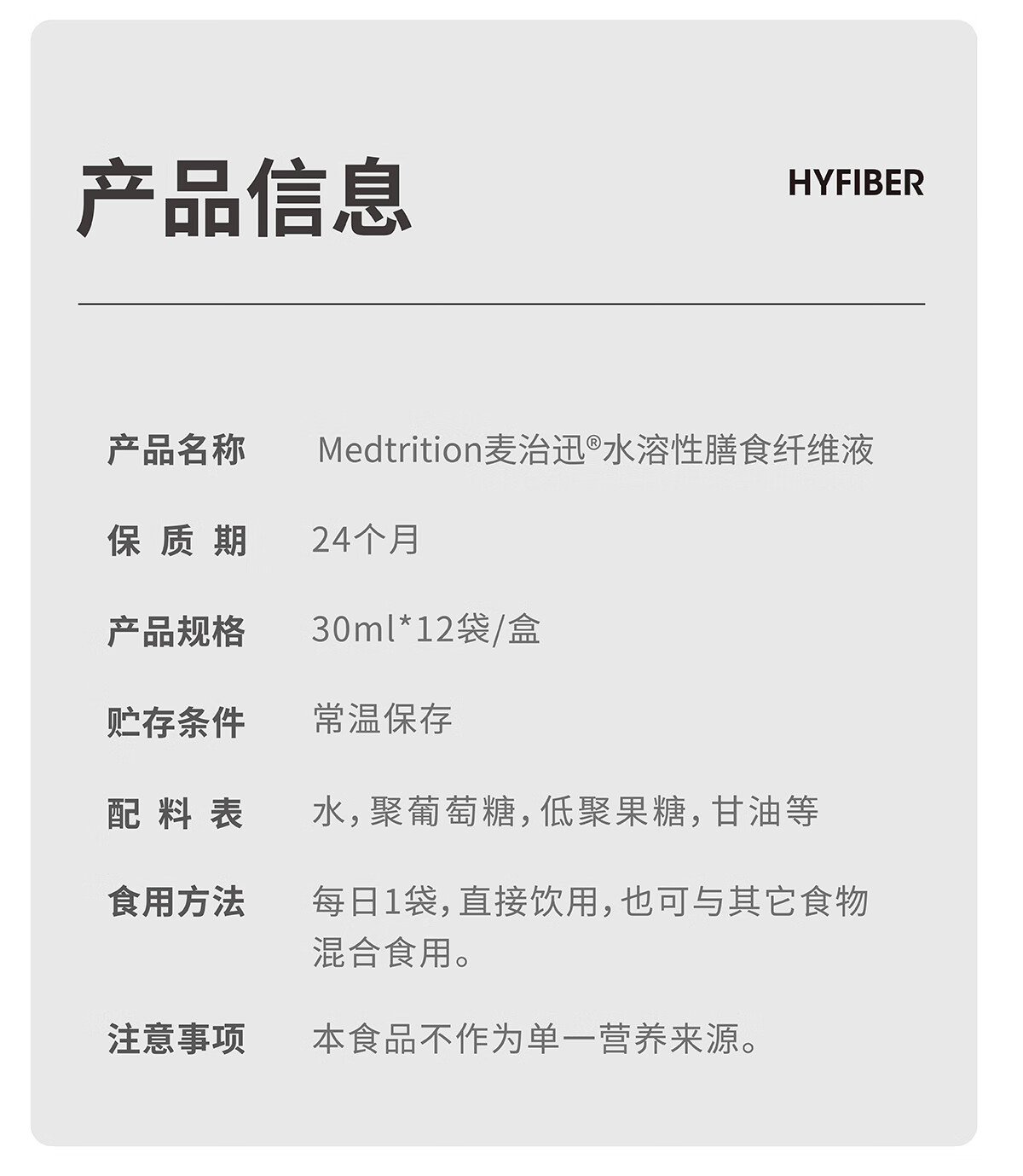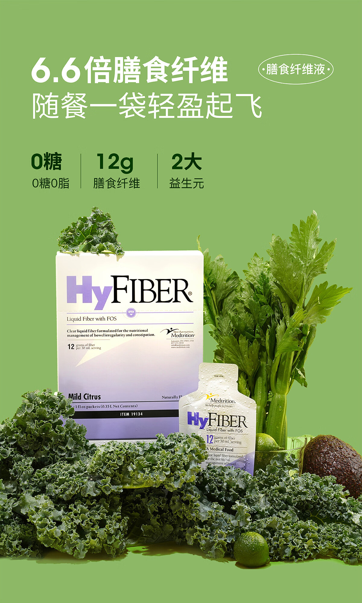 Medtrition麦治迅水溶膳食纤维液呵护肠道健康便秘通便低聚果糖聚葡萄糖 12条*1盒