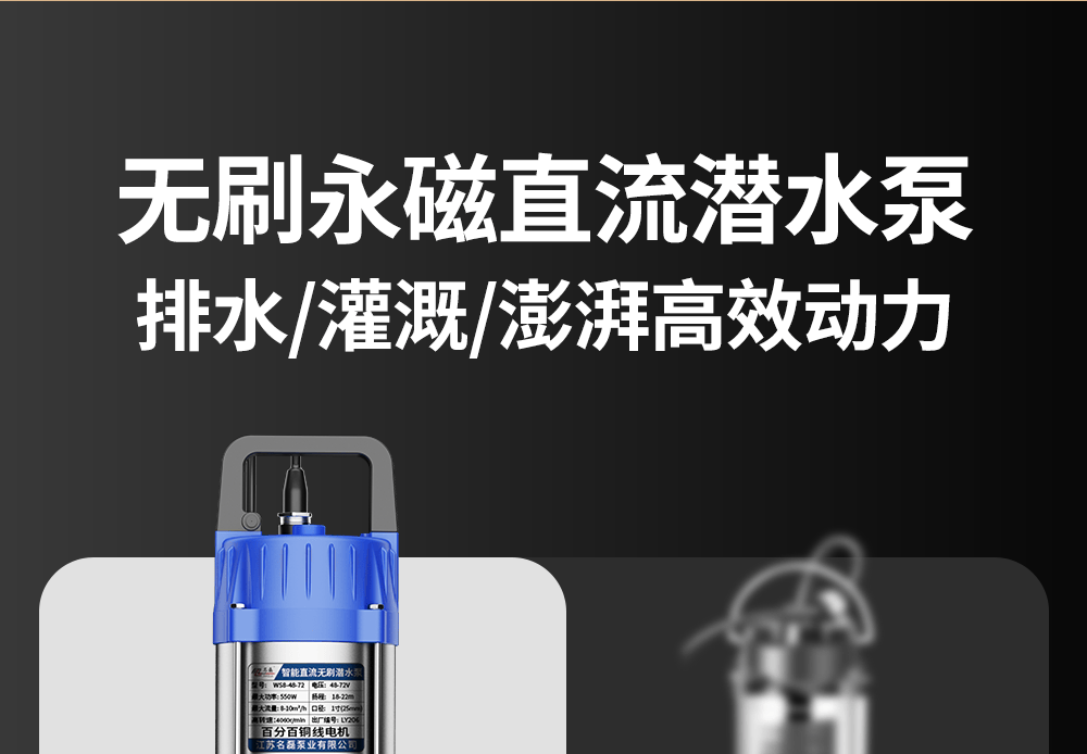 名磊潜水泵家用便携式水泵直流潜水泵农用无刷抽水泵充电抽水机 【新升级】48V(12AH锂电)+10米管