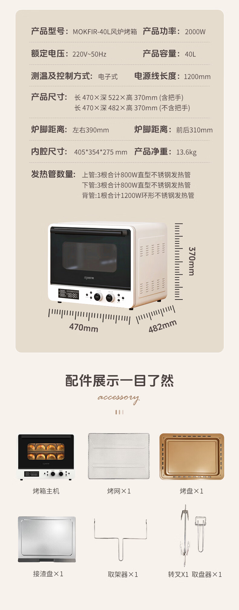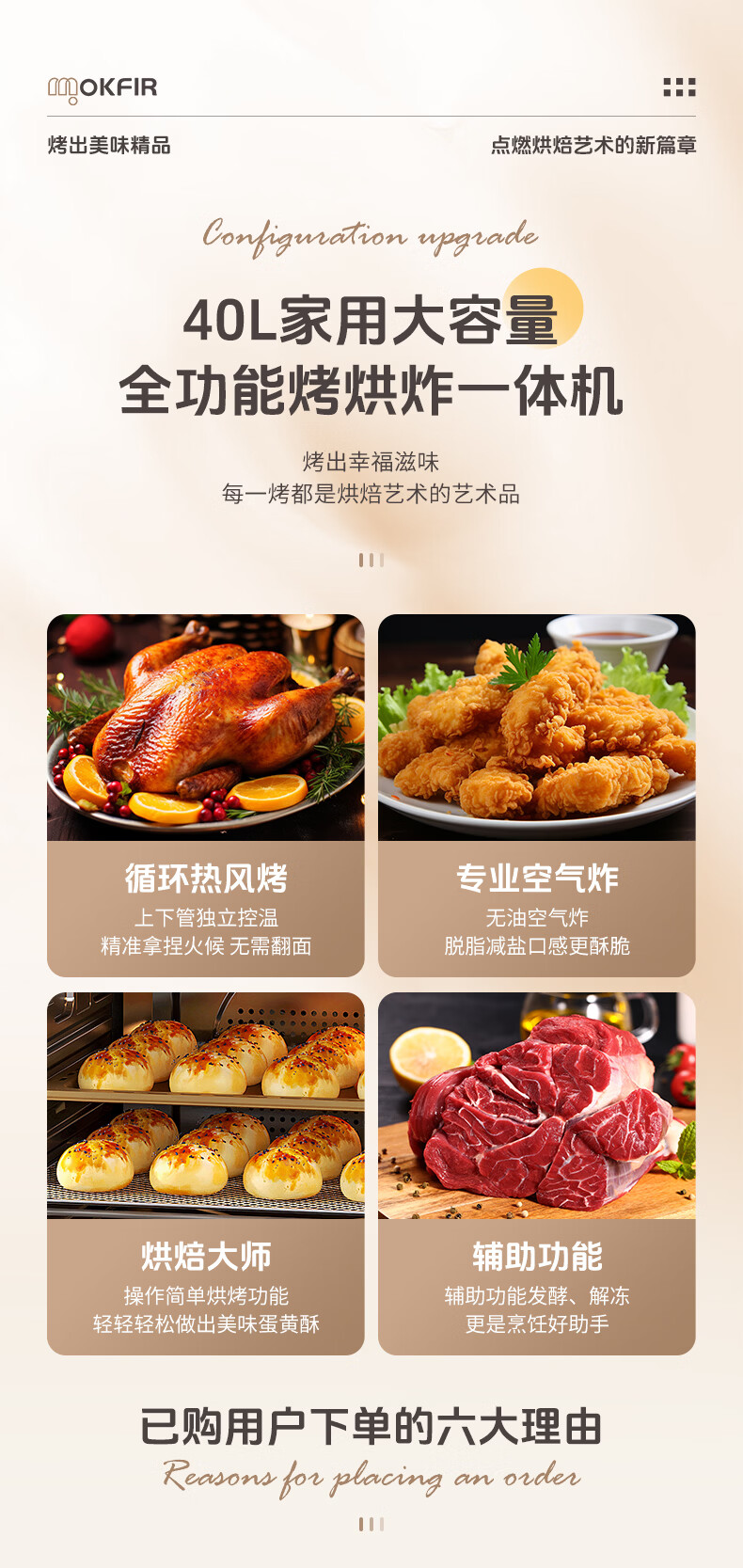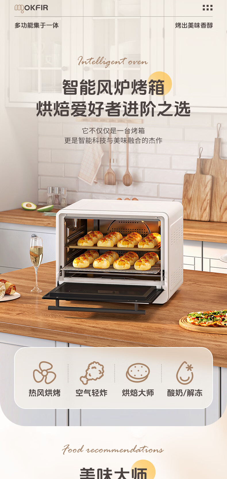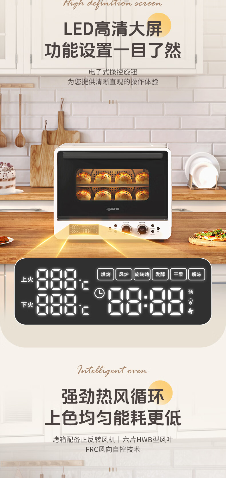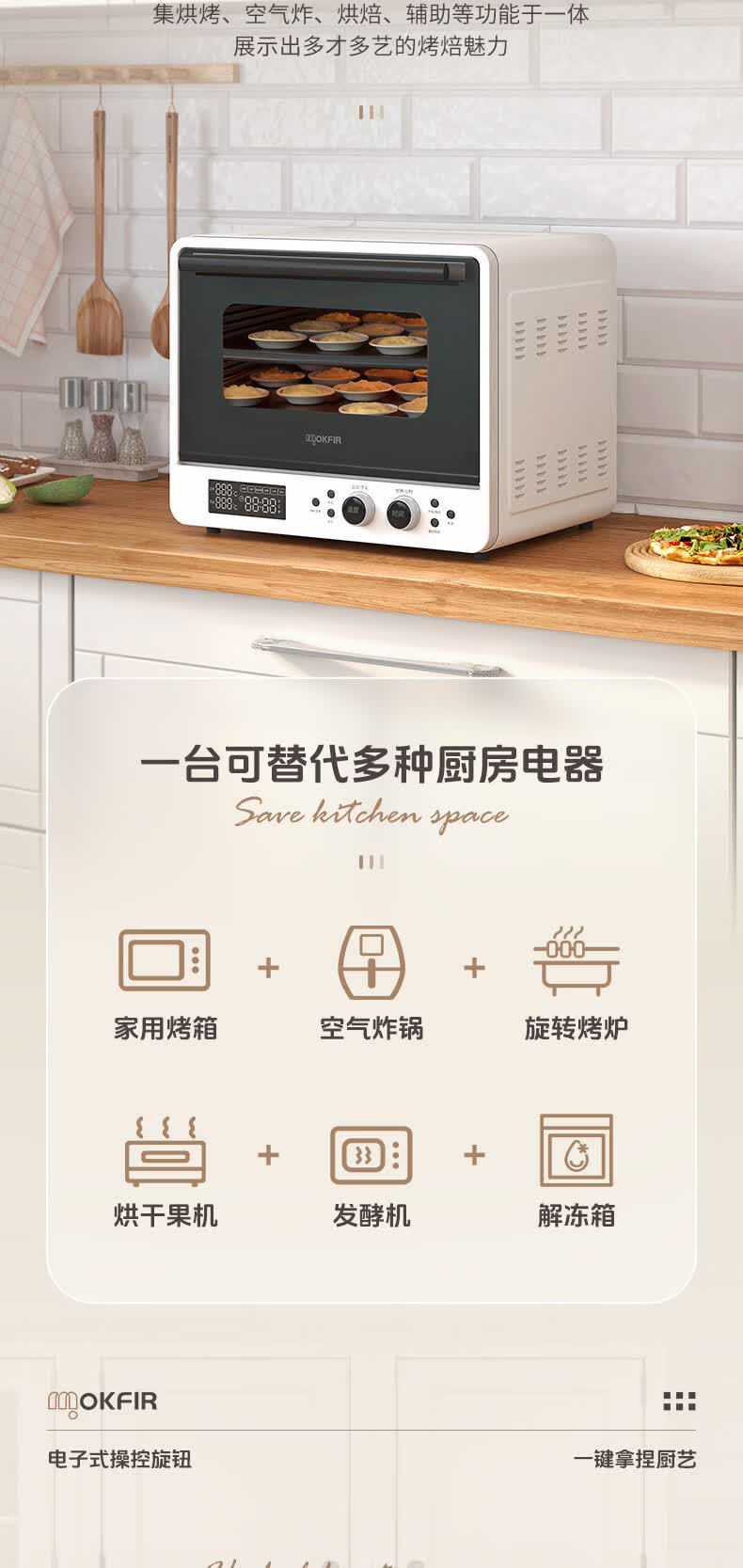 默克菲尔40L大容量智能风炉烤箱 独立控温 食品级搪瓷内腔 热风均匀循环加热