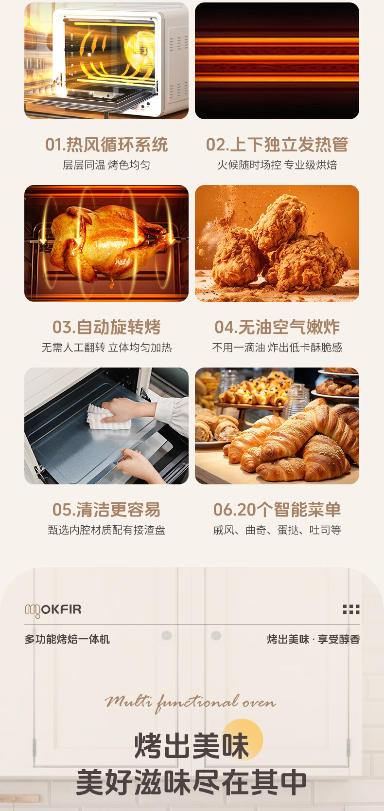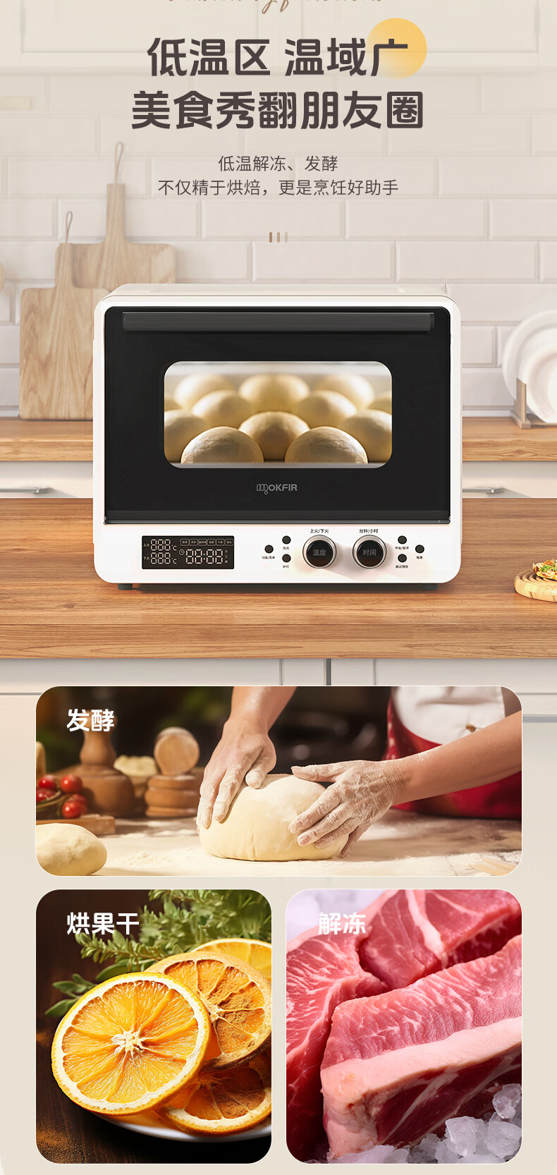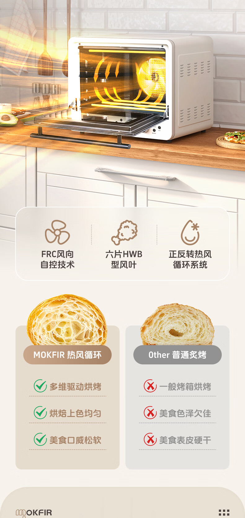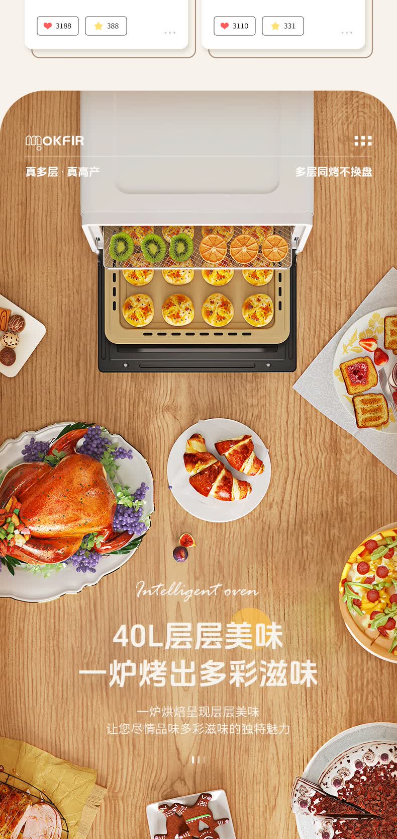 默克菲尔40L大容量智能风炉烤箱 独立控温 食品级搪瓷内腔 热风均匀循环加热