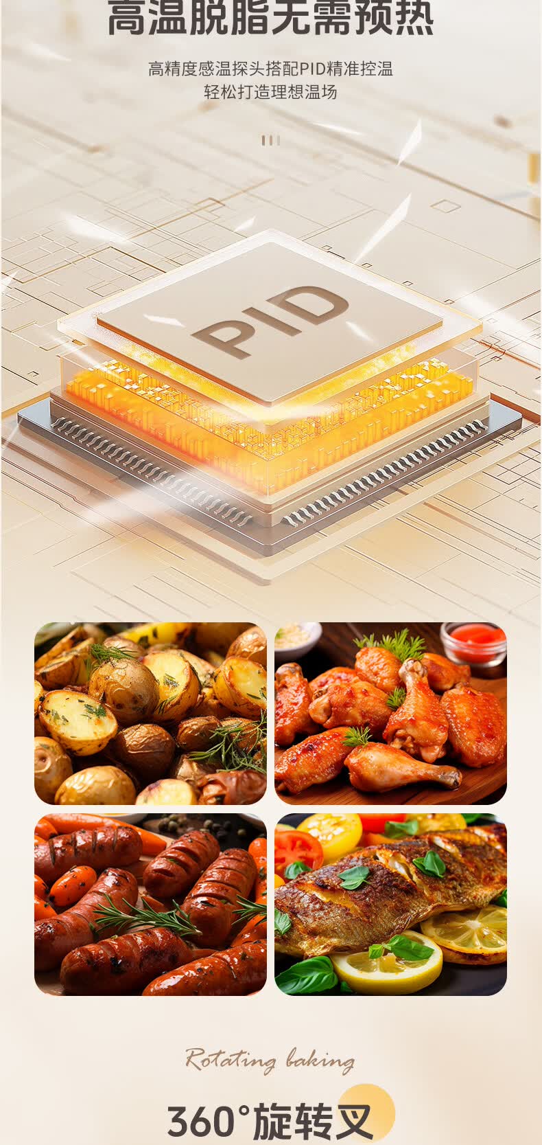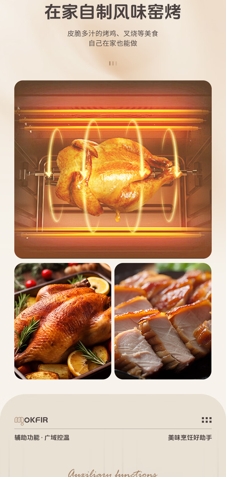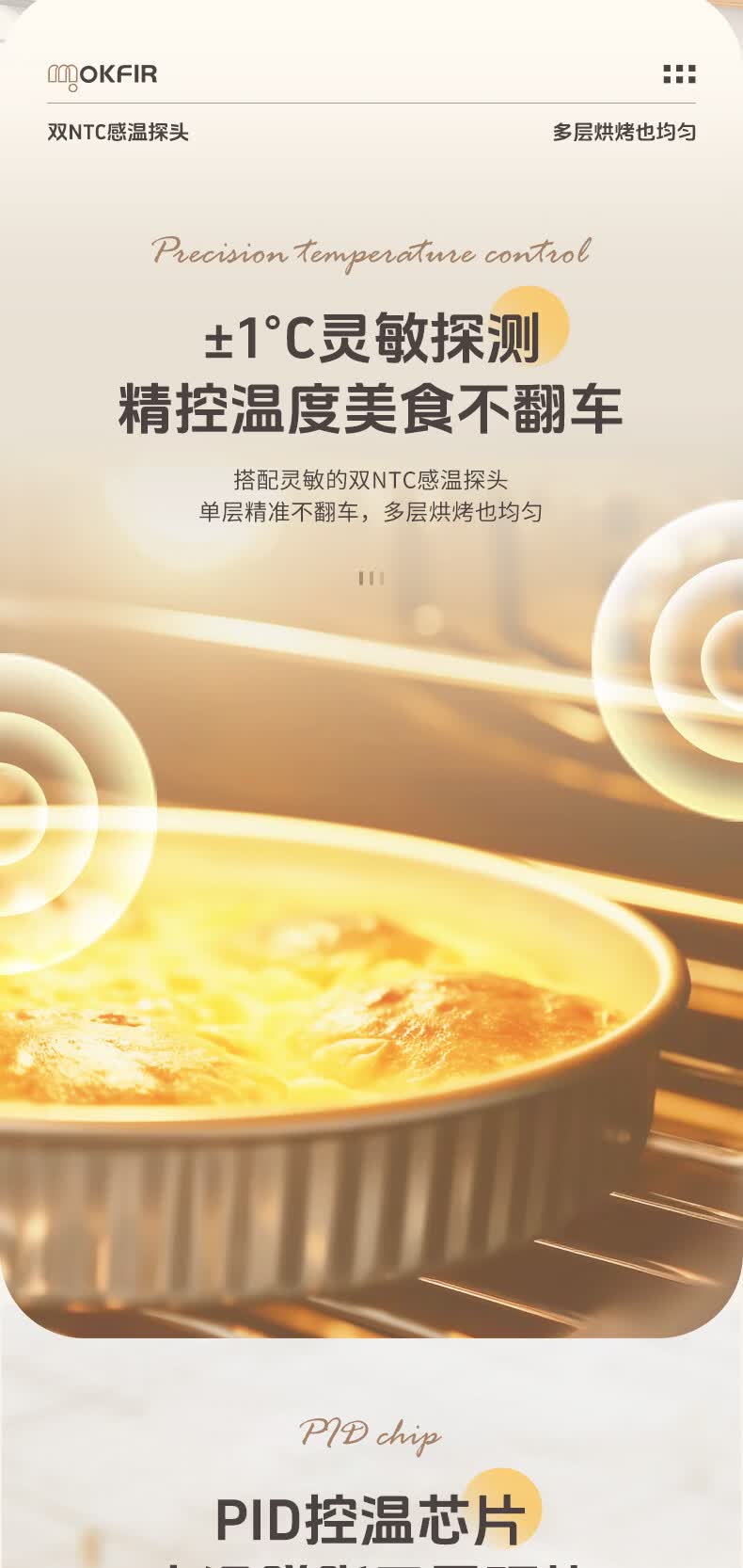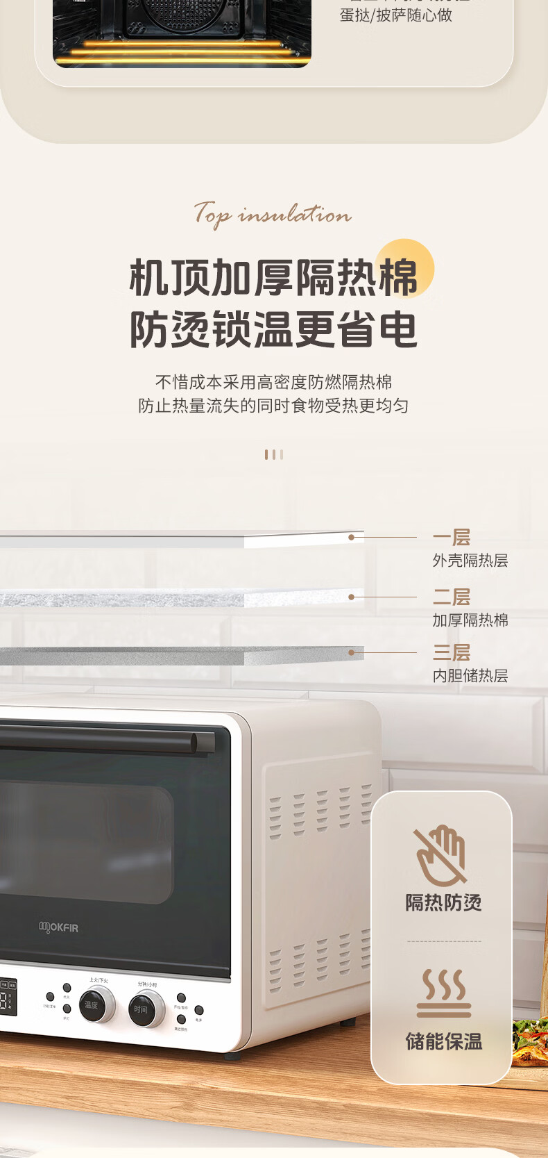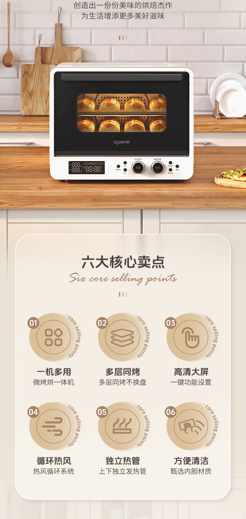 默克菲尔40L大容量智能风炉烤箱 独立控温 食品级搪瓷内腔 热风均匀循环加热