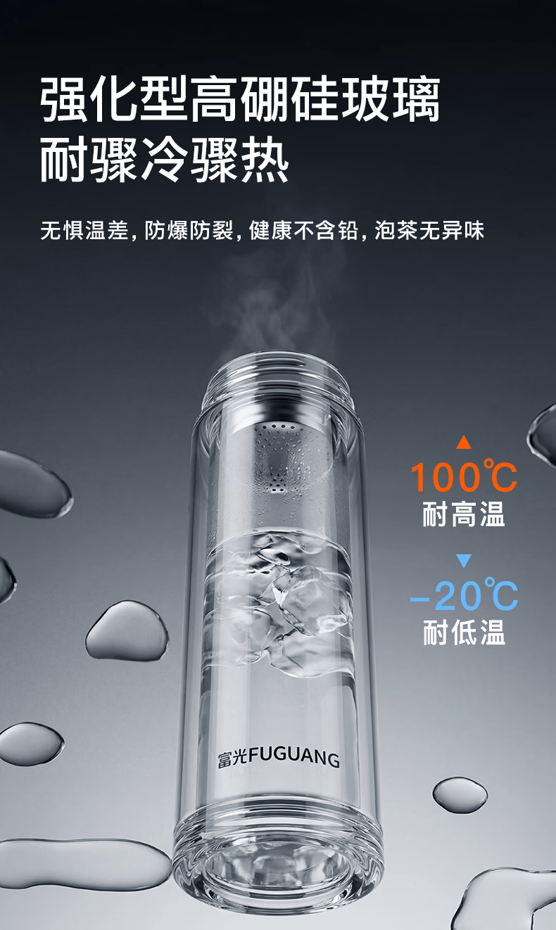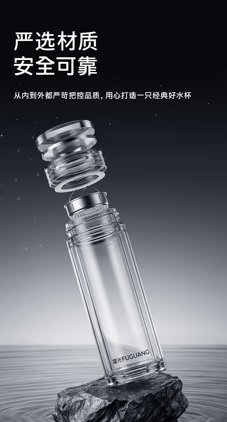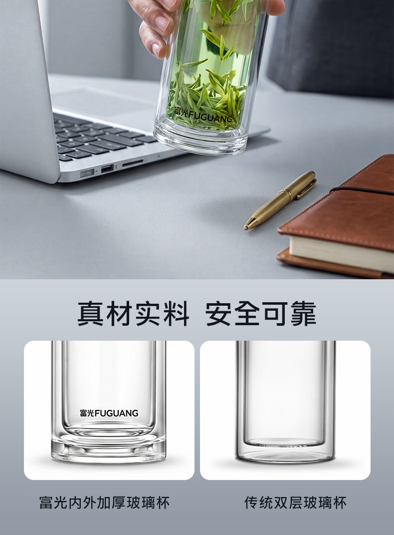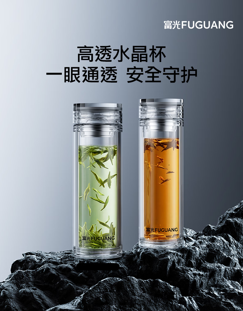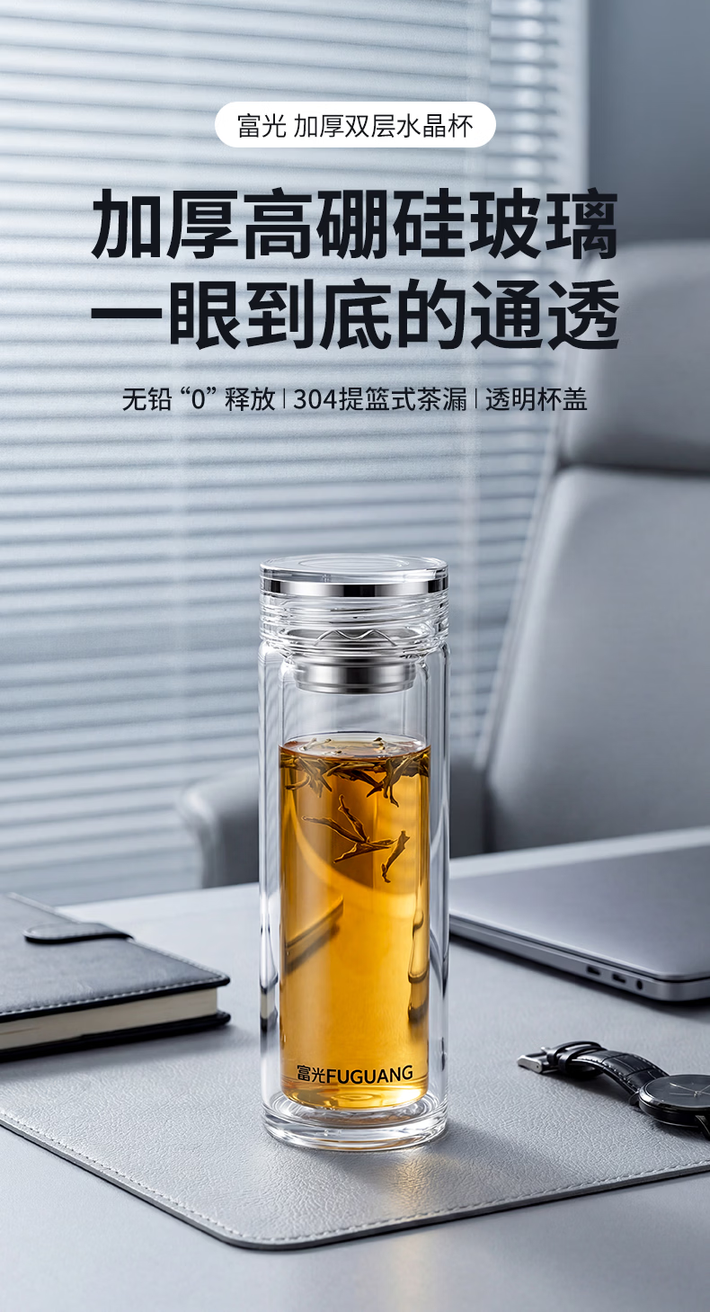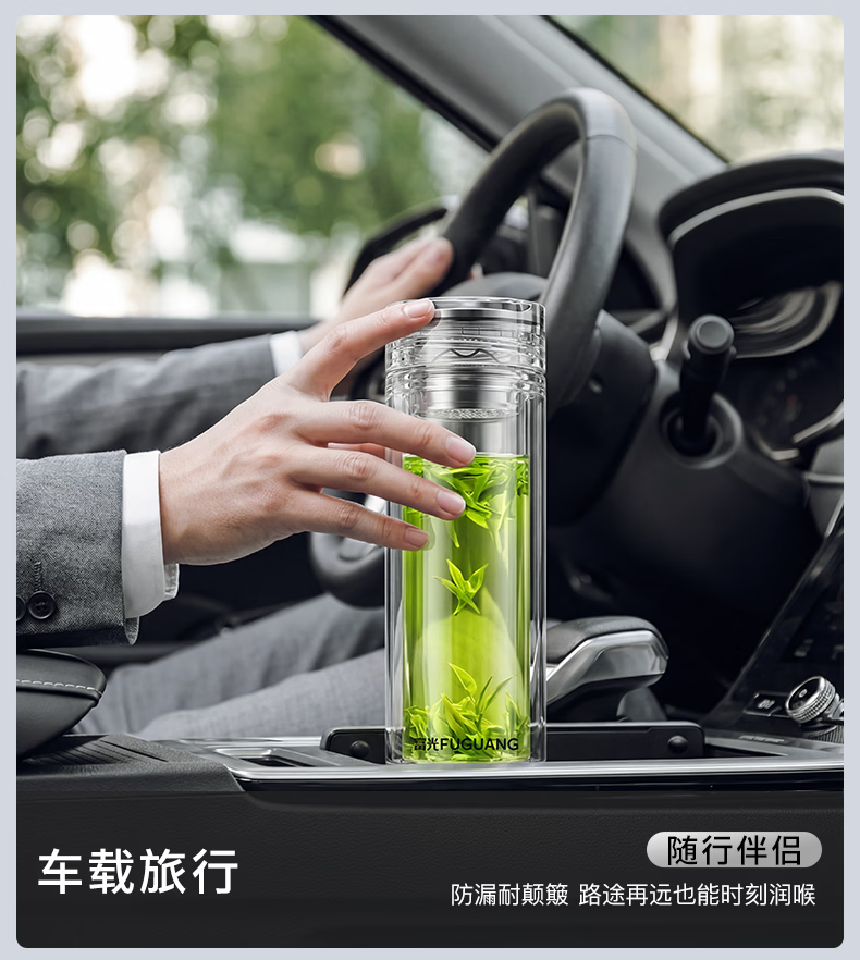 富光玻璃杯 商务轻奢双层高硼硅玻璃水杯 车载便携茶杯茶水分离泡茶杯 双层高透轻奢商务 400ML