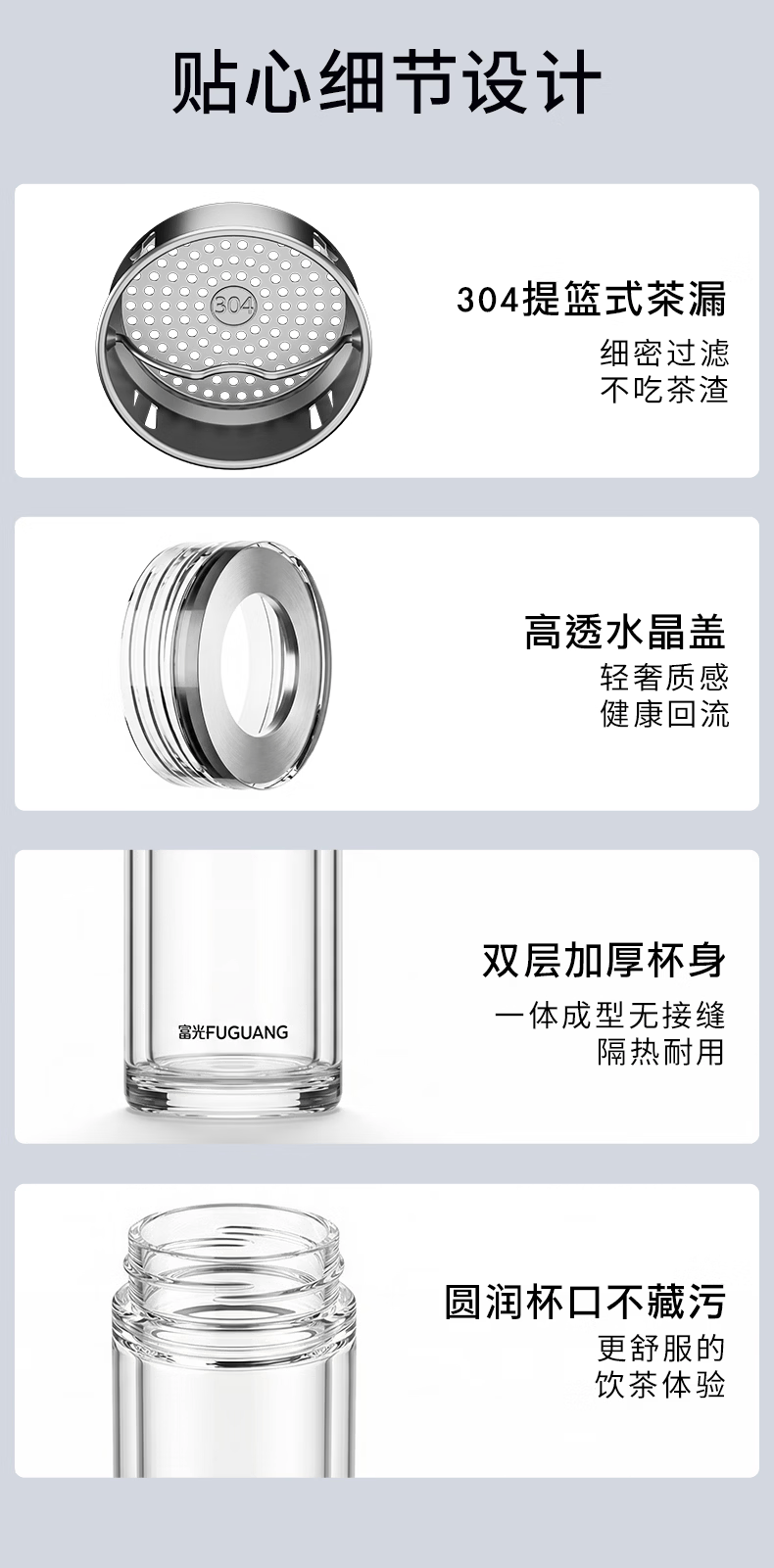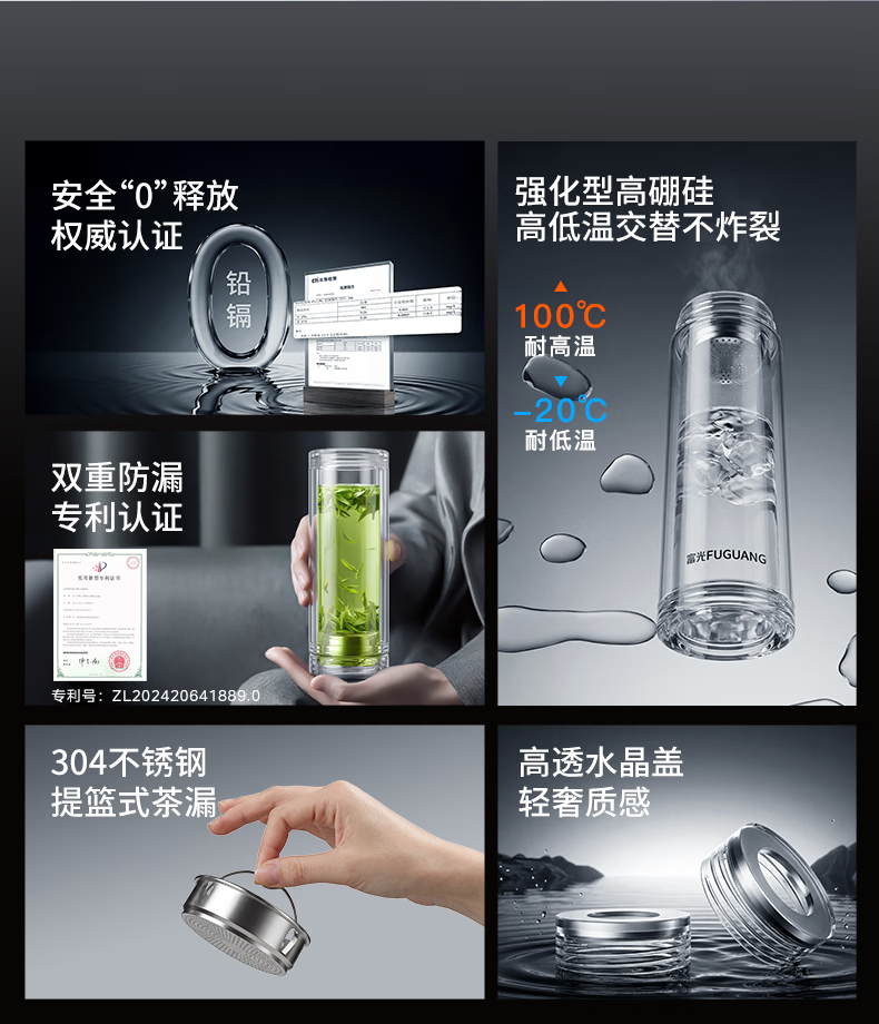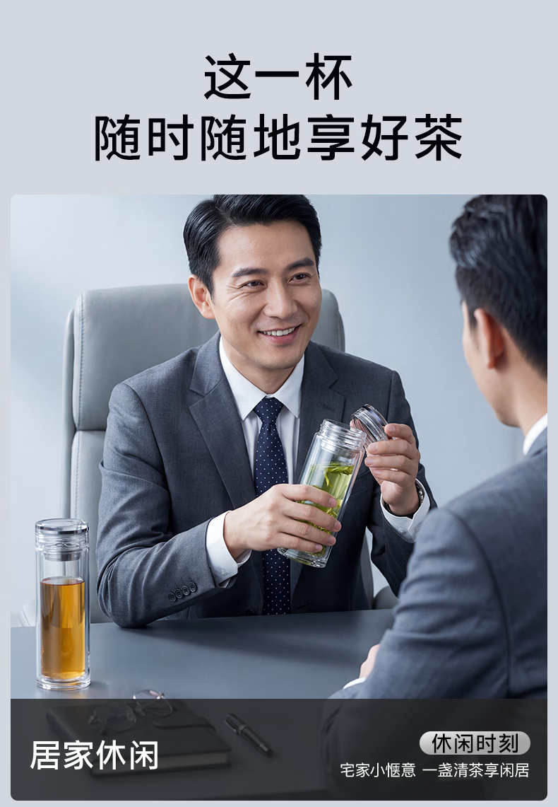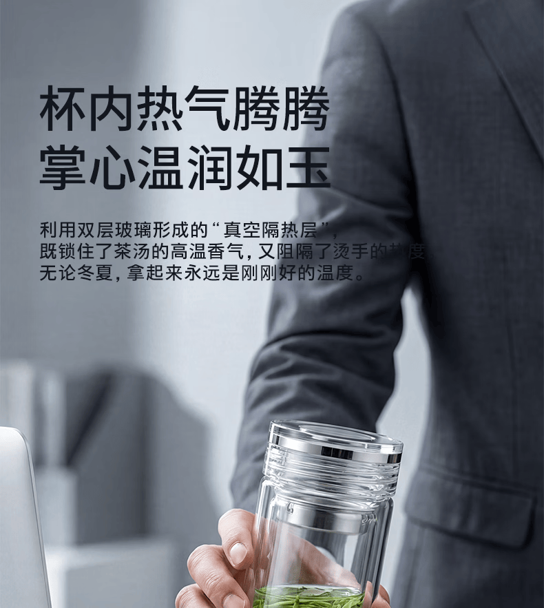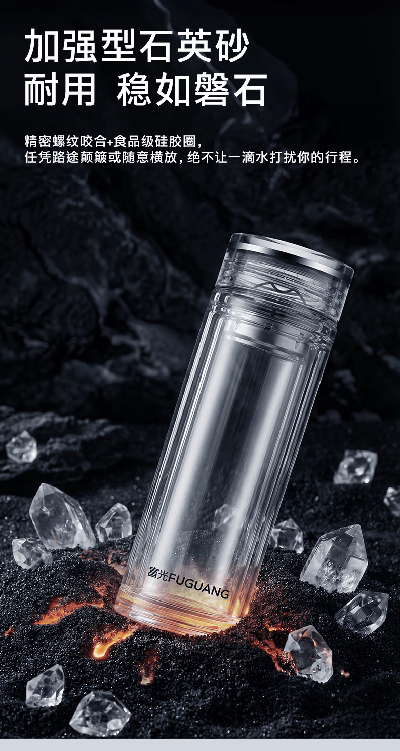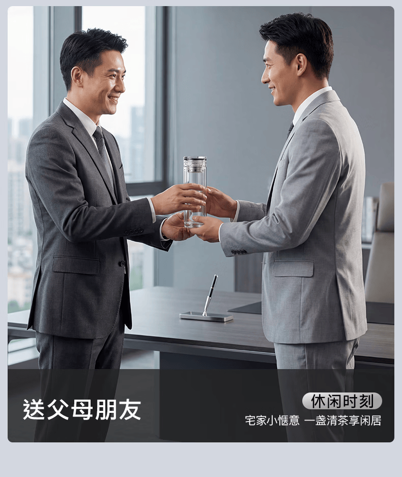 富光玻璃杯 商务轻奢双层高硼硅玻璃水杯 车载便携茶杯茶水分离泡茶杯 双层高透轻奢商务 400ML