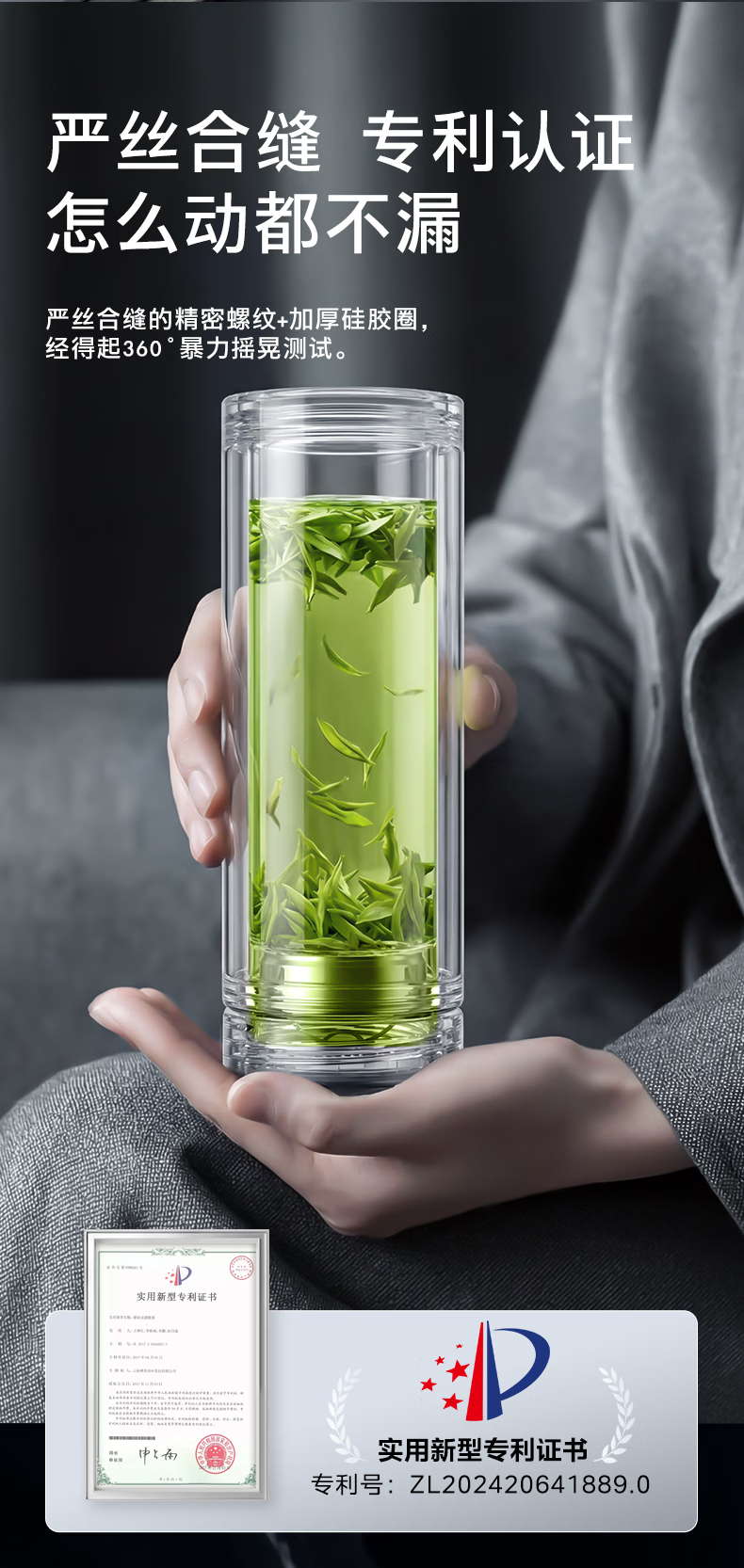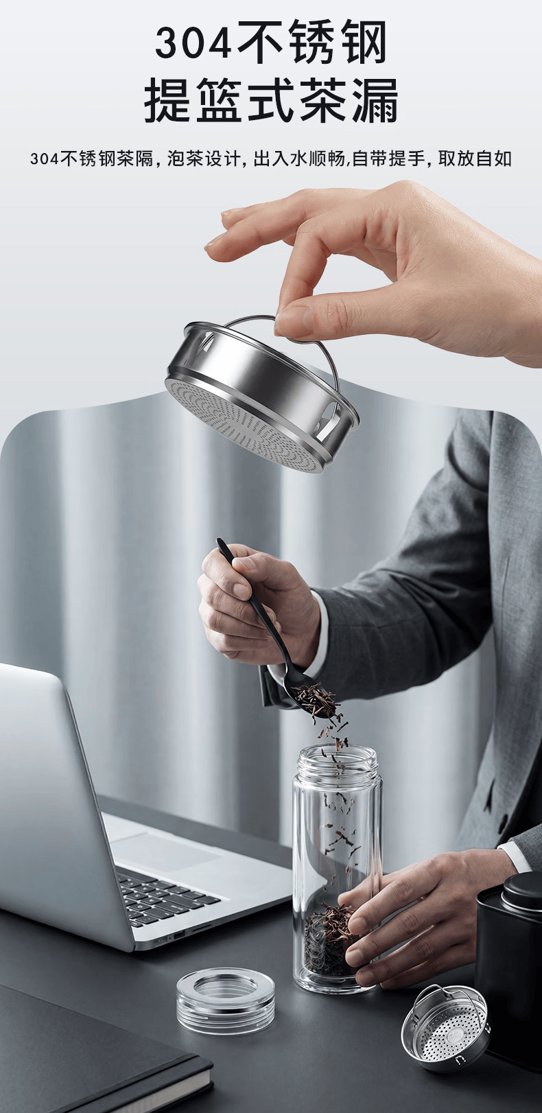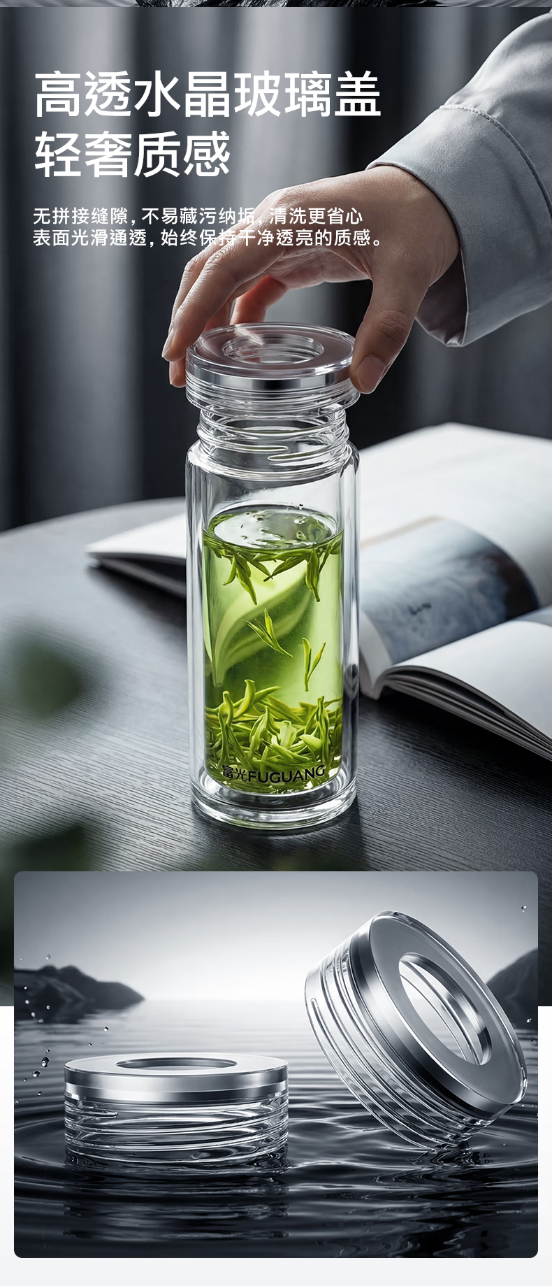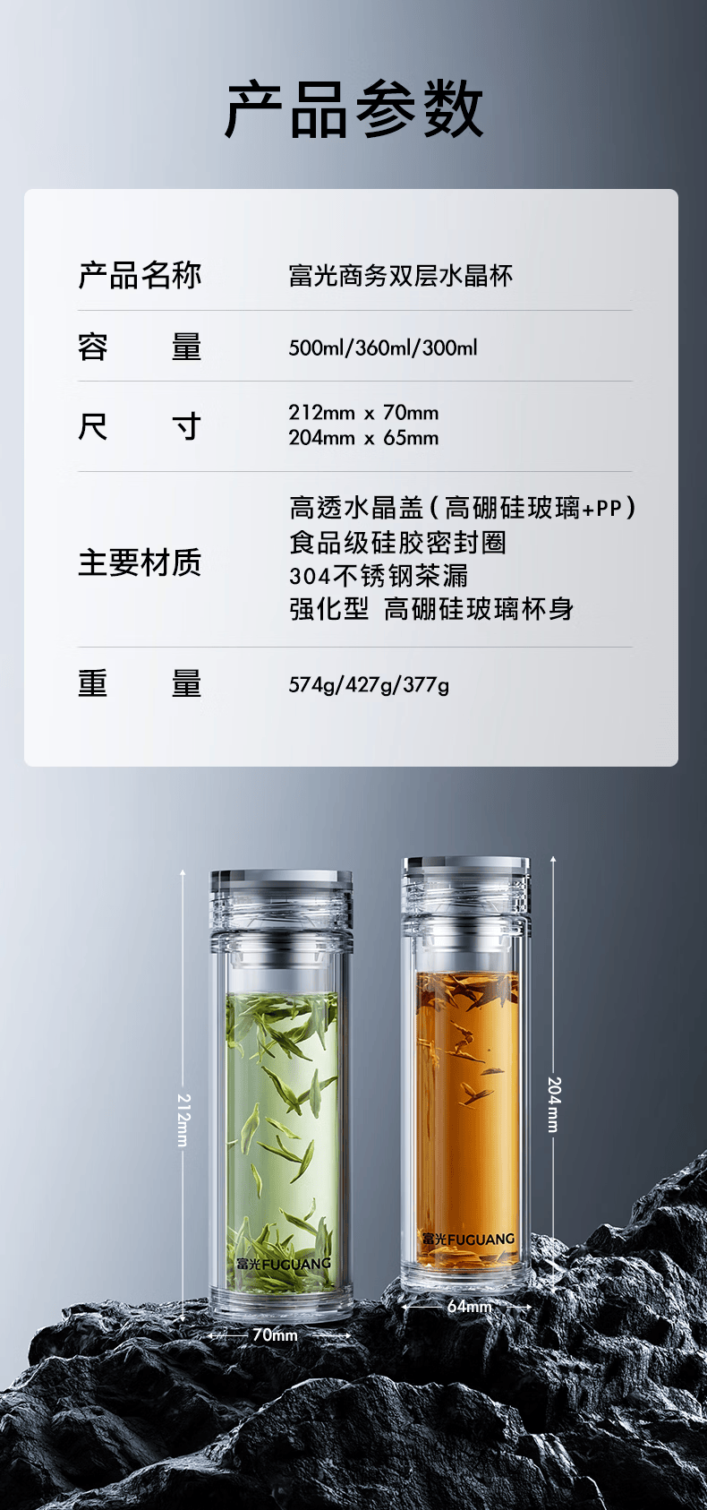 富光玻璃杯 商务轻奢双层高硼硅玻璃水杯 车载便携茶杯茶水分离泡茶杯 双层高透轻奢商务 400ML