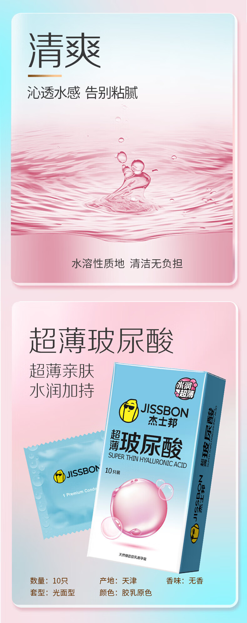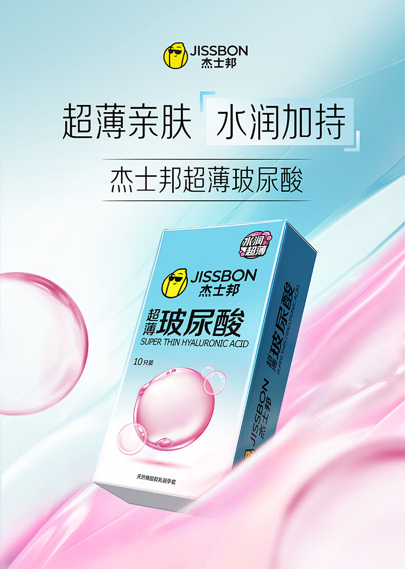 杰士邦超润薄玻尿酸避孕套10只装男专用持久防早泄敏感延时官方正品高端 超润玻尿酸【水润又持久】10只 1盒装