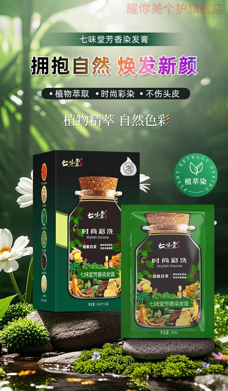鹿角卉首迷植萃染发剂遮白发亲肤植萃健康盖白发不掉色在家染时尚彩洗泡 栗棕色*1 官方直售
