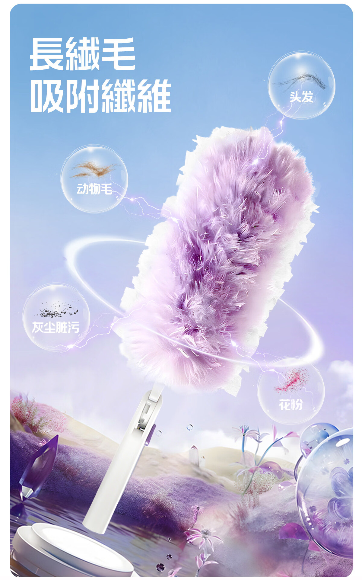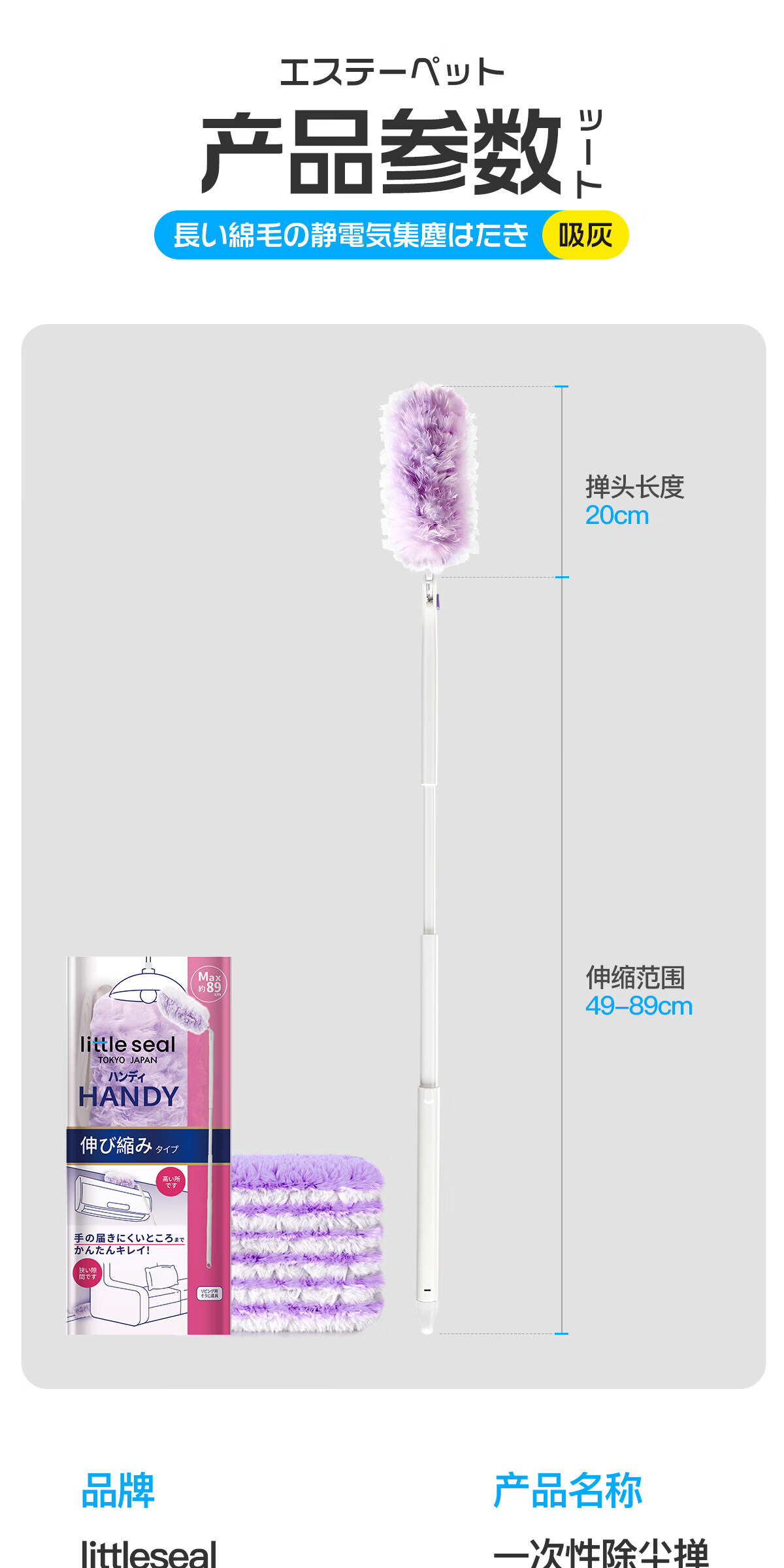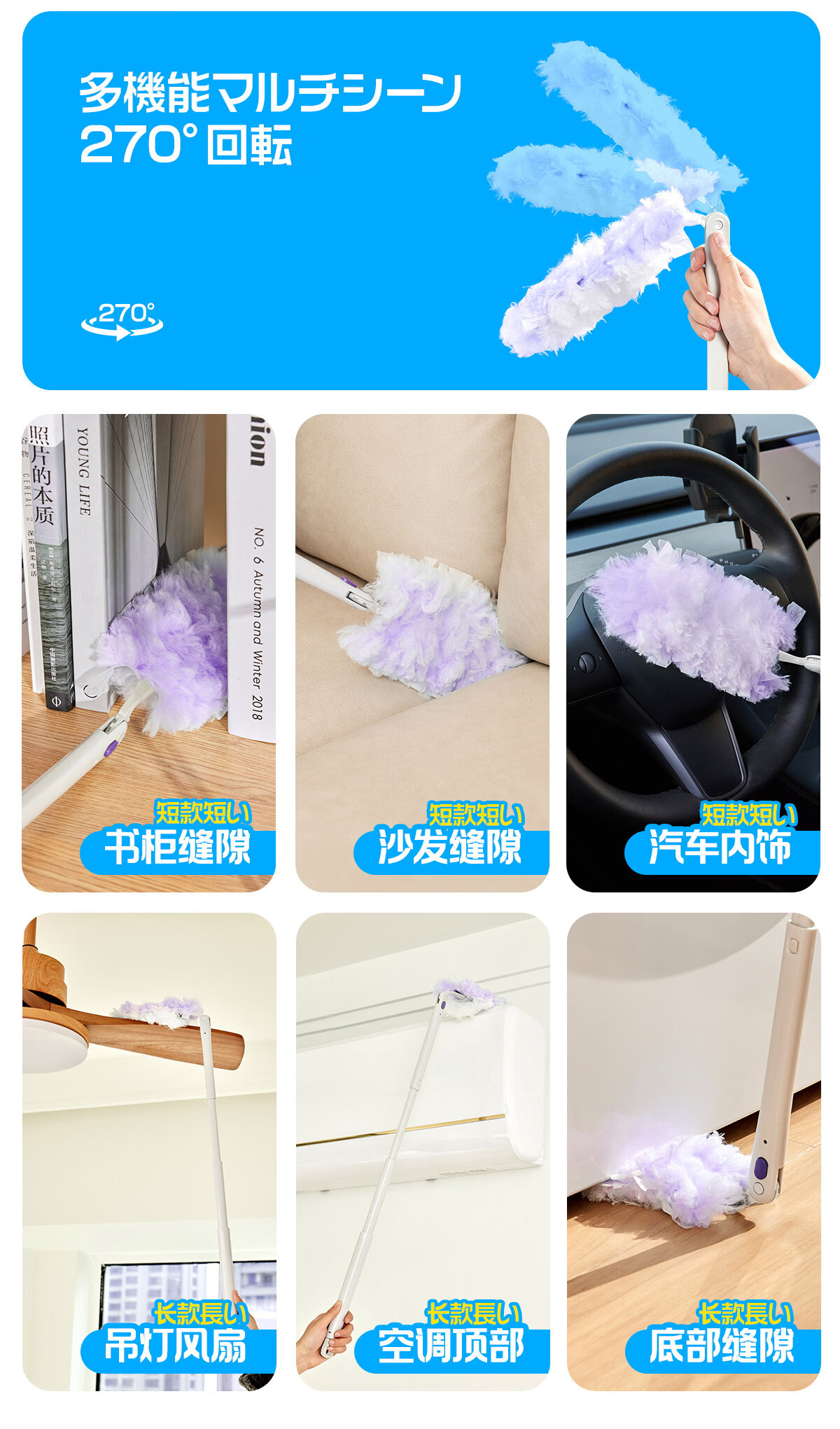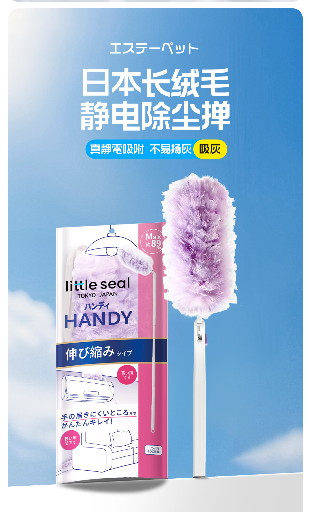 Little seal日本静电除尘掸子长柄可伸缩鸡毛掸子除尘扫灰汽车灰尘吸附神器 新升级静电除尘掸-紫【长柄+短柄+共10替换头】