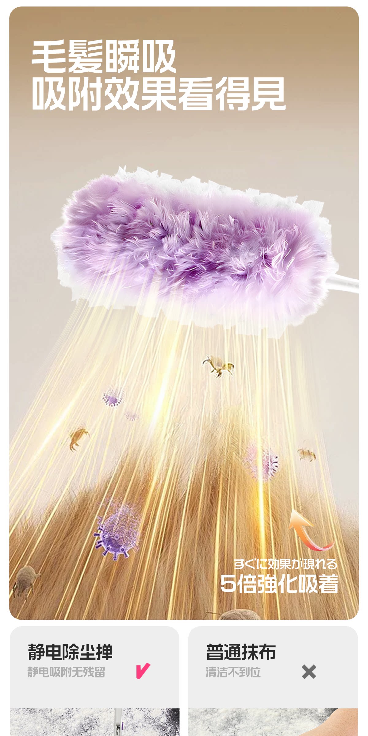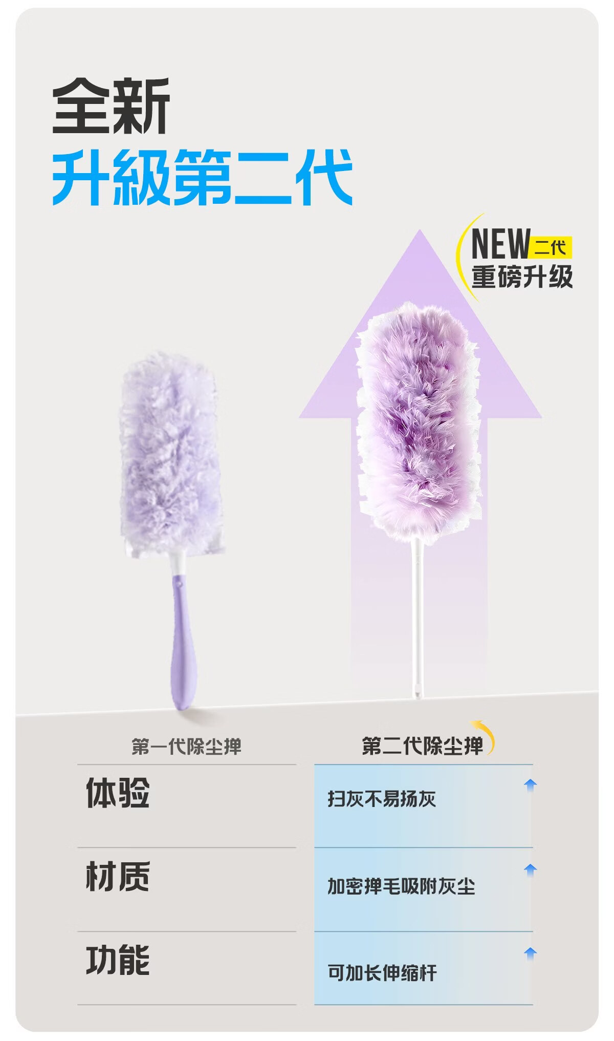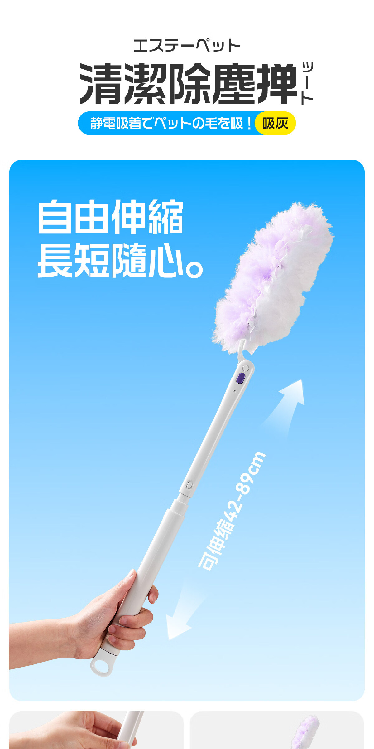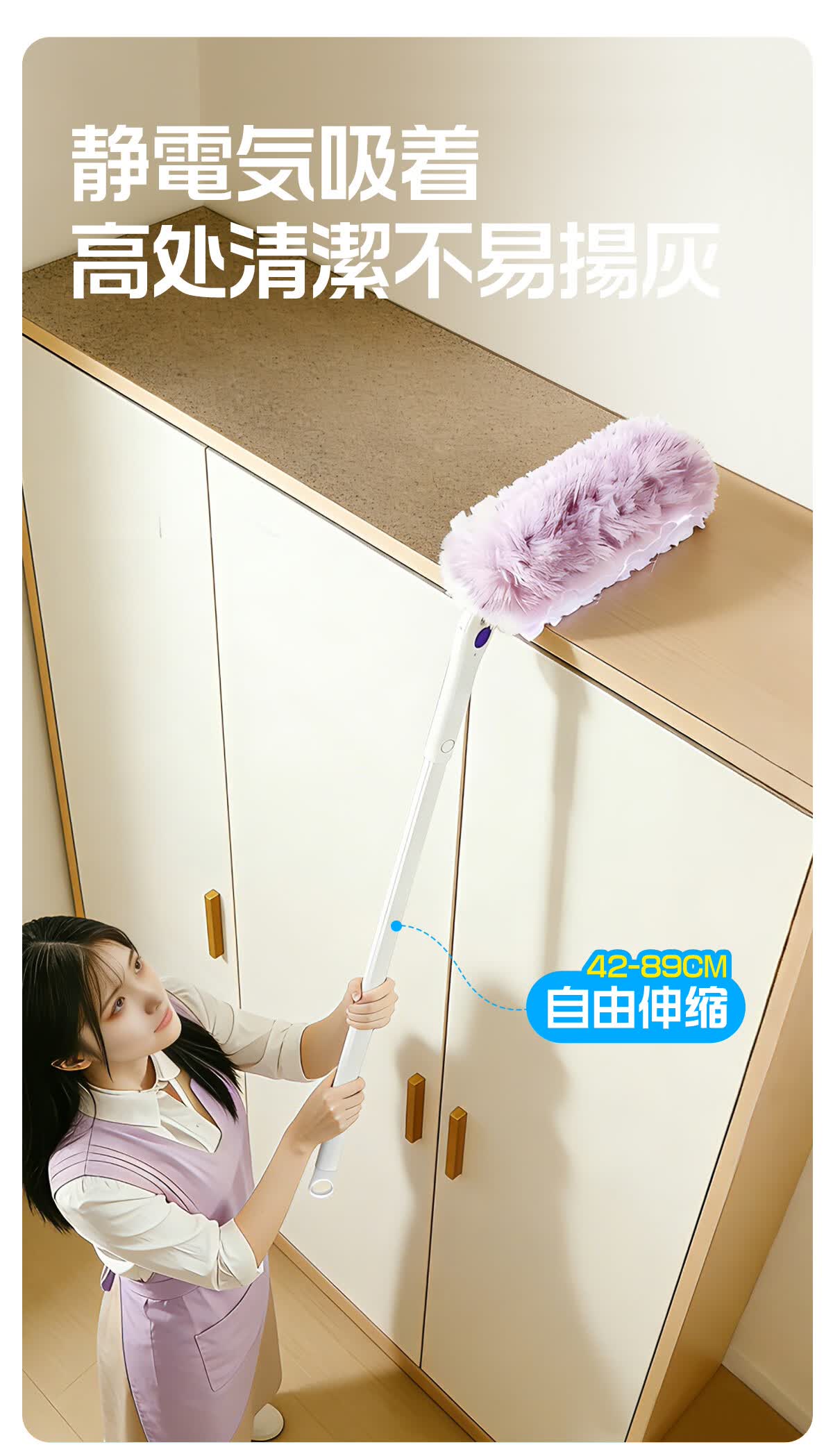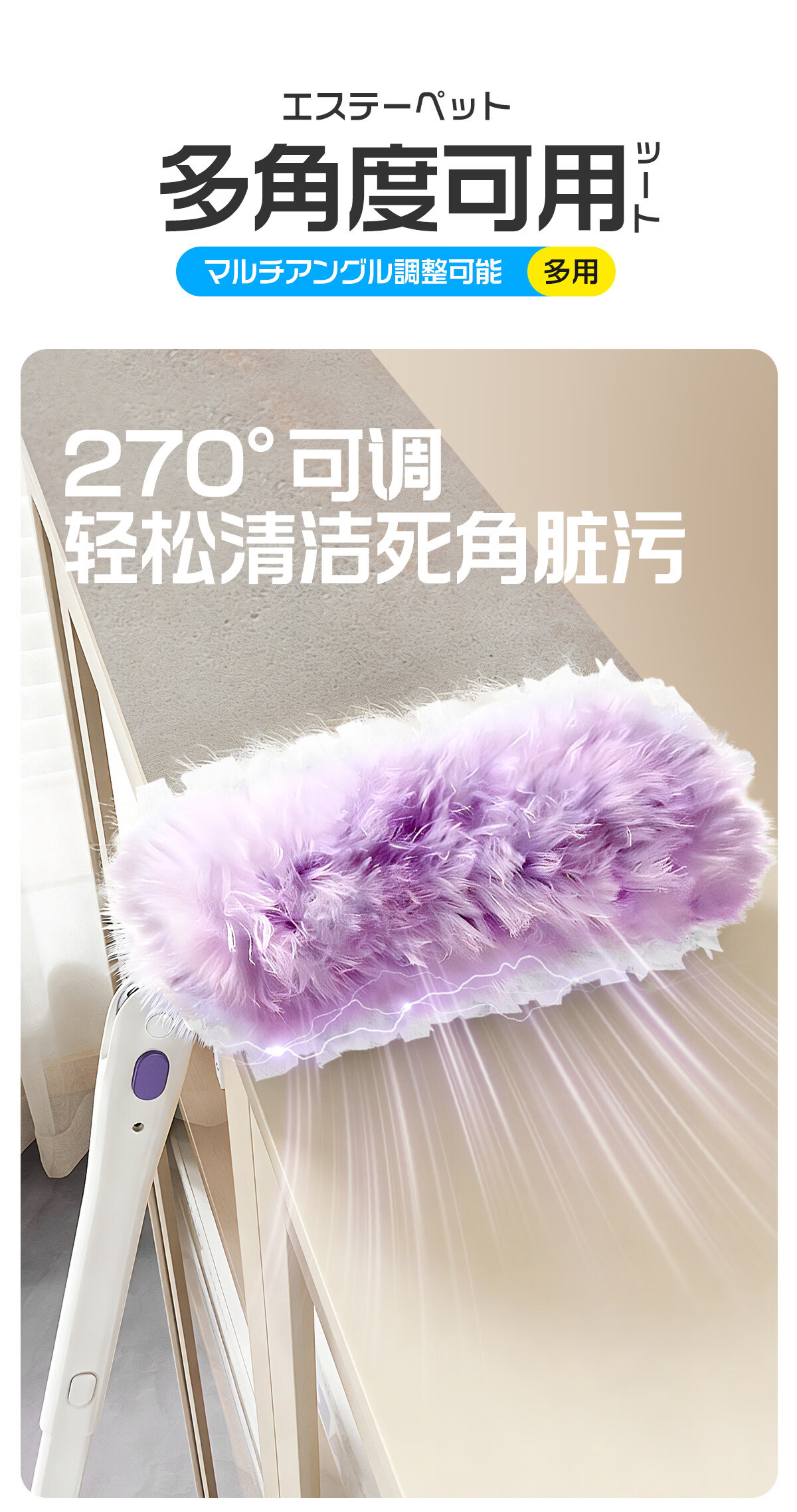 Little seal日本静电除尘掸子长柄可伸缩鸡毛掸子除尘扫灰汽车灰尘吸附神器 新升级静电除尘掸-紫【长柄+短柄+共10替换头】