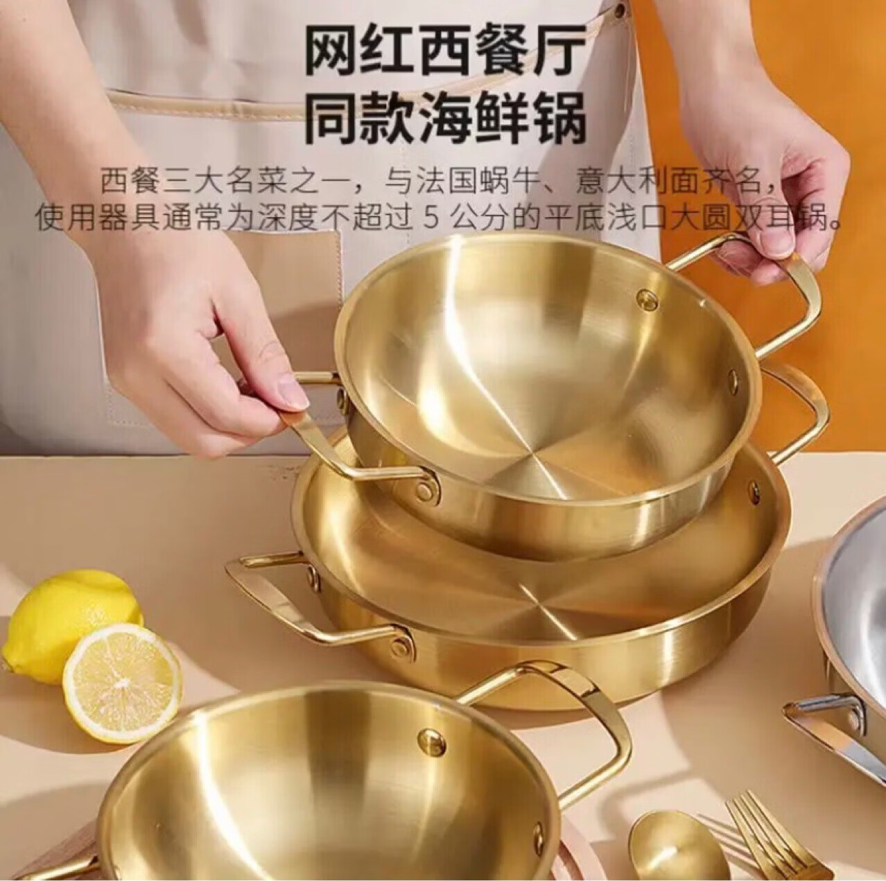 【甄选厂家】泡面锅小煮锅家用不锈钢双耳火锅螺蛳粉汤锅韩式拉面 质感银 20cm