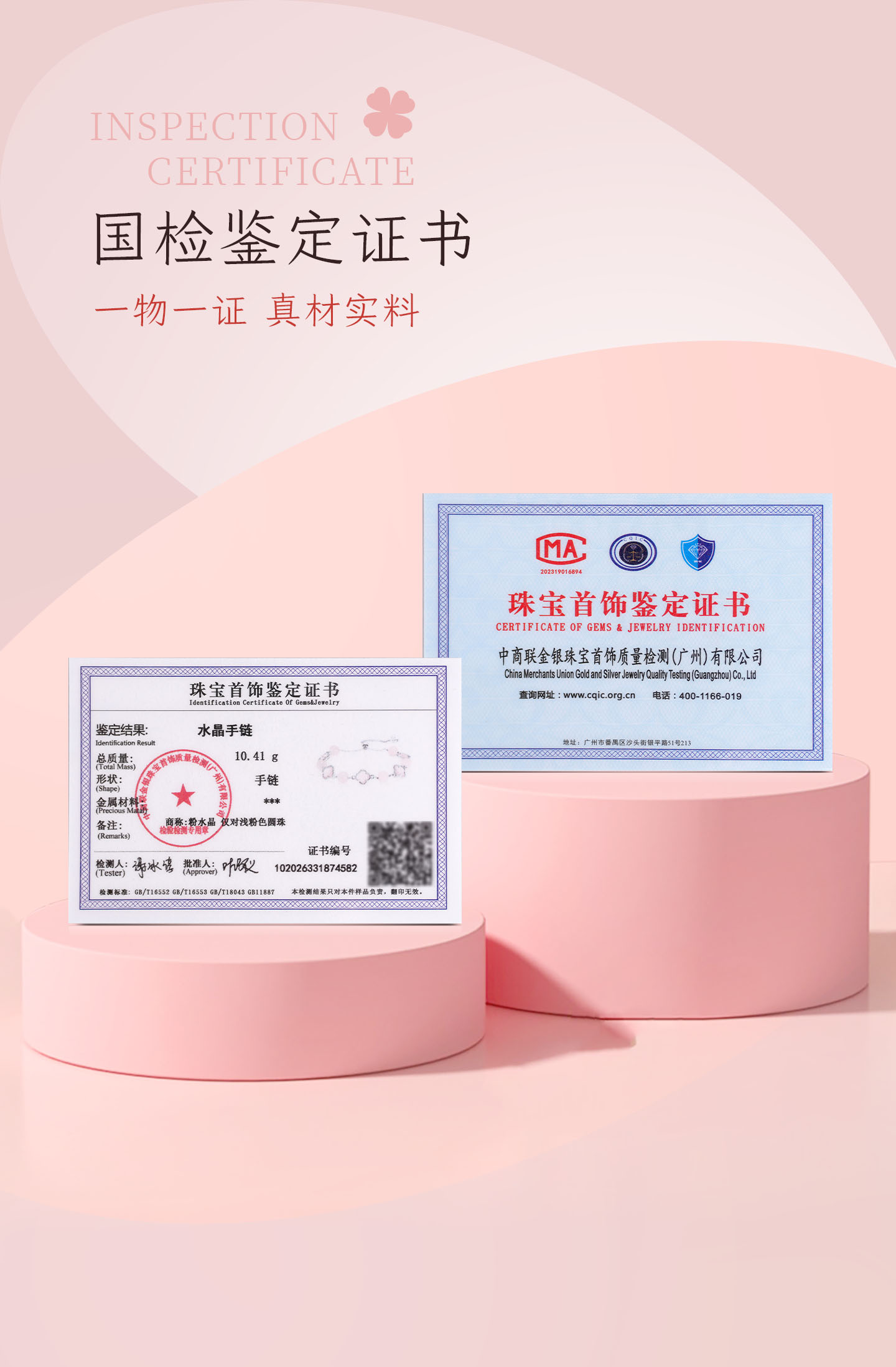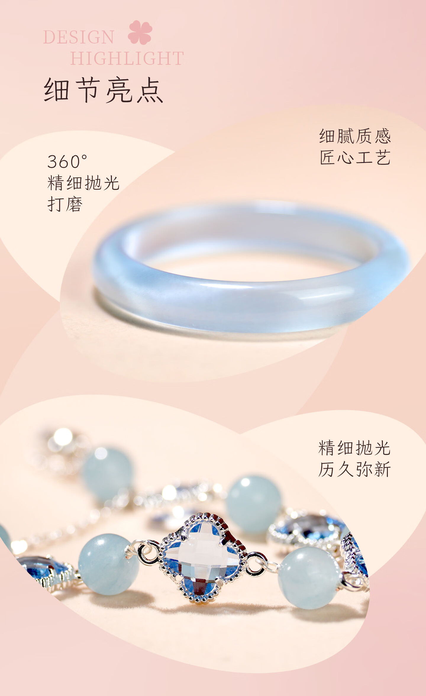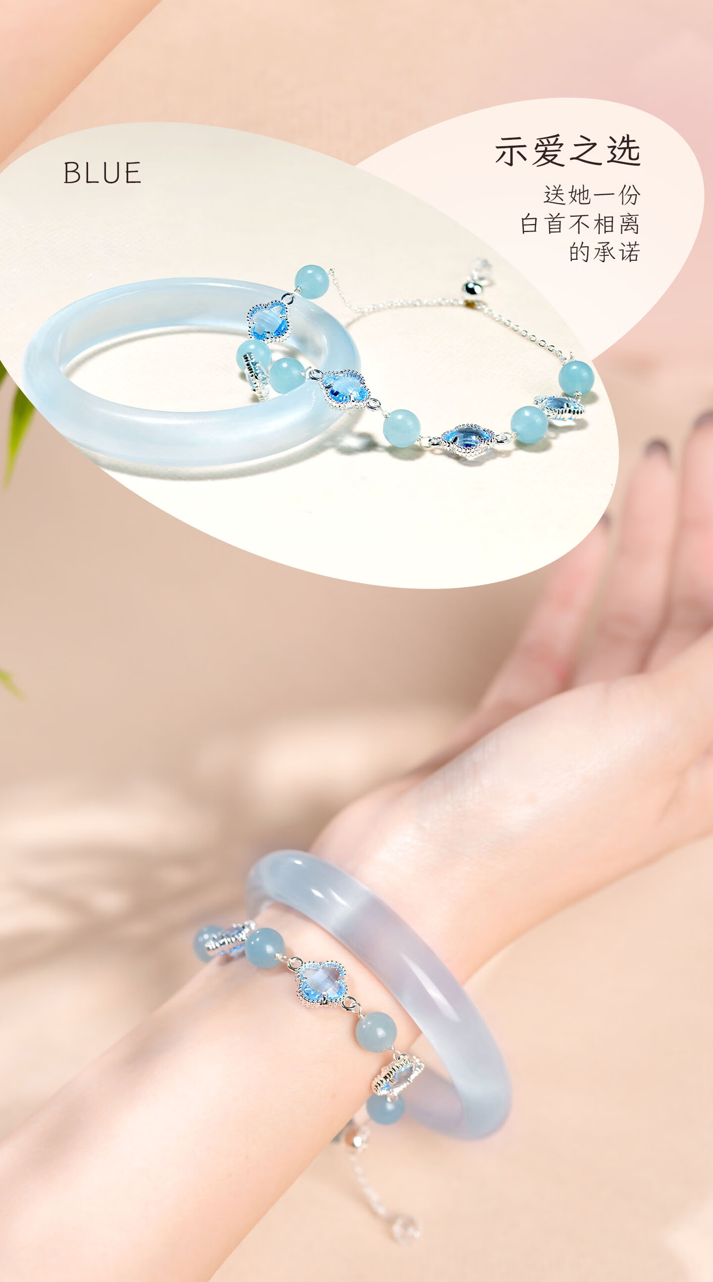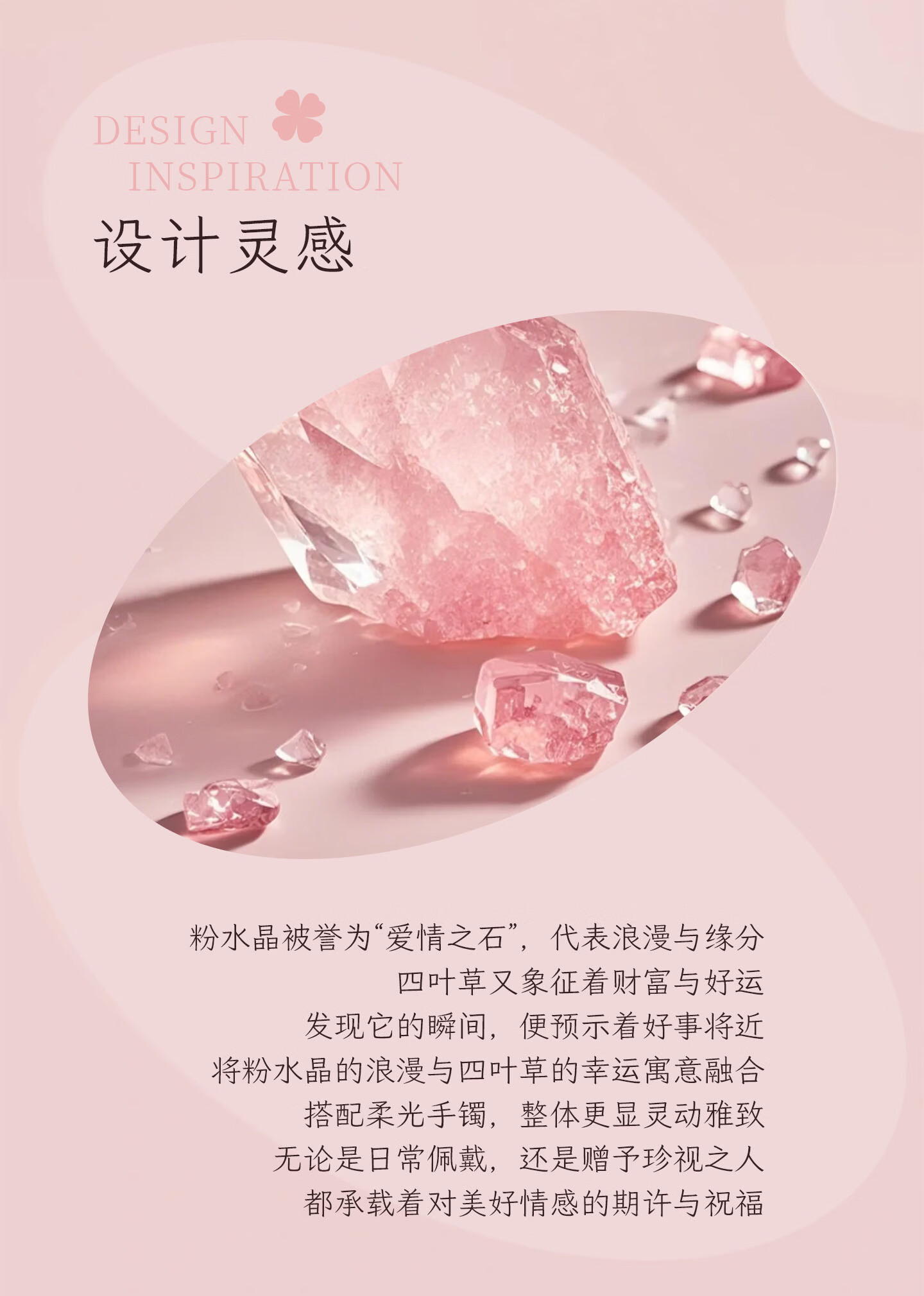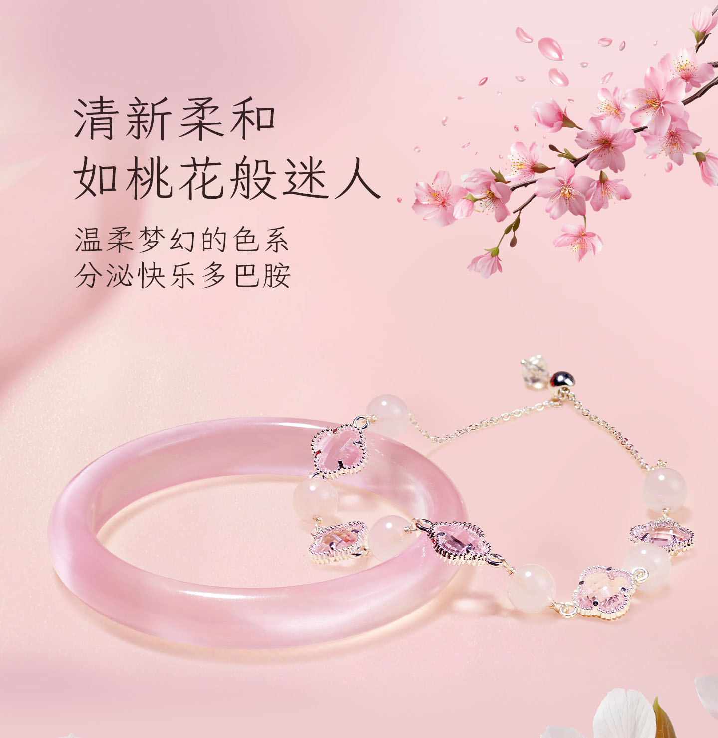 锦福峨眉山粉色水晶四叶草手链手镯可爱款闺蜜同款送女友必备 桃缘双萦镯链组合+鸿运礼盒 54(适合75-85斤)