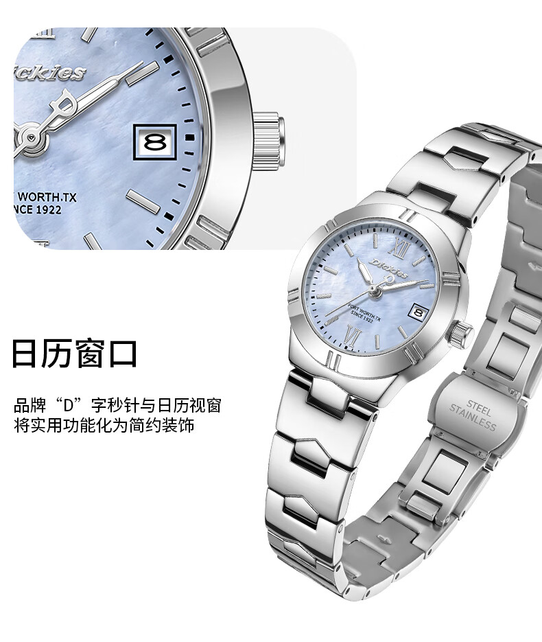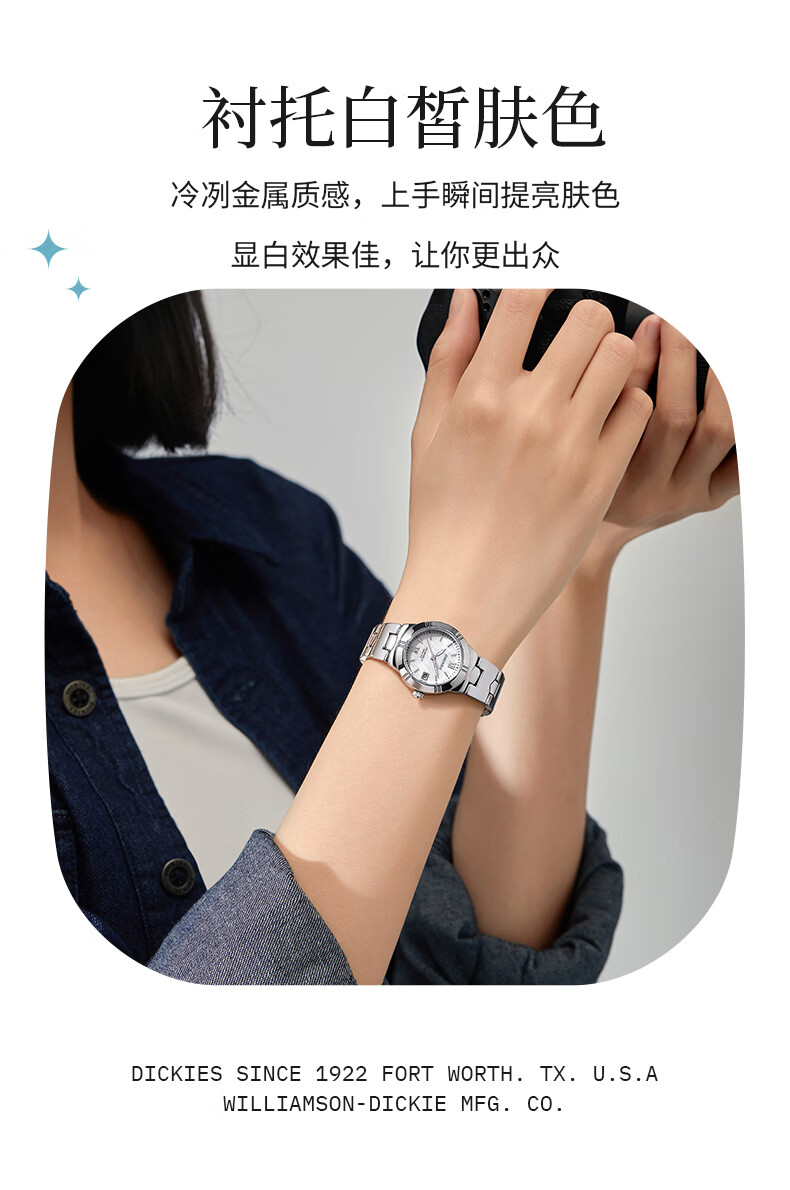 Dickies手表女表时尚百搭石英表新款ins轻奢小众腕表简约女送女生日礼物 250F60LYXCL-775DS-2SSY