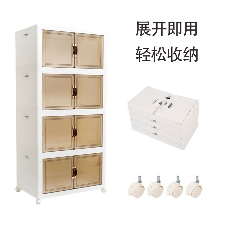 炬意(JY)收纳柜免安装可折叠简易衣柜大容量收纳箱卧室宿舍客厅零食储物柜 加强大号 长50*宽32*高34cm 3层-带可拆卸轮