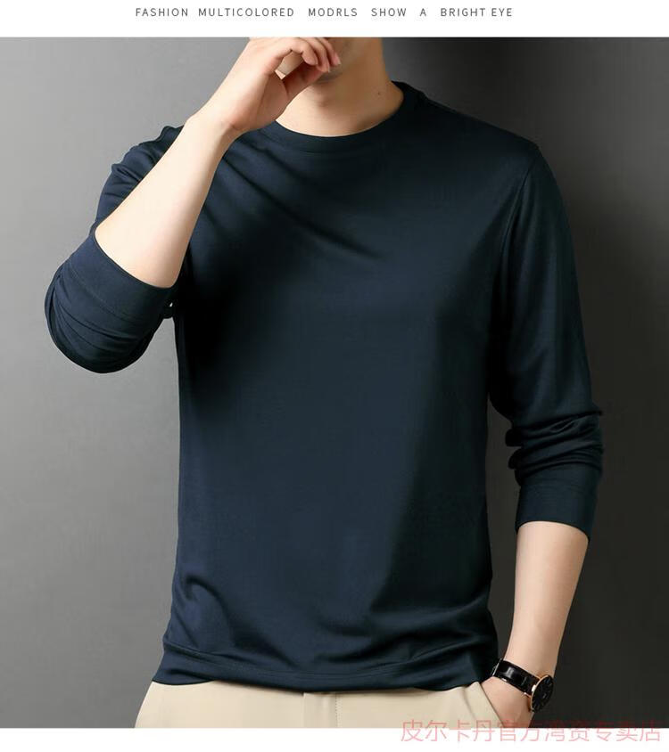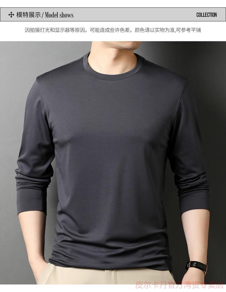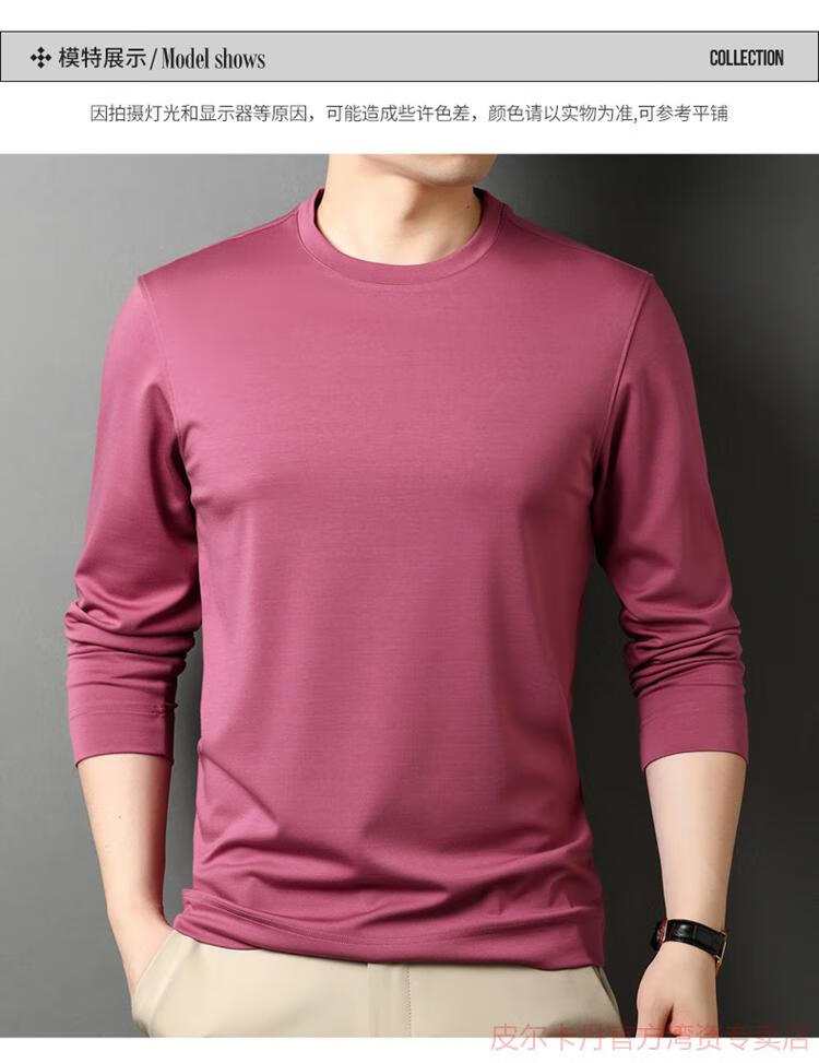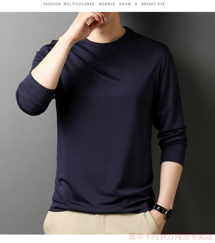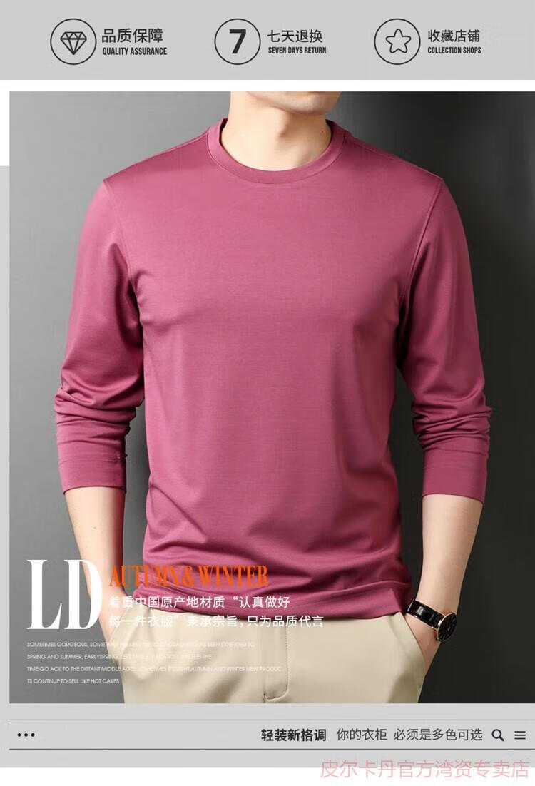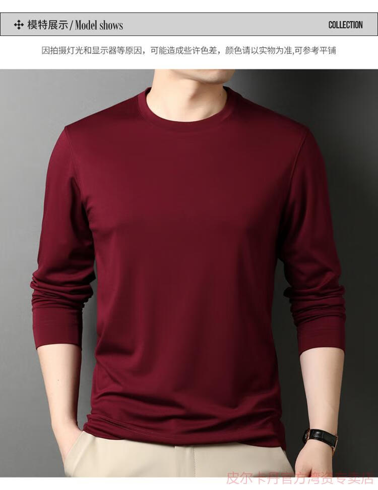 皮尔卡丹(pierre cardin)高端桑蚕丝长袖T恤男春秋新款体恤衫圆领套头打底衫上衣薄款 绣红色 190/4XL