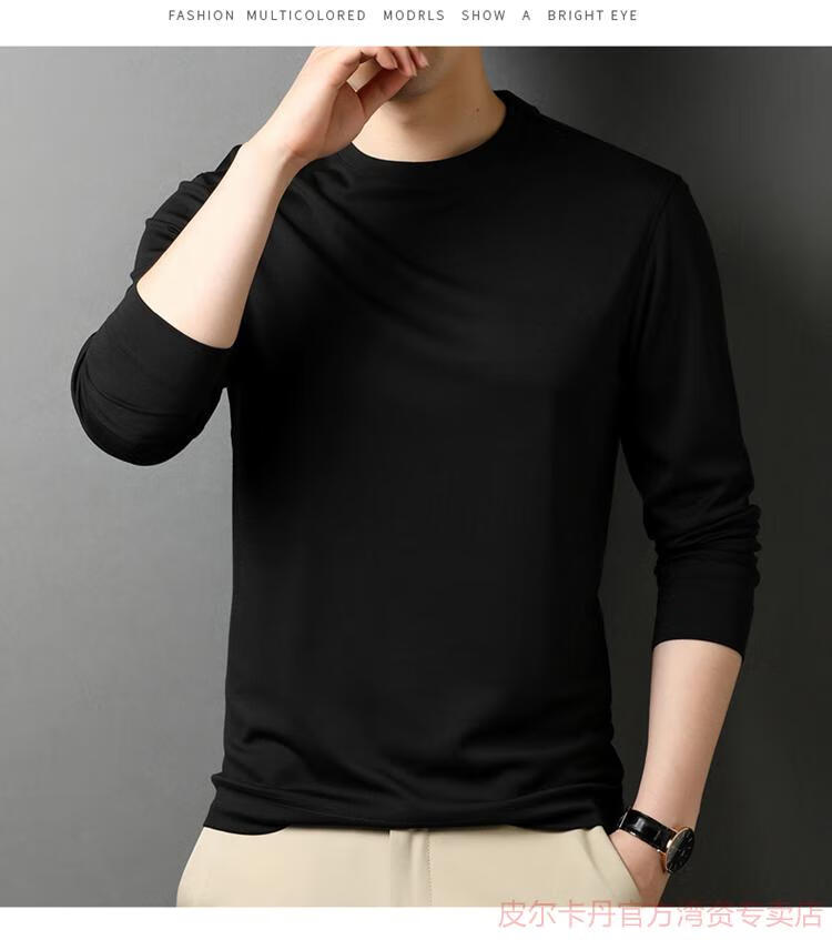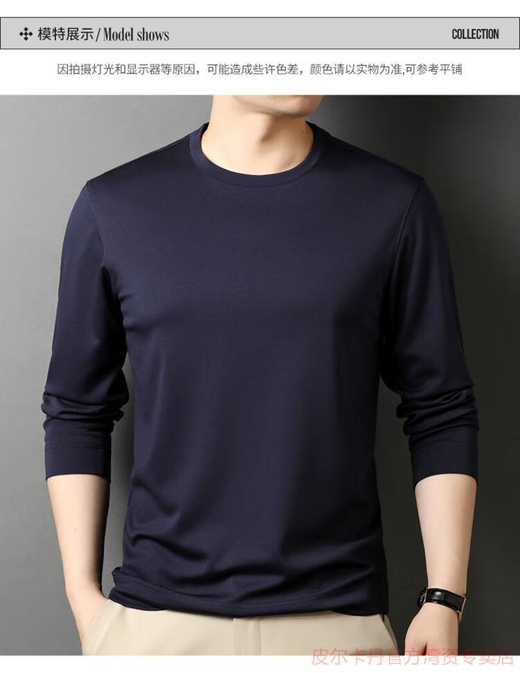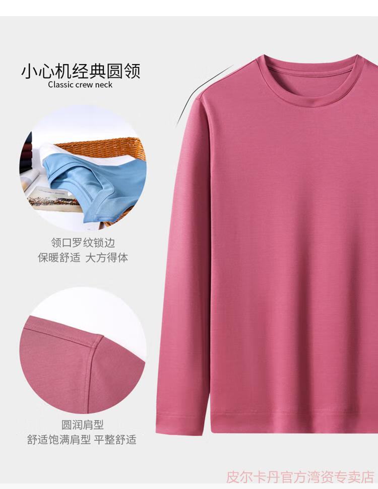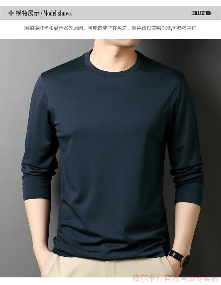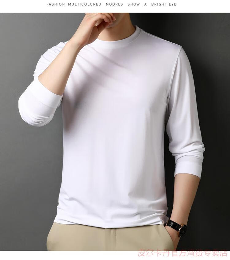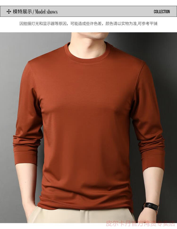 皮尔卡丹(pierre cardin)高端桑蚕丝长袖T恤男春秋新款体恤衫圆领套头打底衫上衣薄款 绣红色 190/4XL