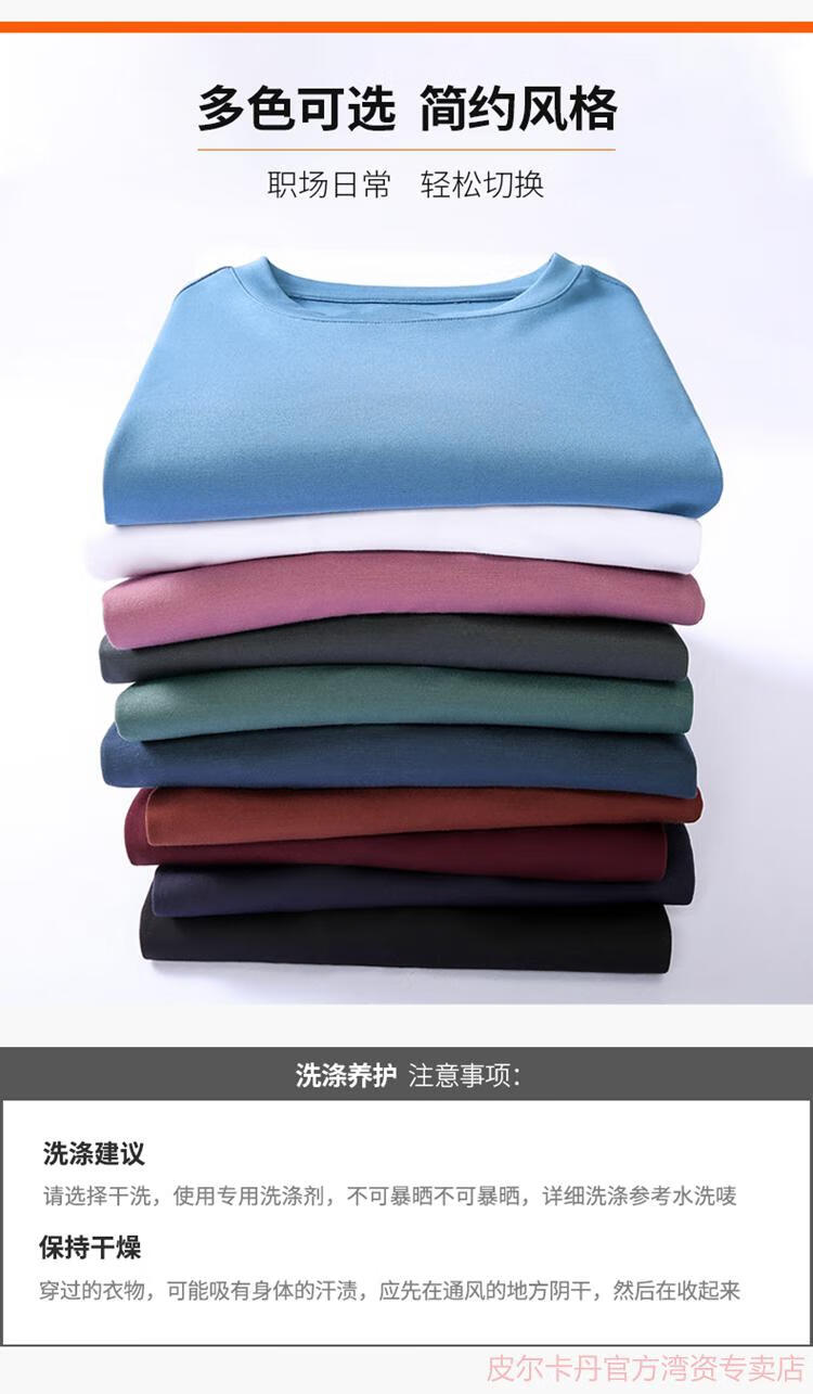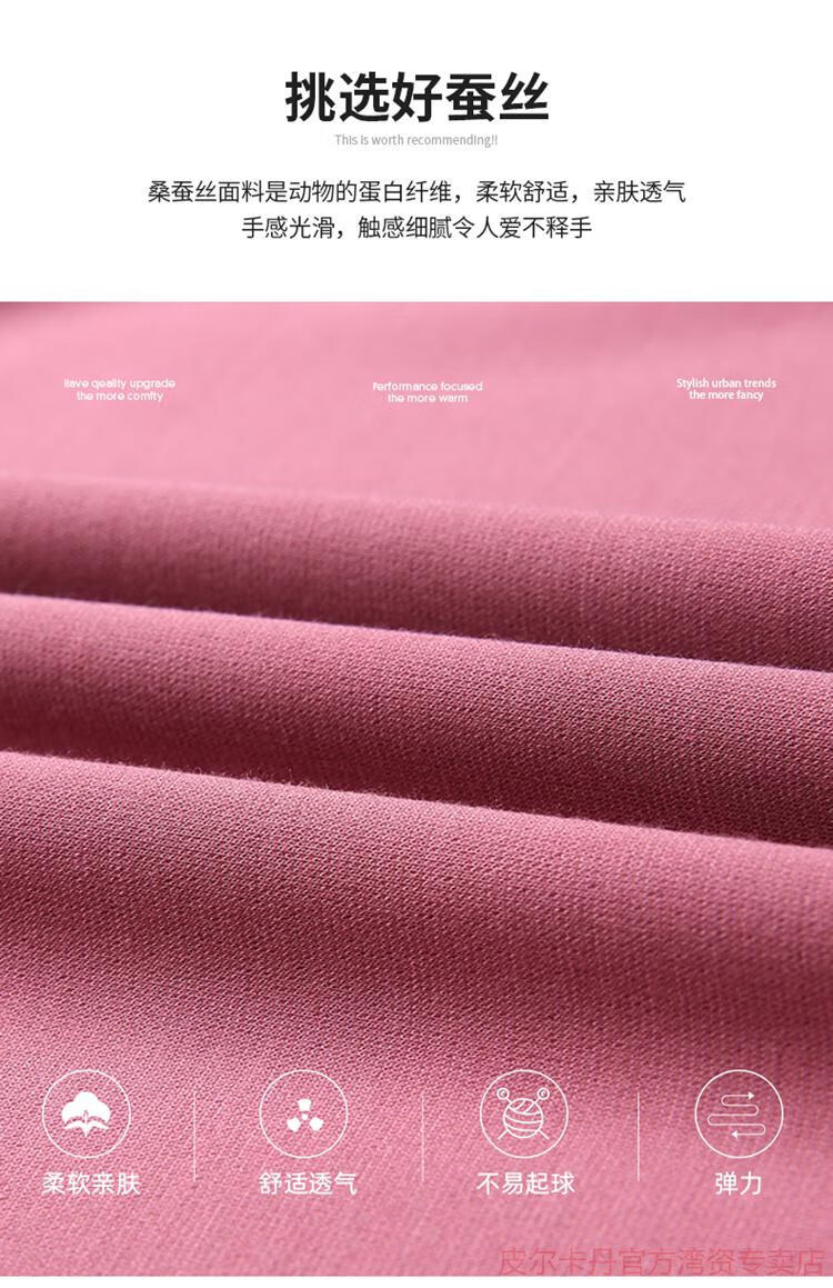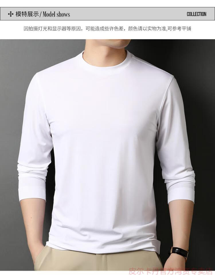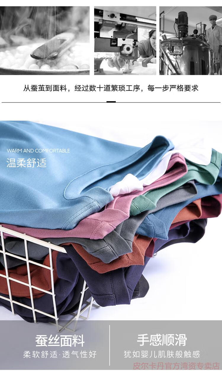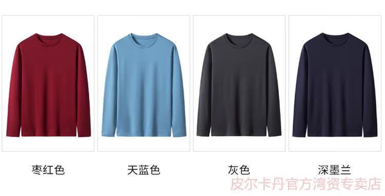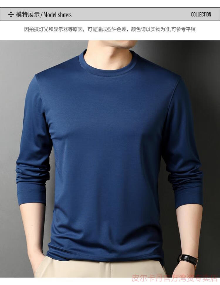 皮尔卡丹(pierre cardin)高端桑蚕丝长袖T恤男春秋新款体恤衫圆领套头打底衫上衣薄款 绣红色 190/4XL