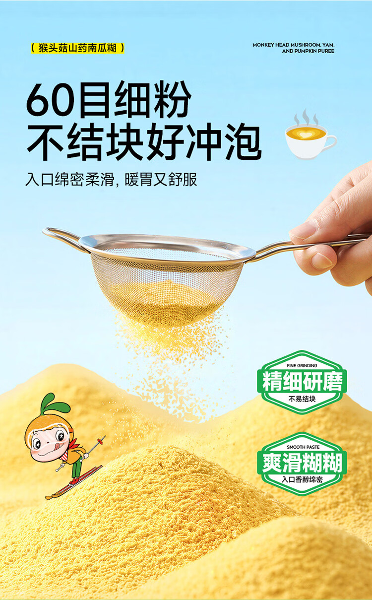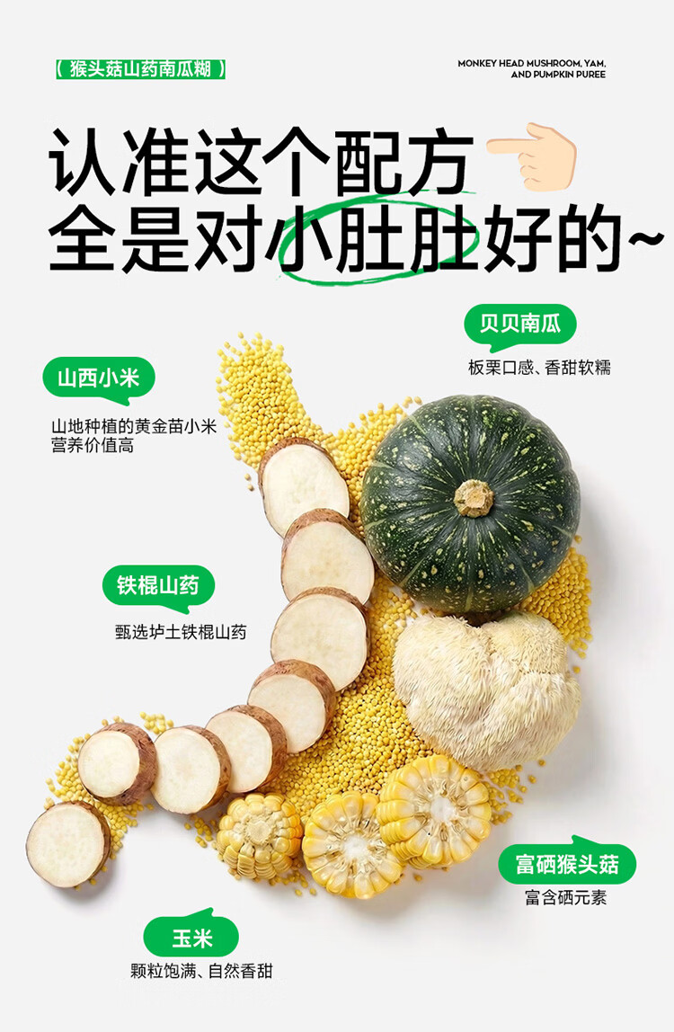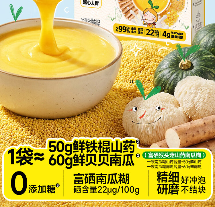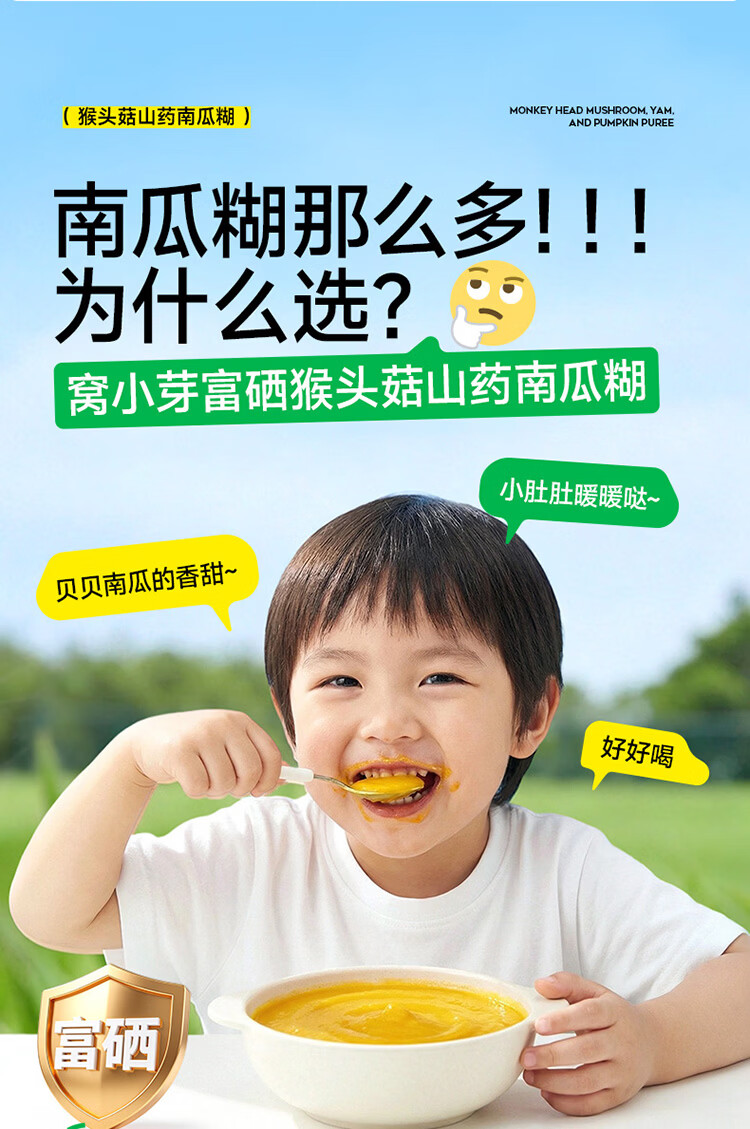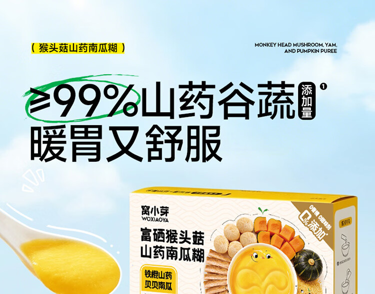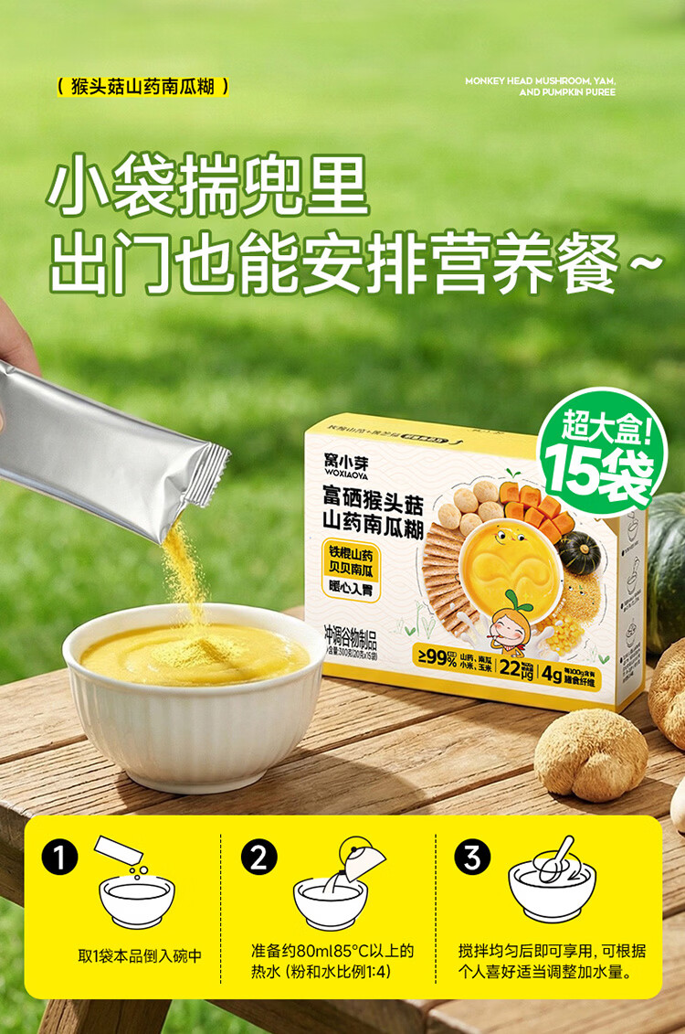 窝小芽富硒猴头菇山药南瓜糊0添加白砂糖冲泡速食儿童早餐享宝宝辅食谱 【暖胃又舒服】猴头菇山药南瓜糊600g(30袋)