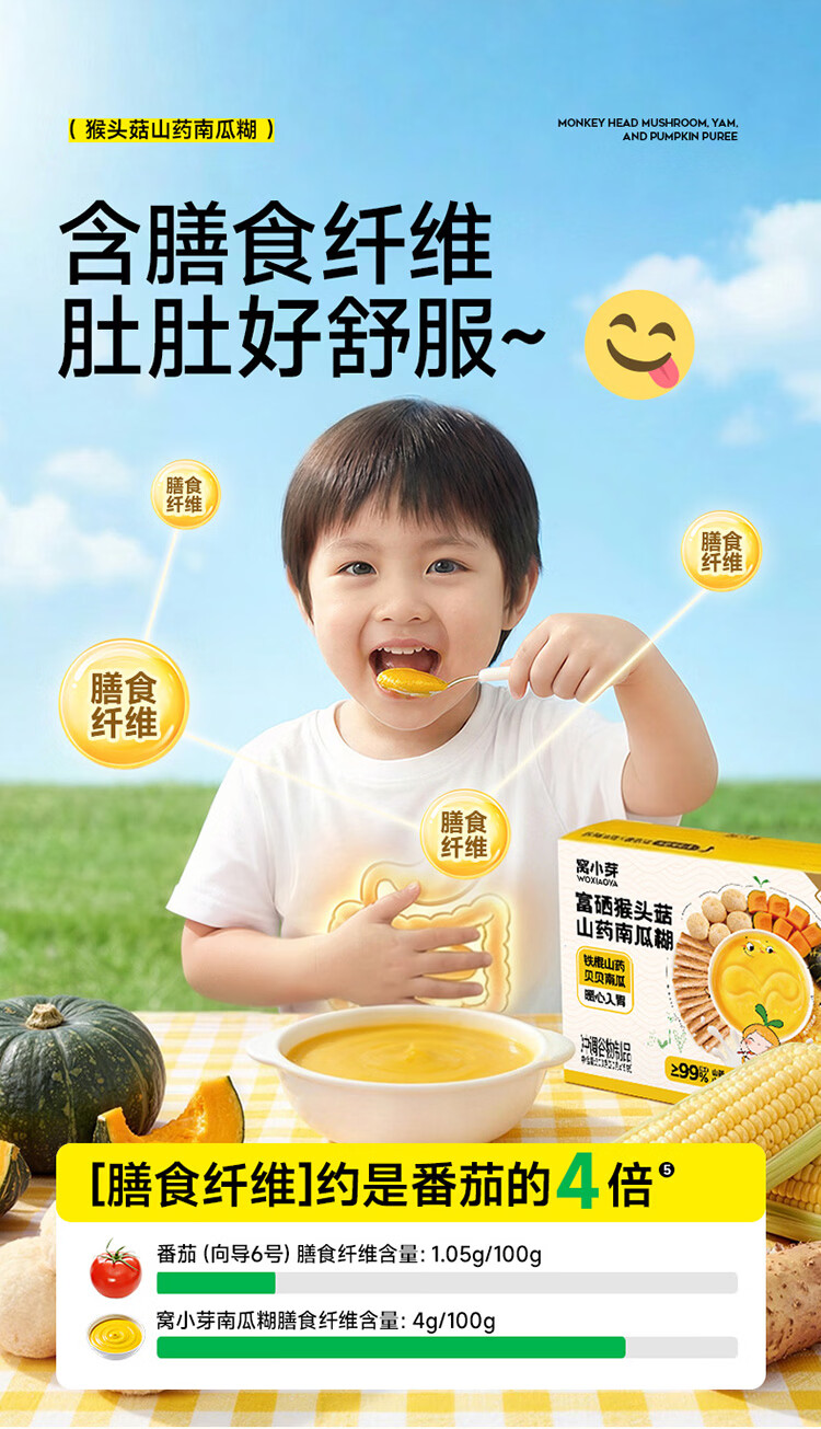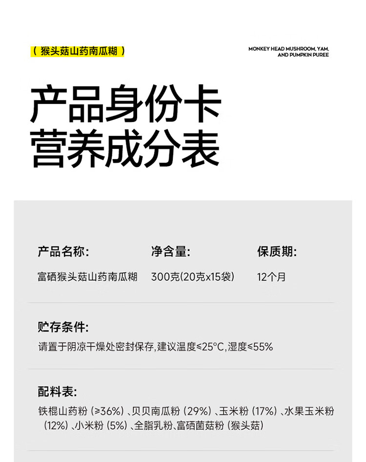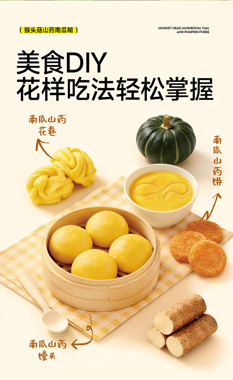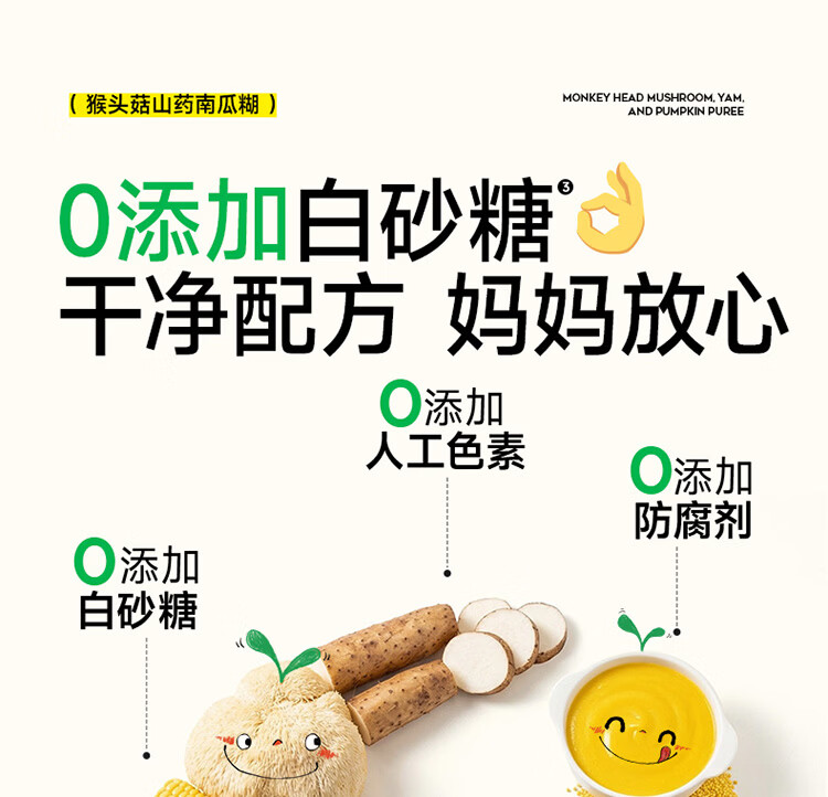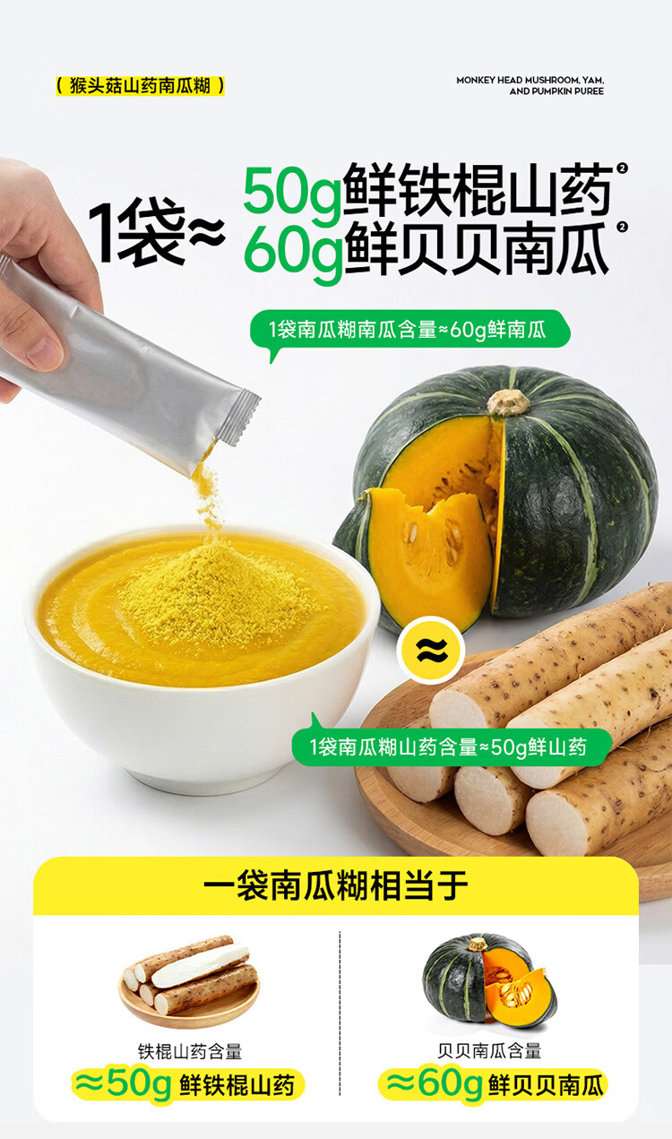 窝小芽富硒猴头菇山药南瓜糊0添加白砂糖冲泡速食儿童早餐享宝宝辅食谱 【暖胃又舒服】猴头菇山药南瓜糊600g(30袋)