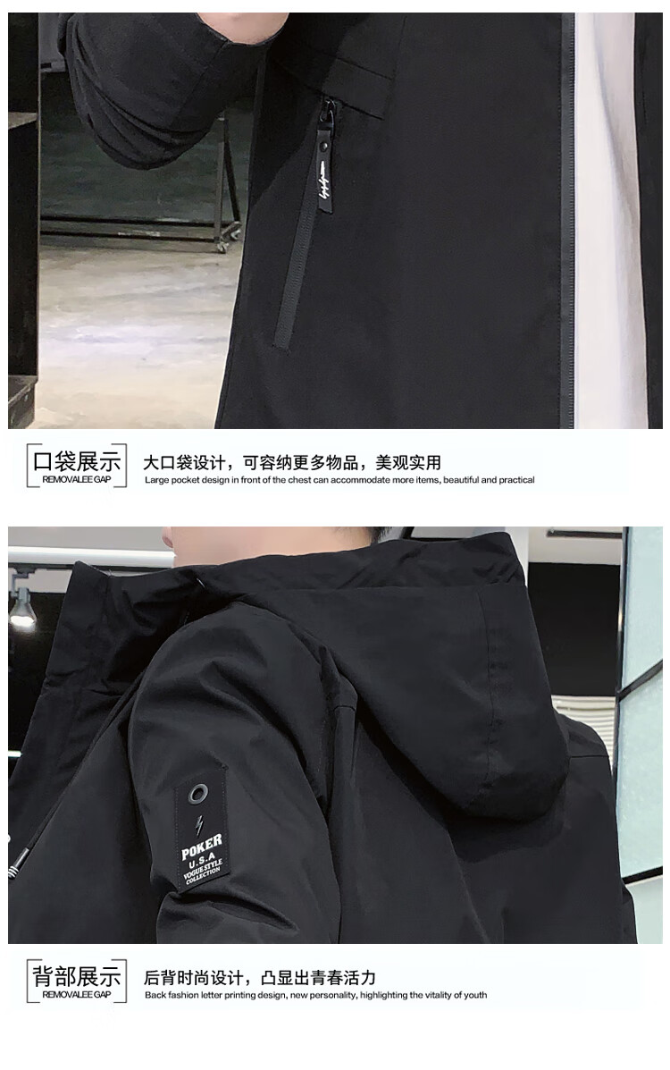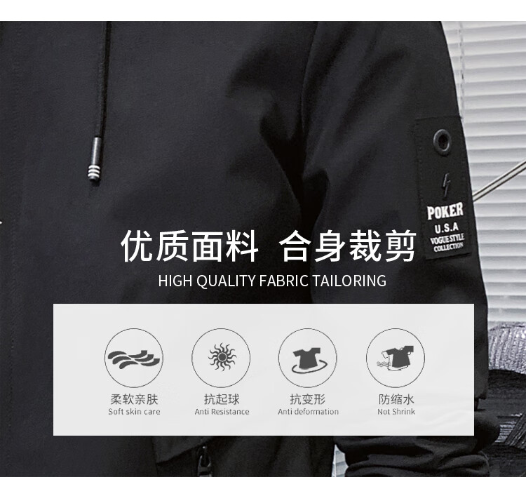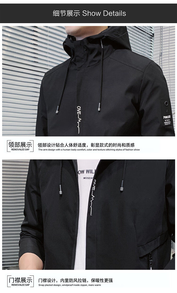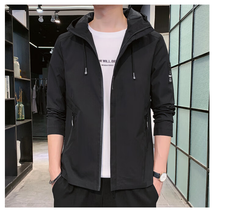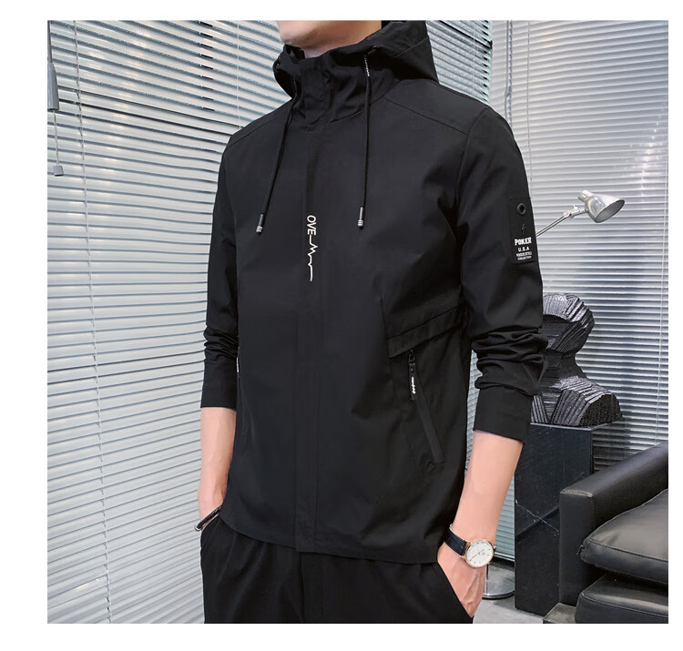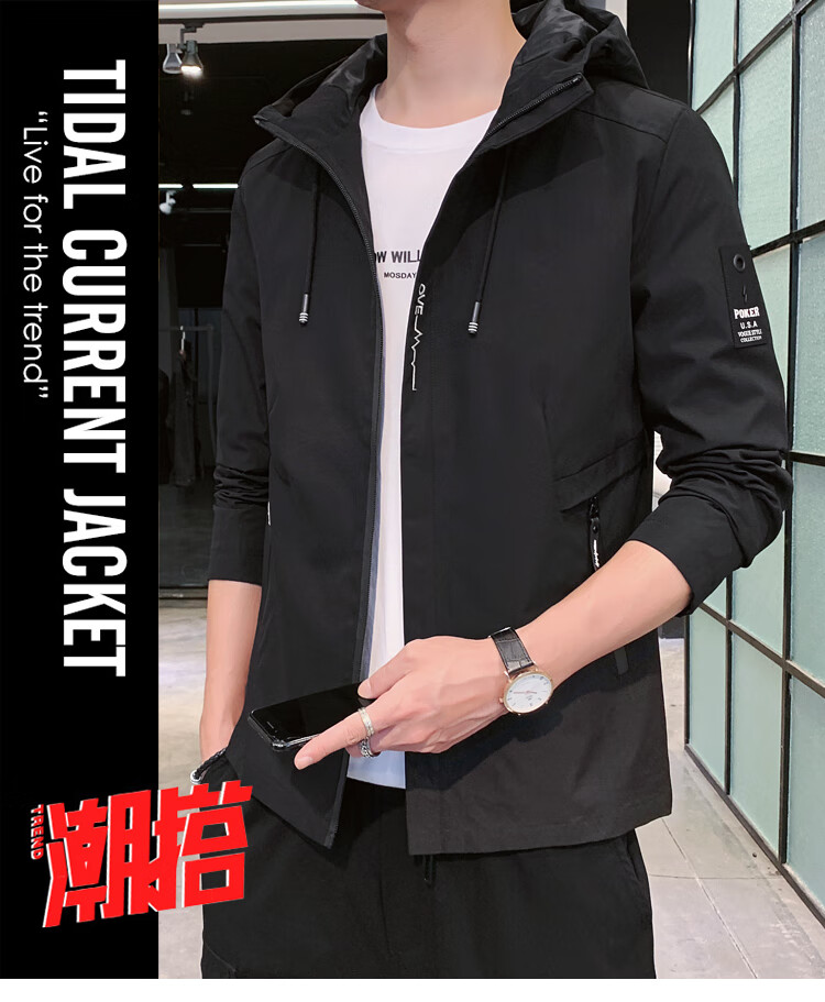 花花公子(PLAYBOY)韩版休闲男款夹克2025春秋新款百搭潮流风衣冬季加绒加厚外套男装 黑色 XL