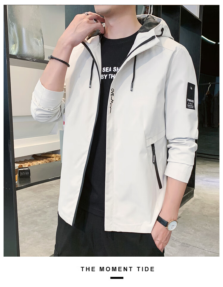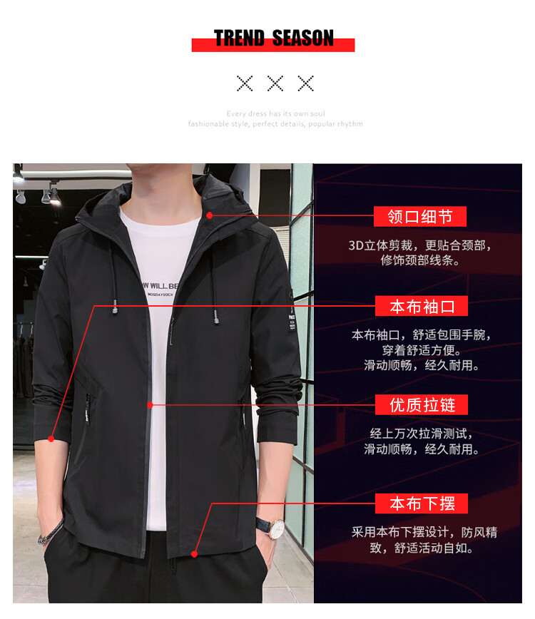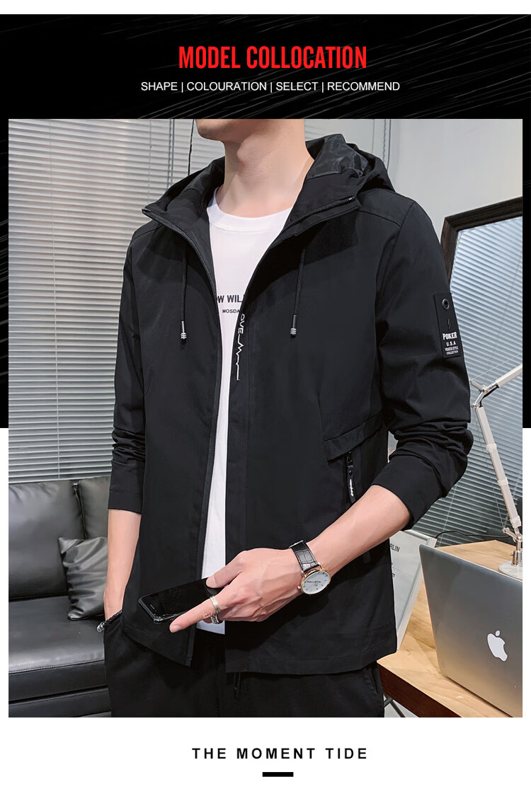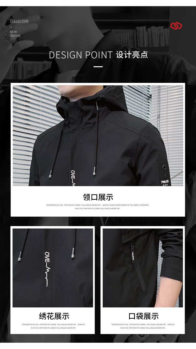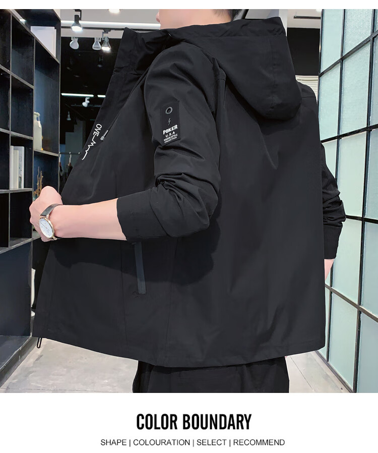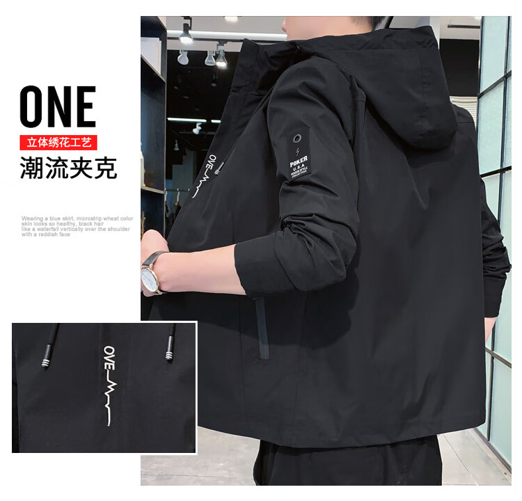 花花公子(PLAYBOY)韩版休闲男款夹克2025春秋新款百搭潮流风衣冬季加绒加厚外套男装 黑色 XL