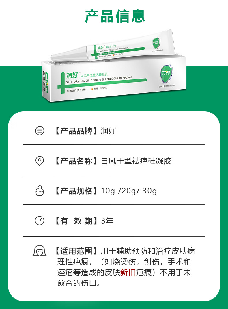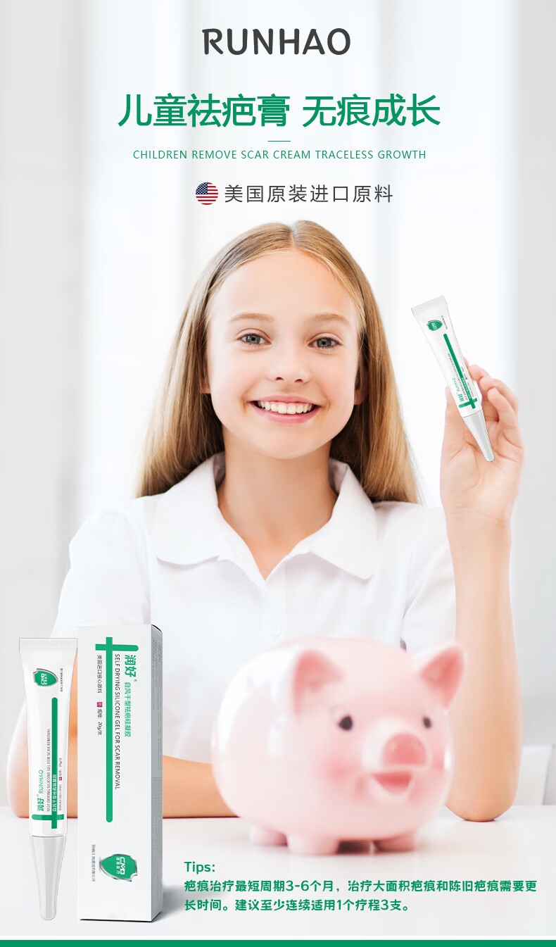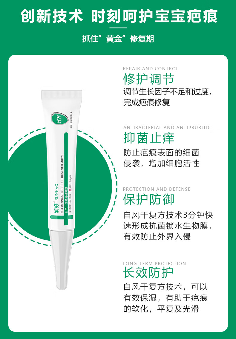 润好儿童自风干型祛疤硅凝胶烧烫伤手术缝合磕创伤疤痕修复祛疤膏去疤 儿童款20g/1支体验装【小面积轻微创面新疤推荐】