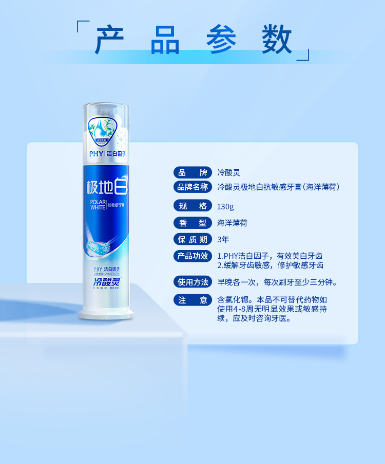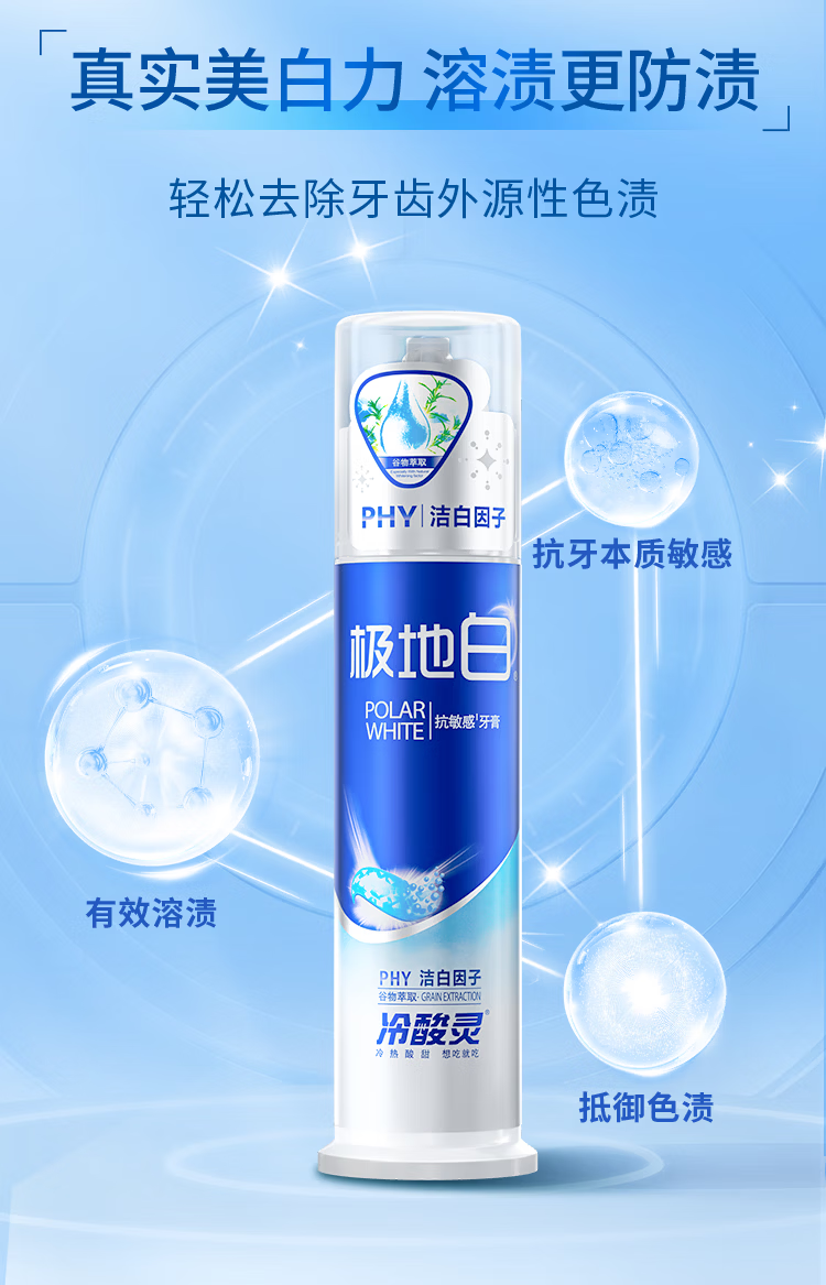 冷酸灵极地白泵式牙膏抗敏感美白牙齿 抗敏感家庭组合装 薄荷香 极地白组合套装5支620g