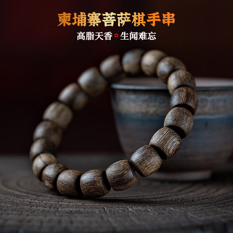 九刀匠天然柬埔寨菩萨棋沉香手串真品沉水级奇楠老型桶珠女男款佛珠手链 99分沉水 约11*10mm*19颗*13g