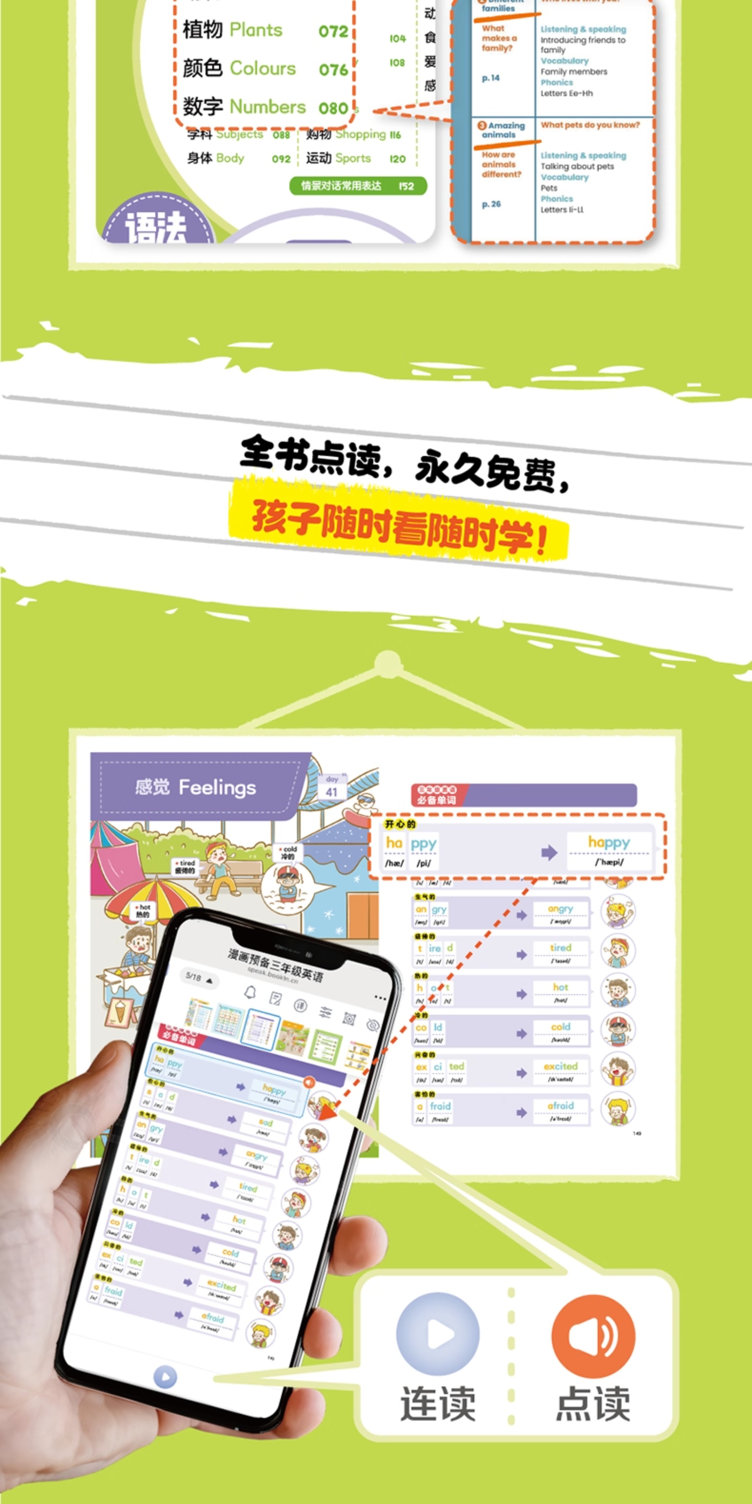 开心漫画预备三年级英语覆盖人教译林各版本一二三年级上下册新教材2025幼小衔接英语零基础早入门启蒙扫码点读发声书同步练习 漫画预备三年级英语 无规格