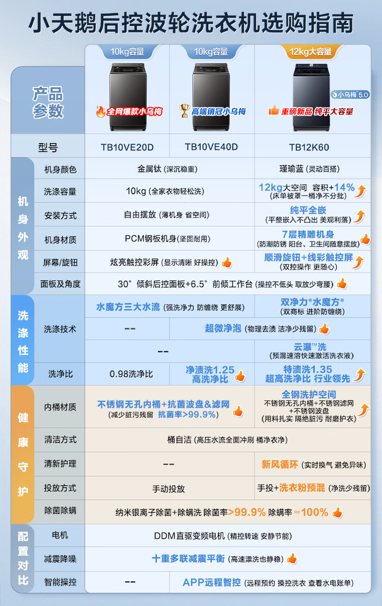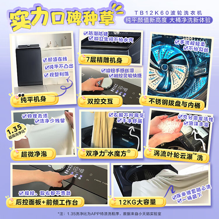 小天鹅(LittleSwan)小乌梅5.0 波轮洗衣机全自动家用 12KG大容量纯平 超微净泡 TB12K60 以旧换新 国家补贴 京东自营
