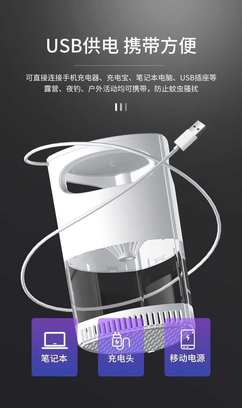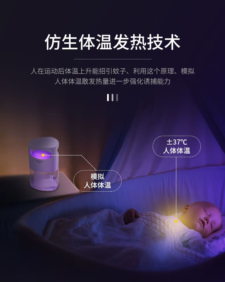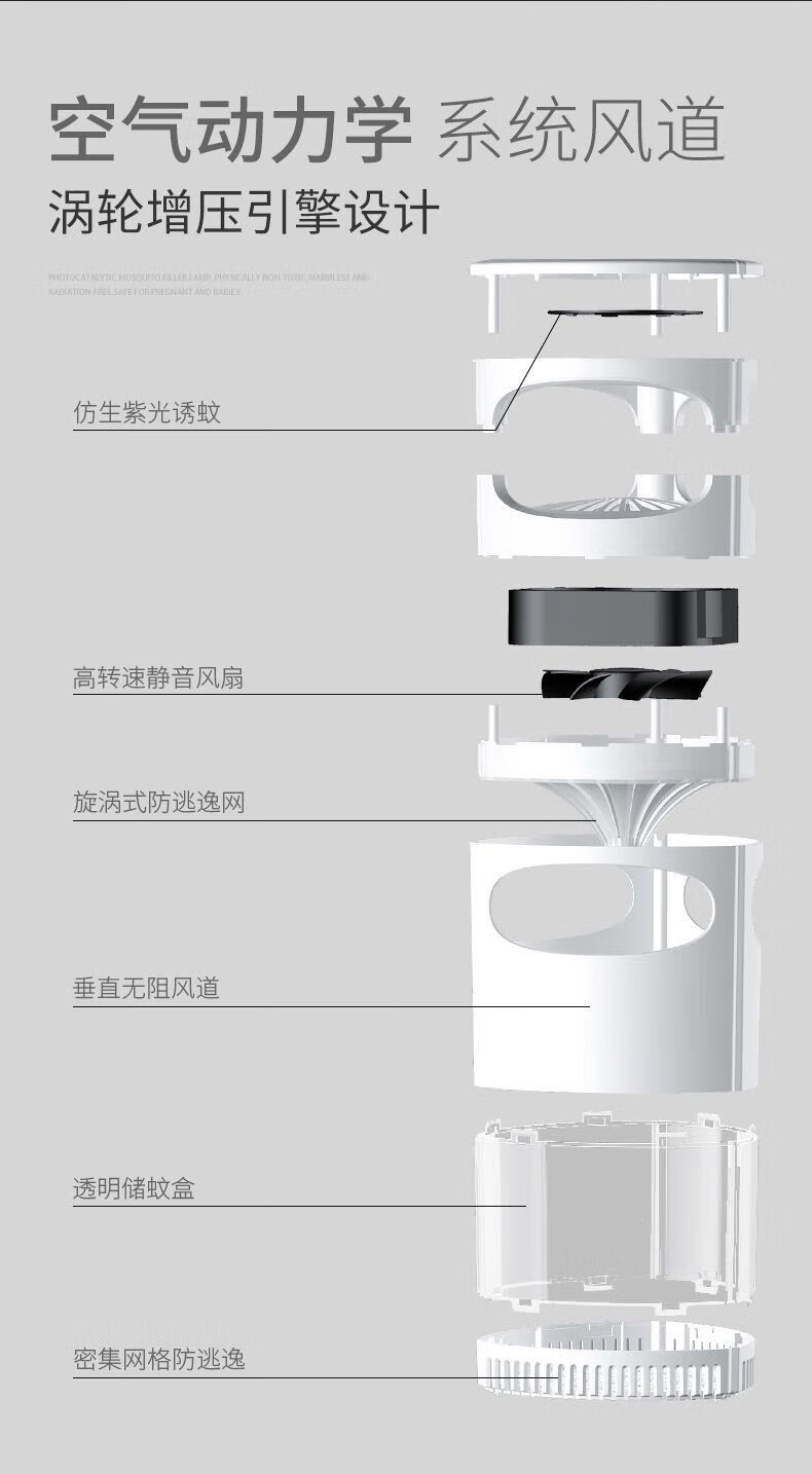 千居惠吸入式灭蚊灯家用防蚊子驱蚊器室内强效灭蚊静音吸蚊灯基孔肯雅热 白色1个