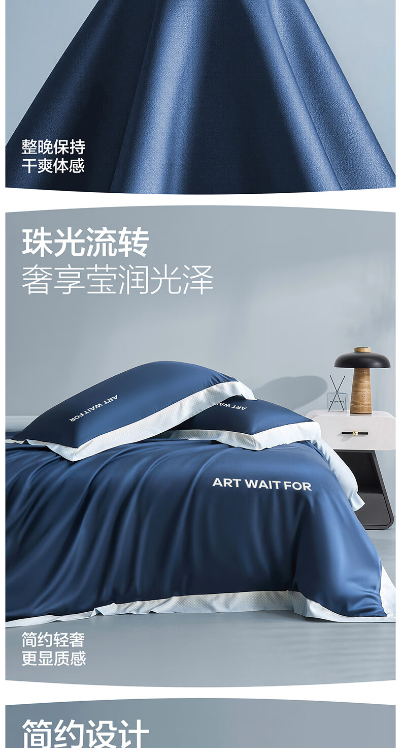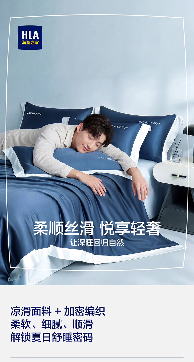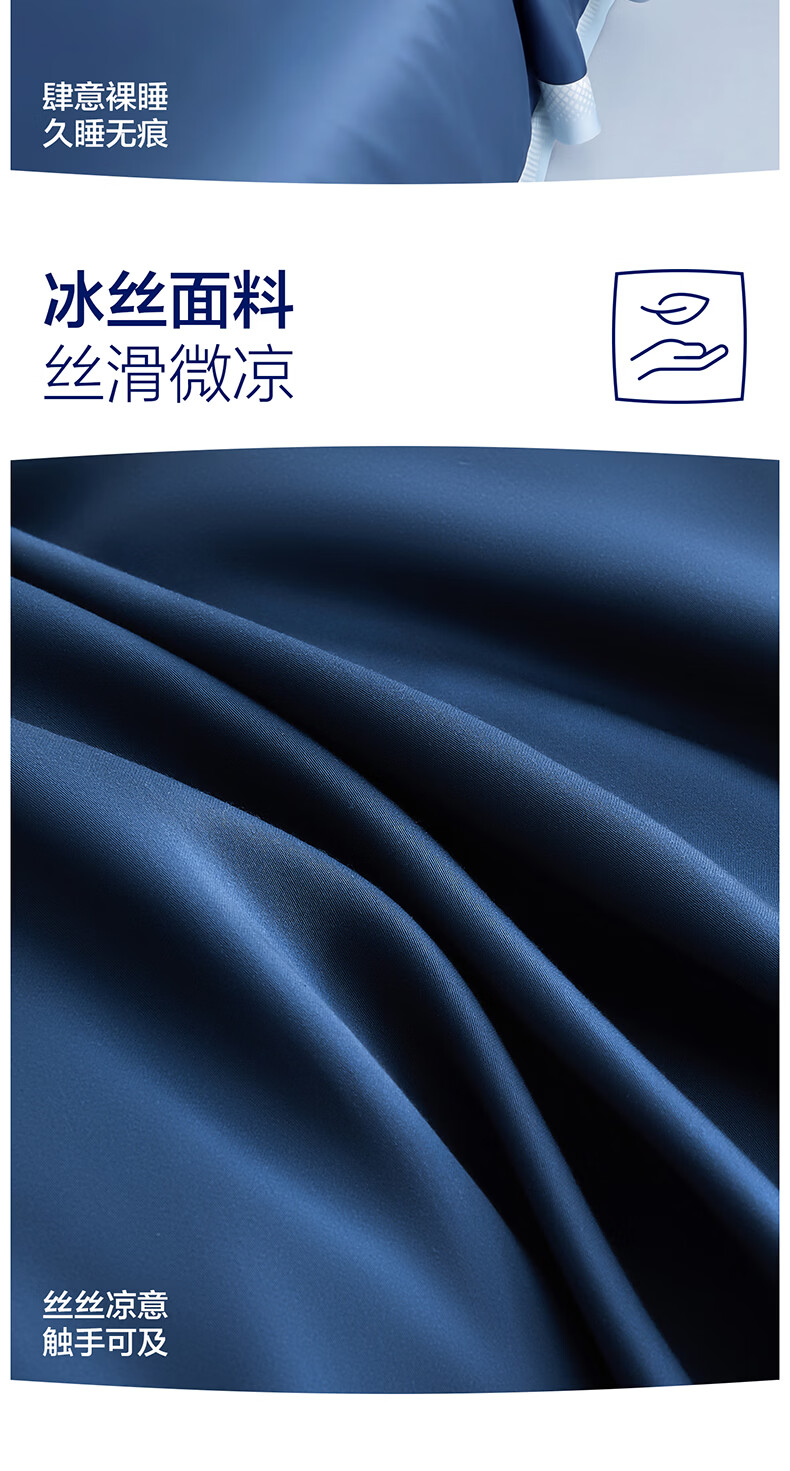 海澜之家(HLA)冰丝四件套夏季床上用品凉感套件床单被套2026新款裸睡夏天三件套 深蓝+浅蓝 1.5-1.8m 床单款 (被套200*230) 四件套