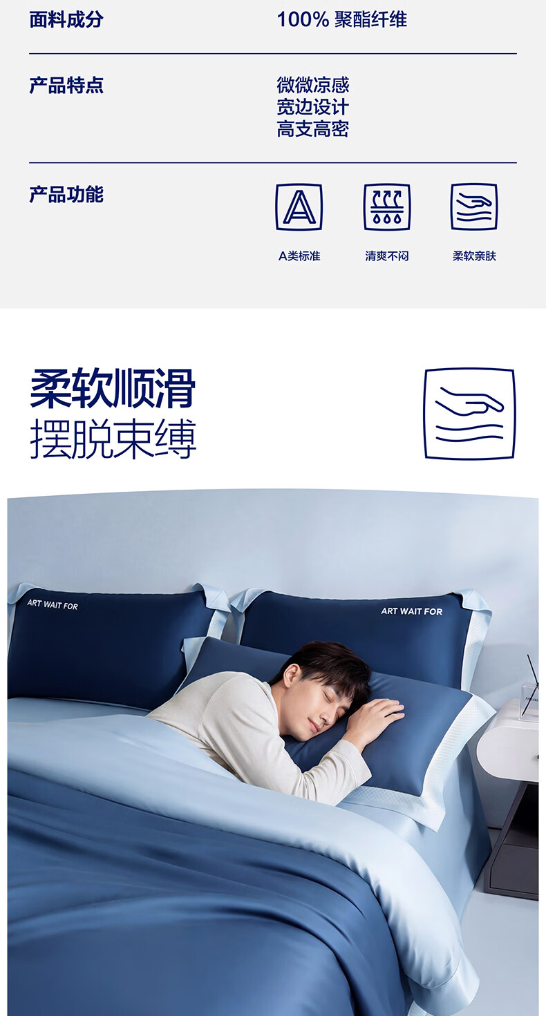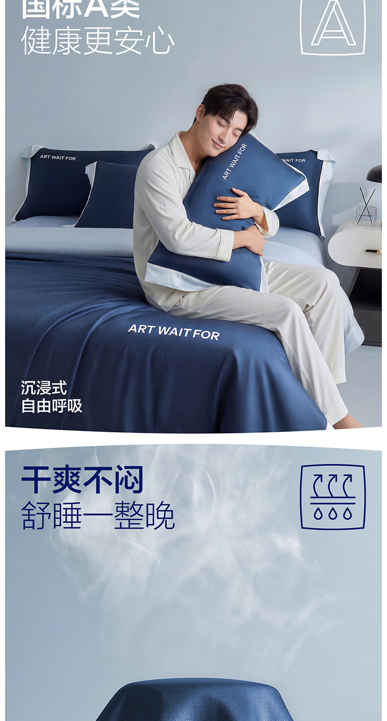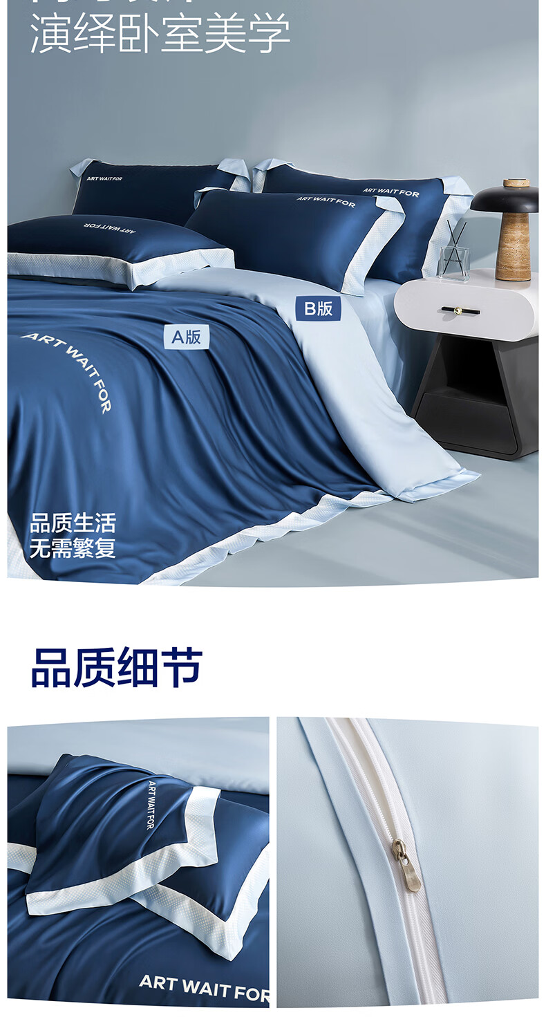 海澜之家(HLA)冰丝四件套夏季床上用品凉感套件床单被套2026新款裸睡夏天三件套 深蓝+浅蓝 1.5-1.8m 床单款 (被套200*230) 四件套