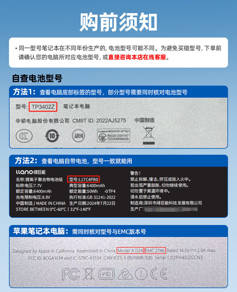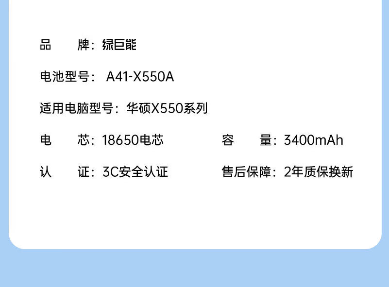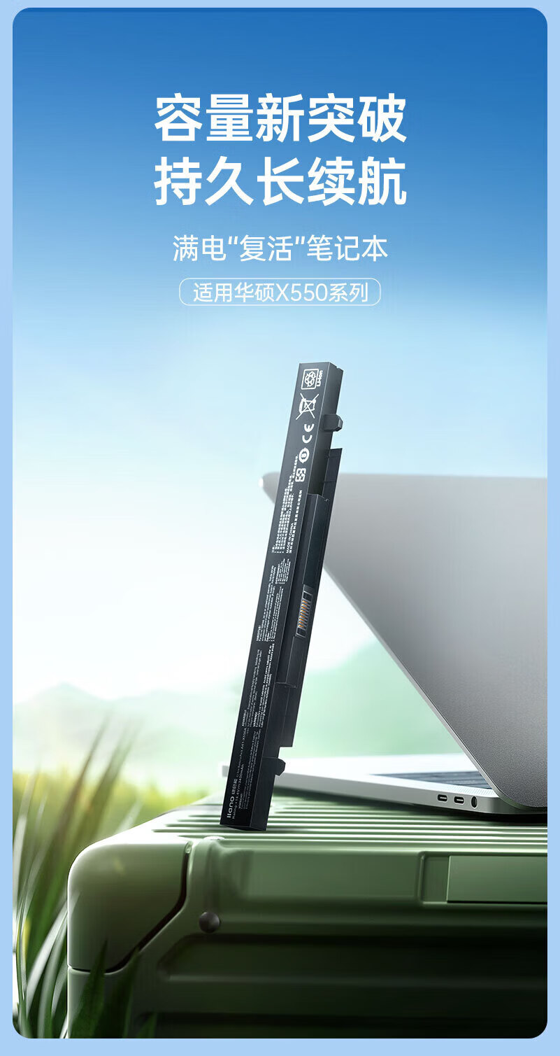 绿巨能(llano)适用华硕笔记本电池A41-X550A x550v x450v Y481C Y581C X550B A550C X450C K550J F550v电脑电池 A41-X550A 3400mAh