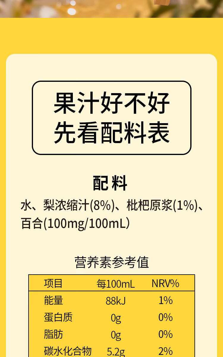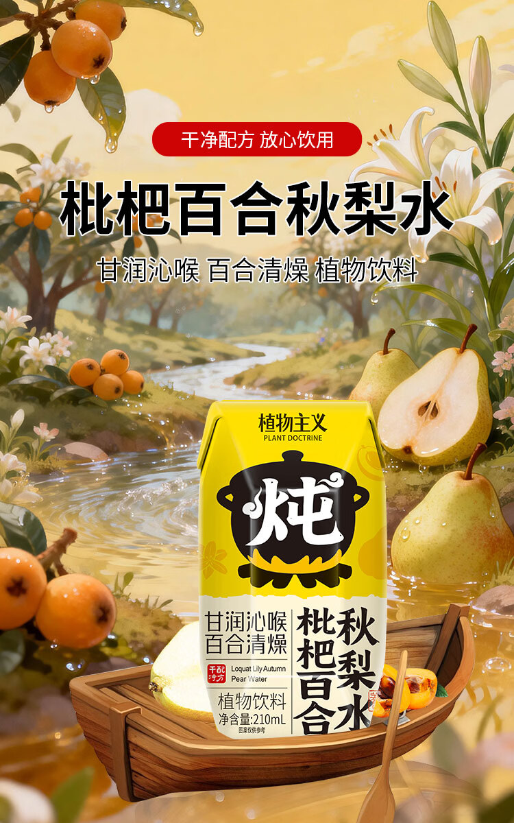 植物主义枇杷百合秋梨水210ml*12瓶0添加剂0蔗糖干净配方润肺养生植物饮料 枇杷百合秋梨水210ML*12瓶装(0添加剂)