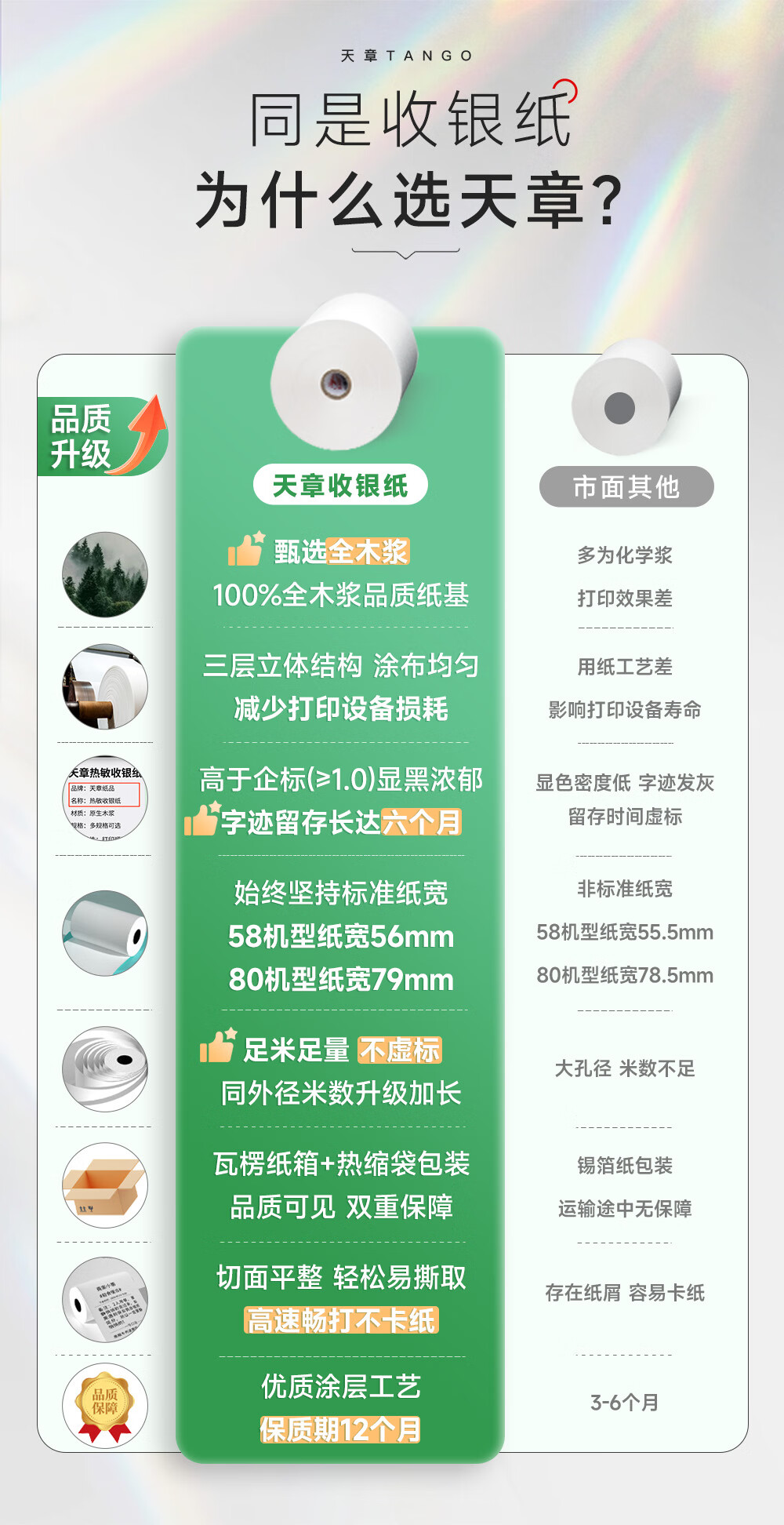 天章 (TANGO)80*50mm20米*50卷 新绿天章 热敏收银纸京东外卖餐饮小票纸 商超收银凭证打印 适配80mm机器 P3438