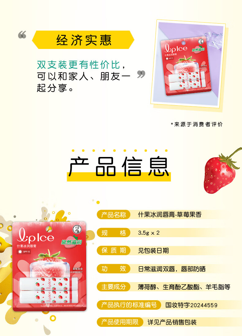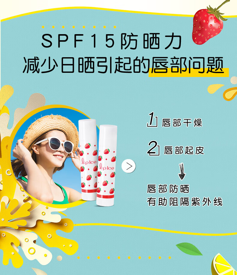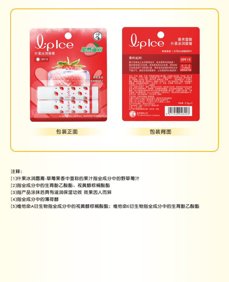 曼秀雷敦(Mentholatum)张艺兴同款润唇膏男女补水保湿滋润去死皮防裂什果冰草莓果香2支